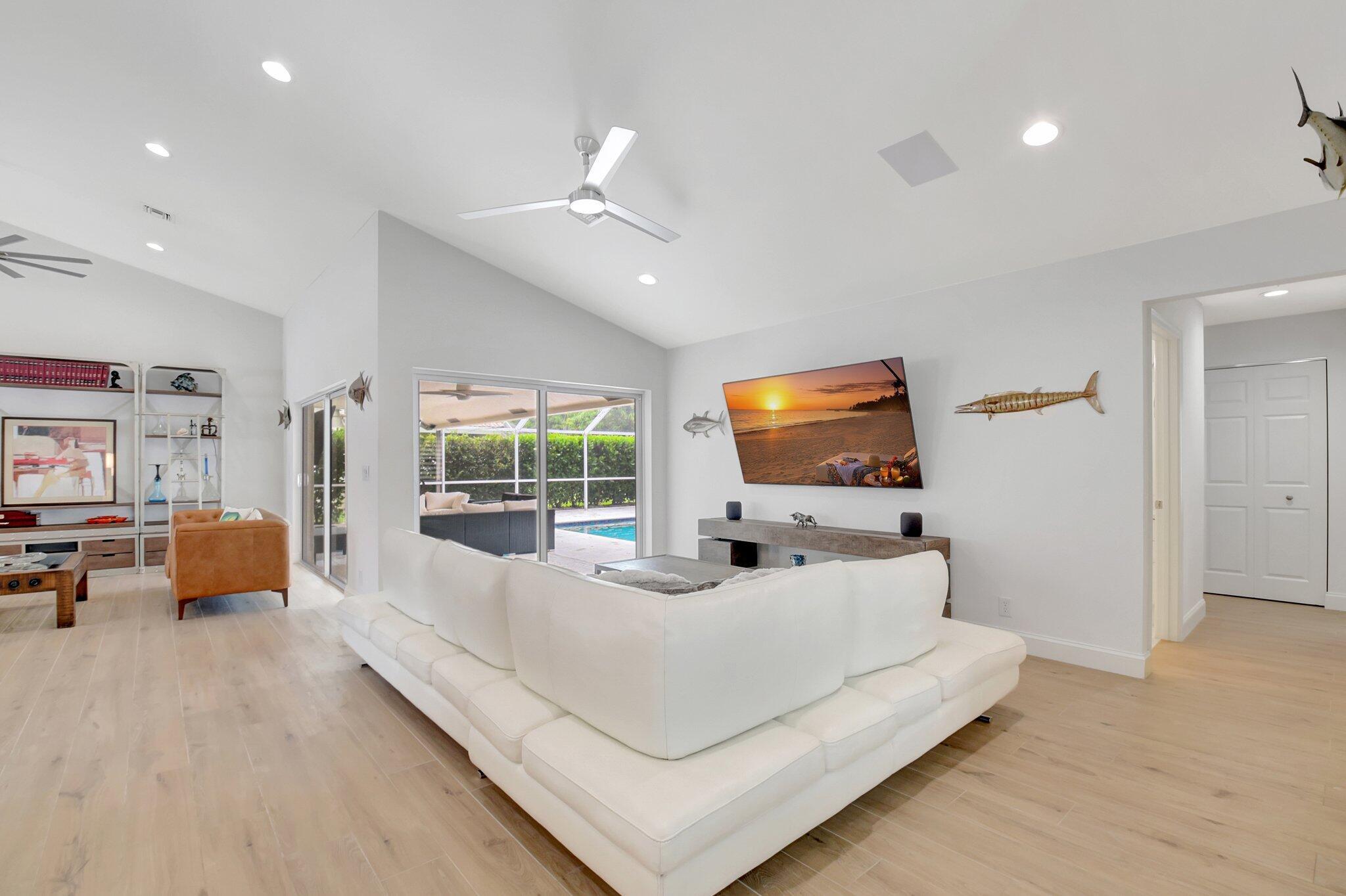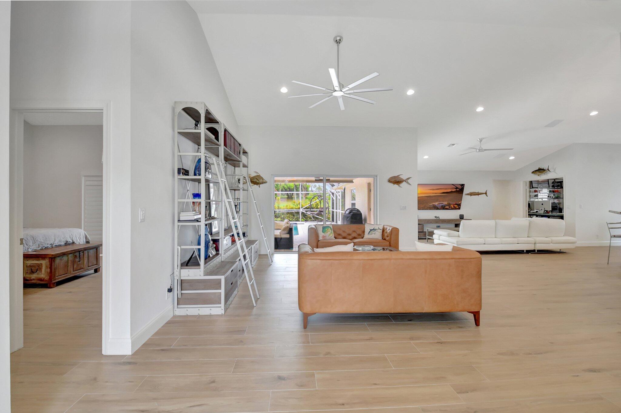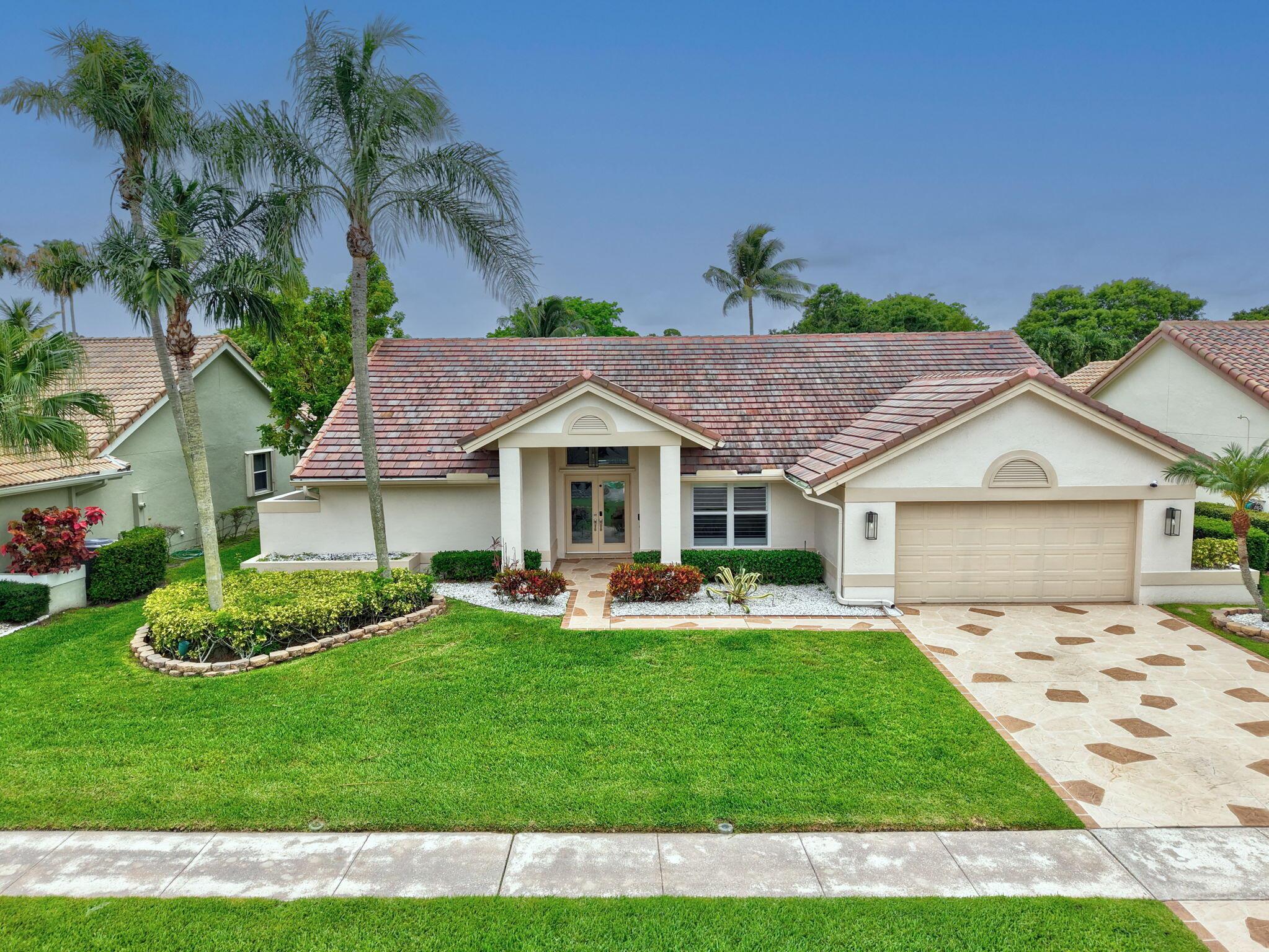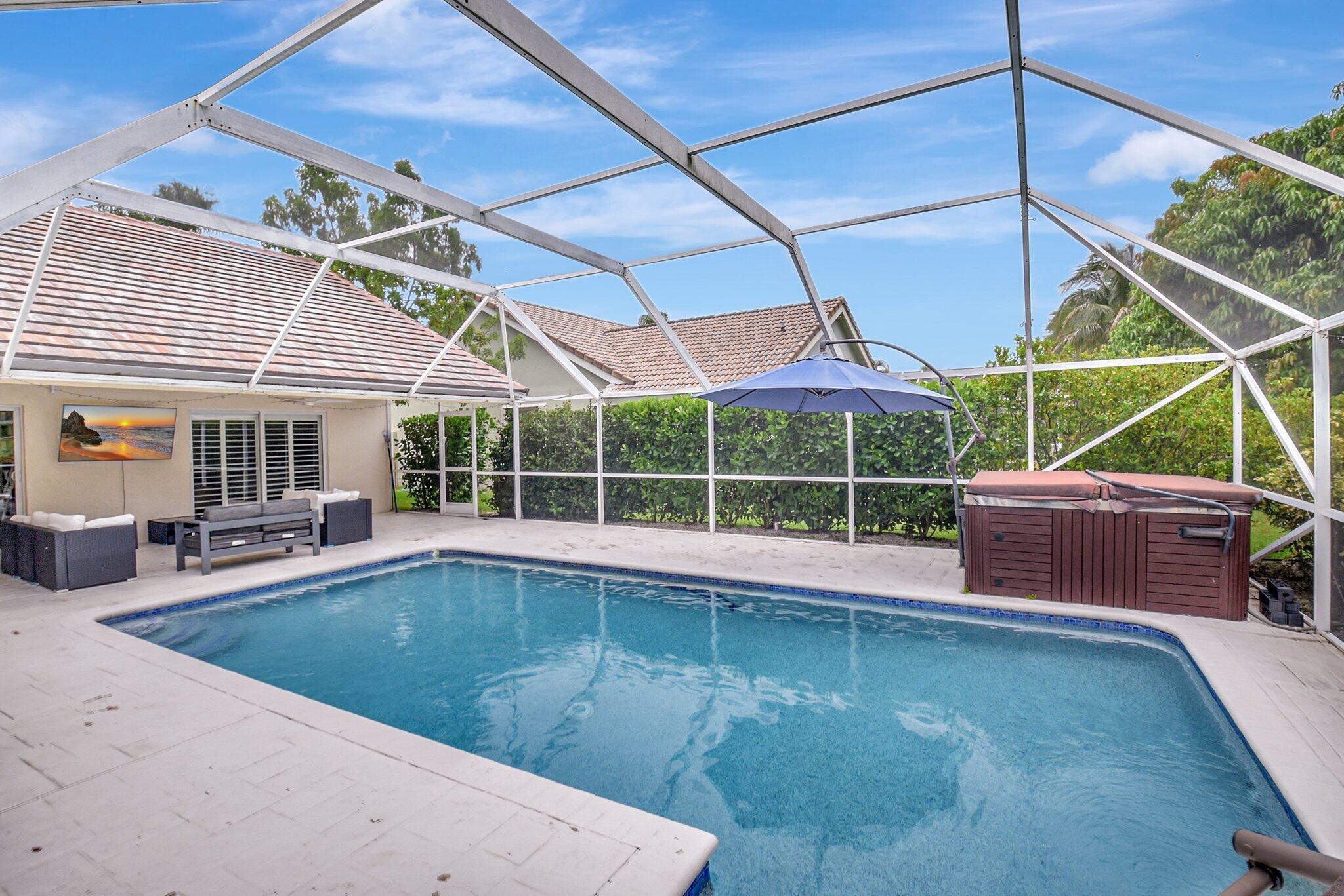 Golf Course Views Impact Windows Southern Exposure No Mandatory Golf MembershipRarely available in the gated community of Winston Trails, this 0.23-acre home offers sweeping golf course views, a heated saltwater pool & spa, and southern exposure. Inside, enjoy an open-concept layout with soaring ceilings, a modern kitchen with granite counters & custom pantry, plus a split-bedroom floor plan for privacy. The primary suite features a spa-style bath and custom walk-in closet. Upgrades include a newer roof, A/C, water heater, built-in stereo, porcelain tile floors, and full impact windows. Winston Trails offers resort-style amenities–championship golf, tennis, pickleball, fitness center, clubhouse with restaurant, pools, playgrounds, and 24/7 security–all with low HOA fees and
