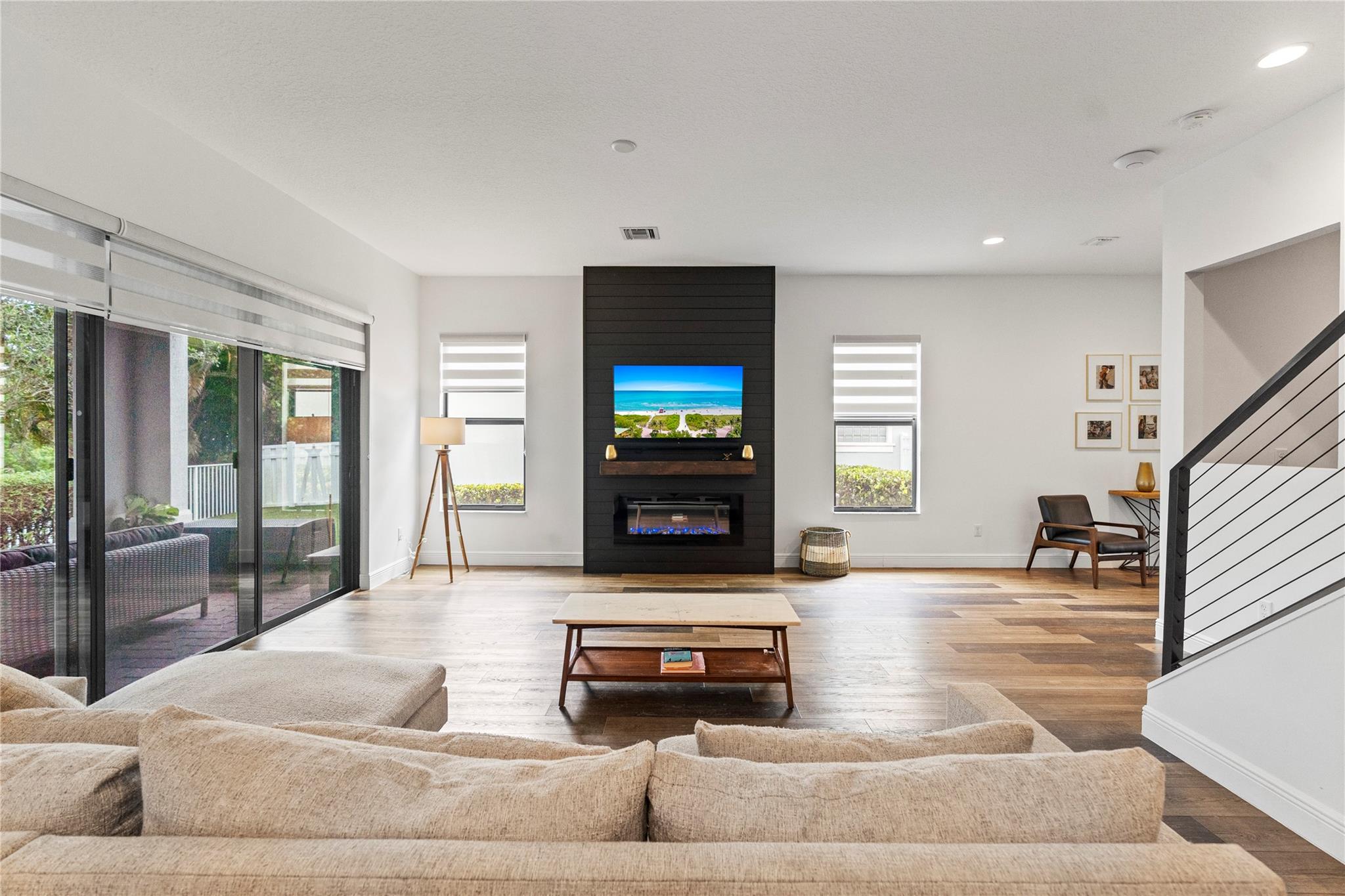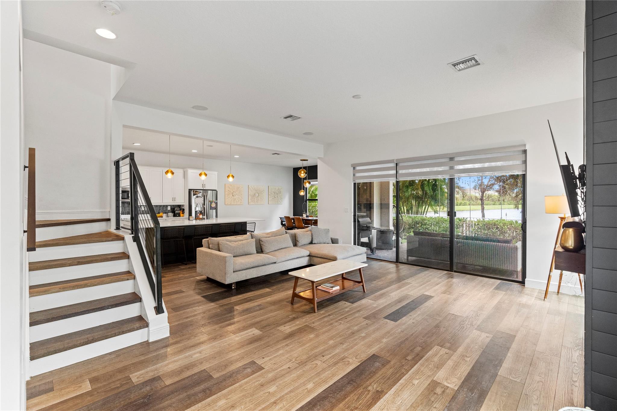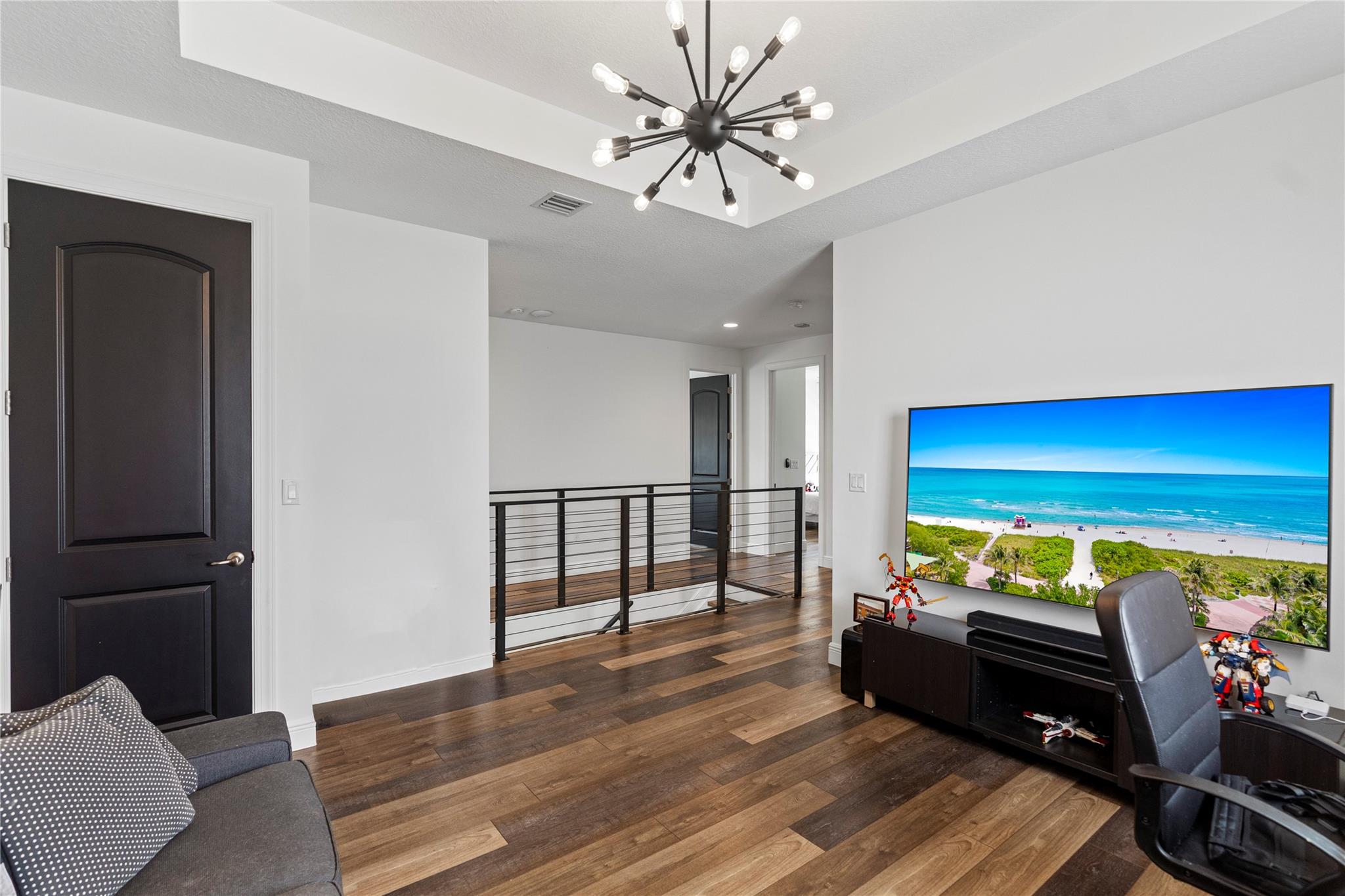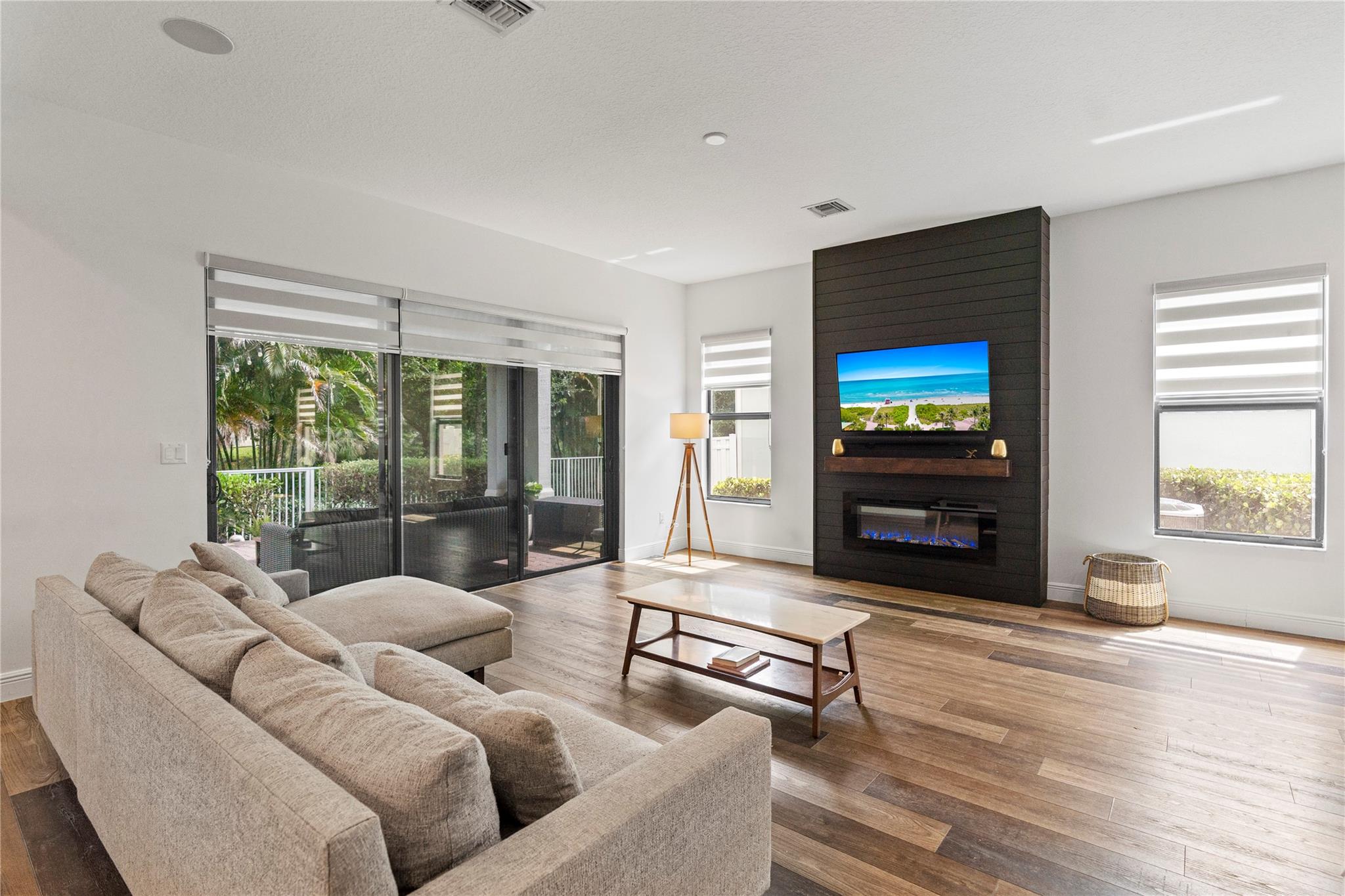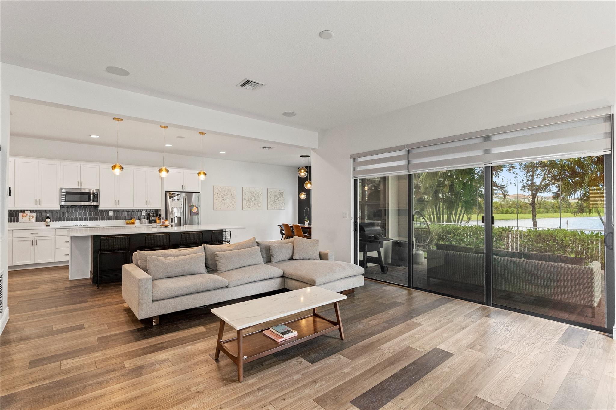 Experience waterfront tranquility and smart living in Coral Springs premier gated community, built in 2020. This 4-bedroom, 3.5-bathroom home offers 3,077 sq ft on a 6,150 sq ft lot, with water views from the terrace, living room, dining area, and master suite. Open-concept layout features a modern kitchen with island and marble tops, electric fireplace, and impact windows & door. A den with garden views can serve as a 5th bedroom, and a private office offers flexibility. Upstairs, a family room, laundry room, and luxurious master suite await. This smart home includes surround sound, cameras, and a fenced backyard with artificial turf and terrace. Enjoy resort-style amenities: clubhouse, fitness center, pool, jacuzzi, playground. Steps from University Drive’s dining, schools, and shopping.