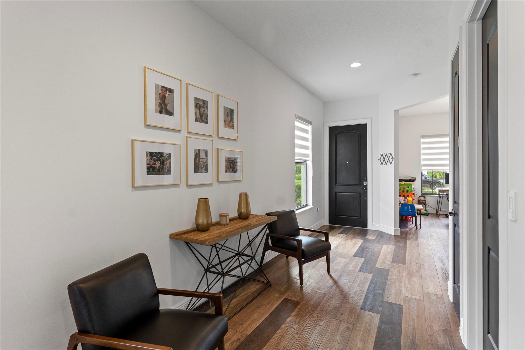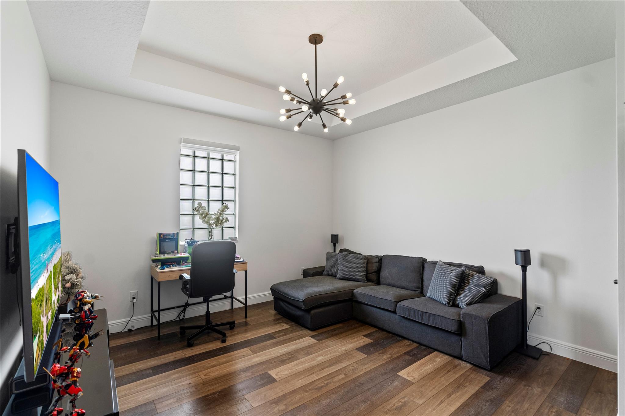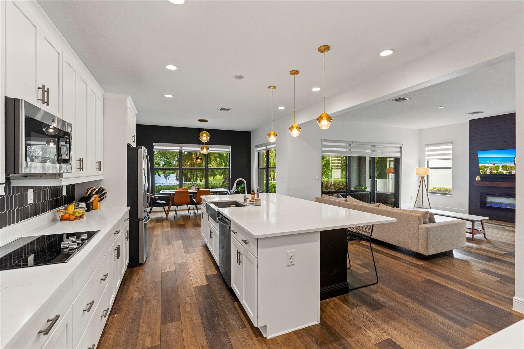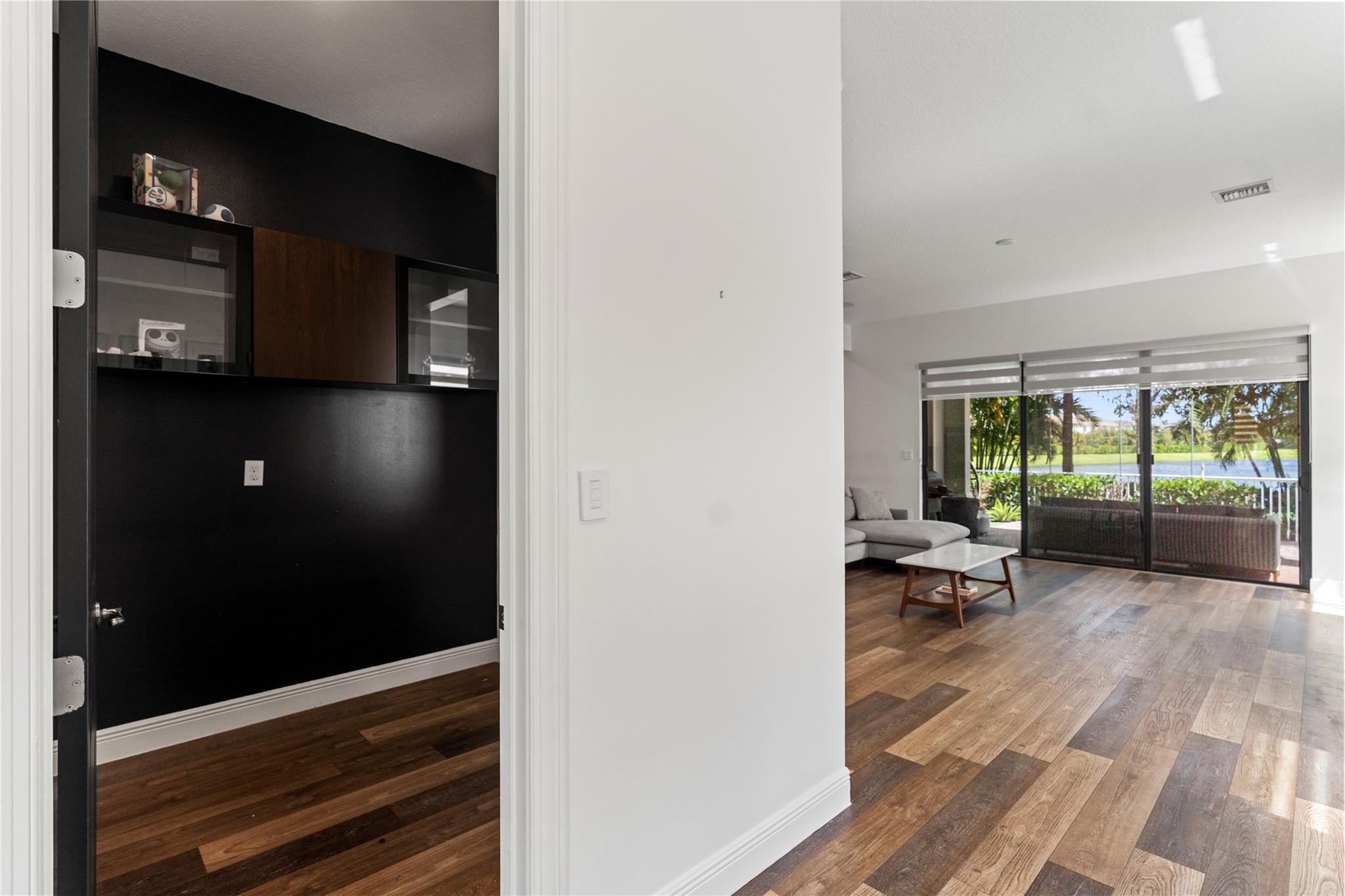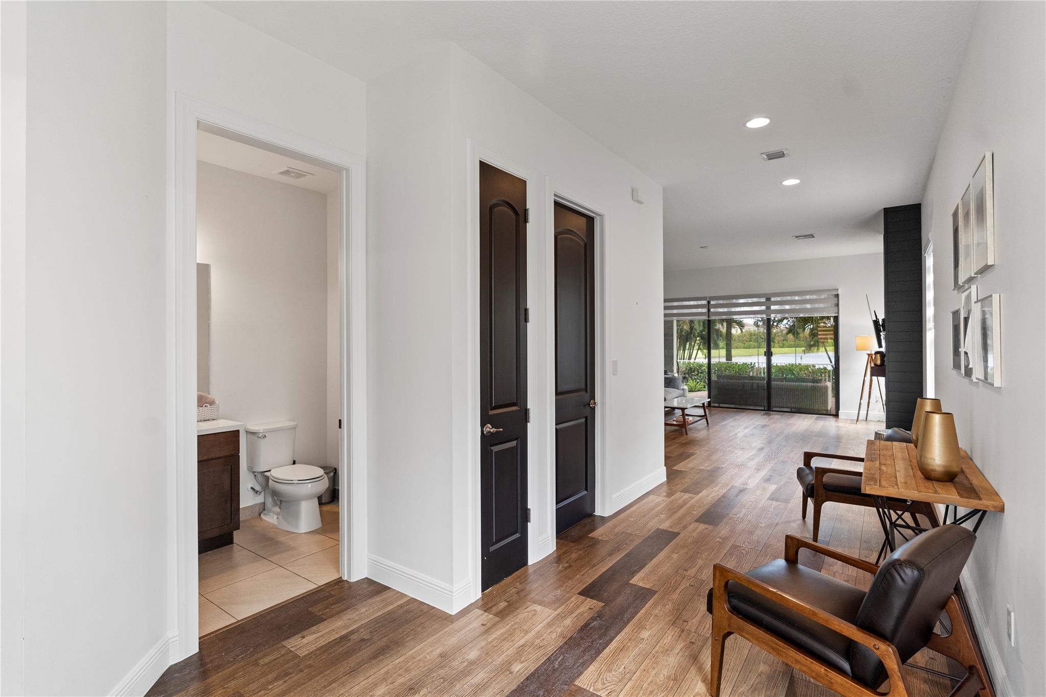 Experience waterfront tranquility and smart living in Coral Springs premier gated community, built in 2020. This 4-bedroom, 3.5-bathroom home offers 3,077 sq ft on a 6,150 sq ft lot, with water views from the terrace, living room, dining area, and master suite. Open-concept layout features a modern kitchen with island and marble tops, electric fireplace, and impact windows & door. A den with garden views can serve as a 5th bedroom, and a private office offers flexibility. Upstairs, a family room, laundry room, and luxurious master suite await. This smart home includes surround sound, cameras, and a fenced backyard with artificial turf and terrace. Enjoy resort-style amenities: clubhouse, fitness center, pool, jacuzzi, playground. Steps from University Drive’s dining, schools, and shopping.