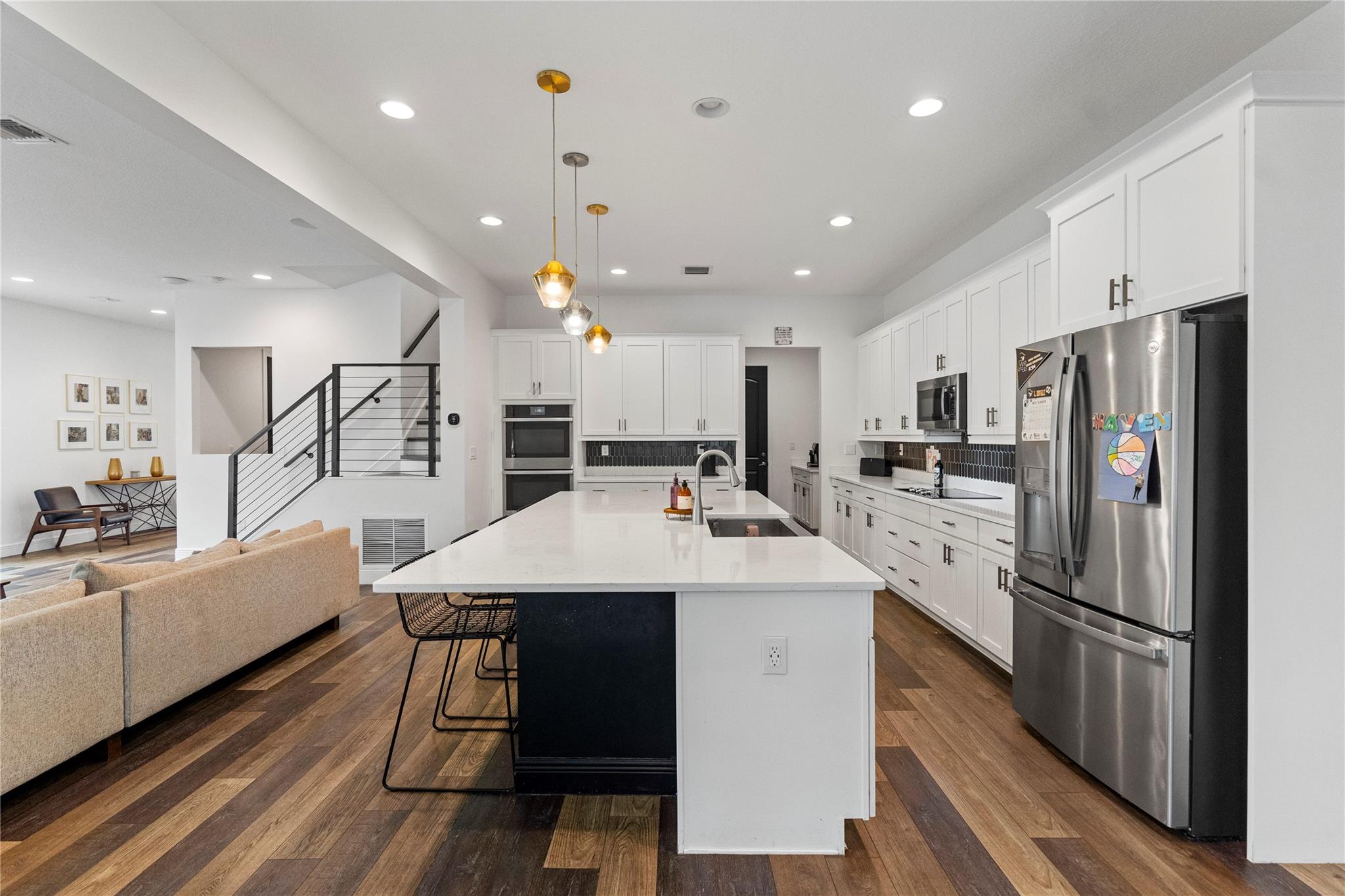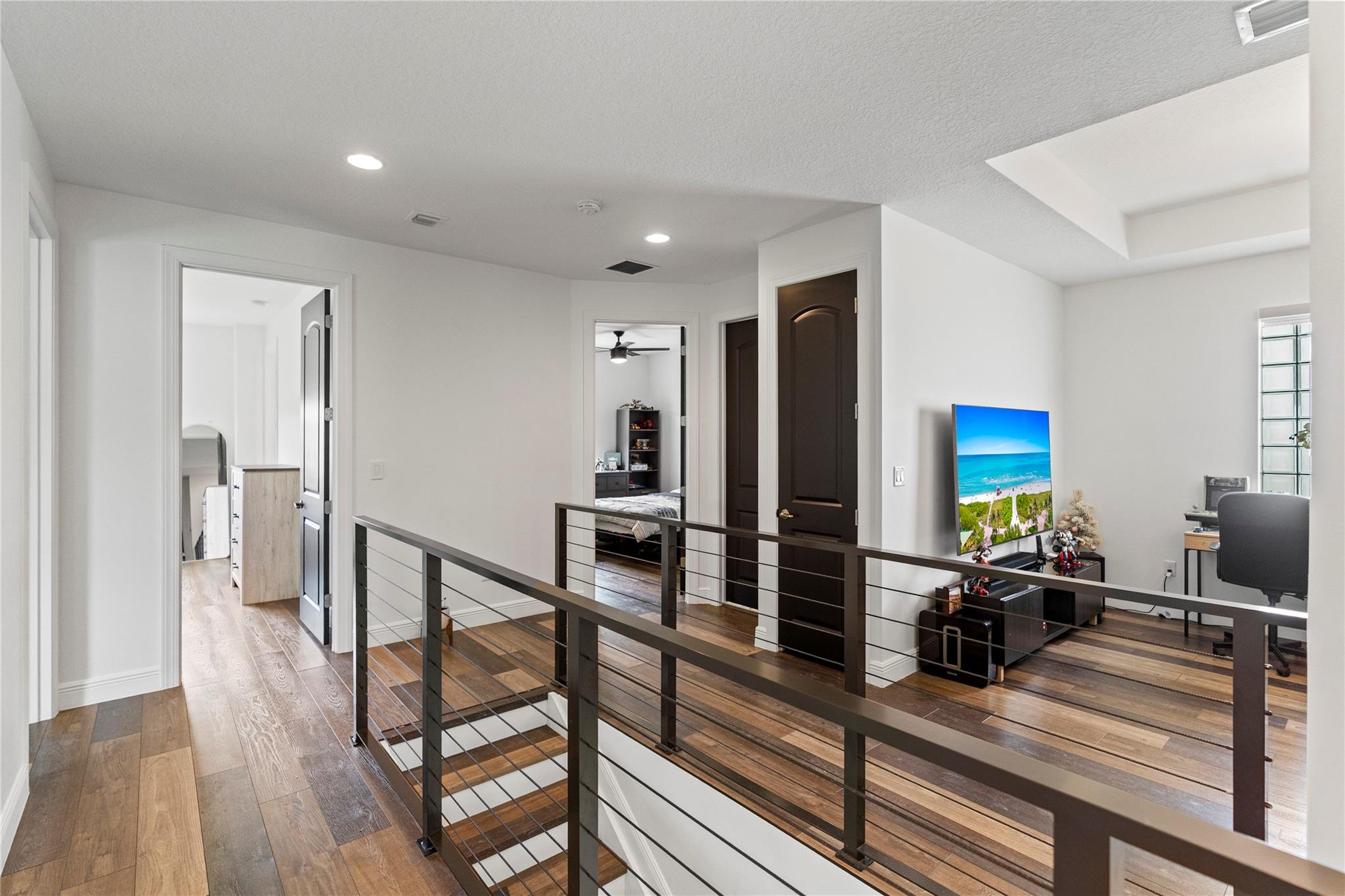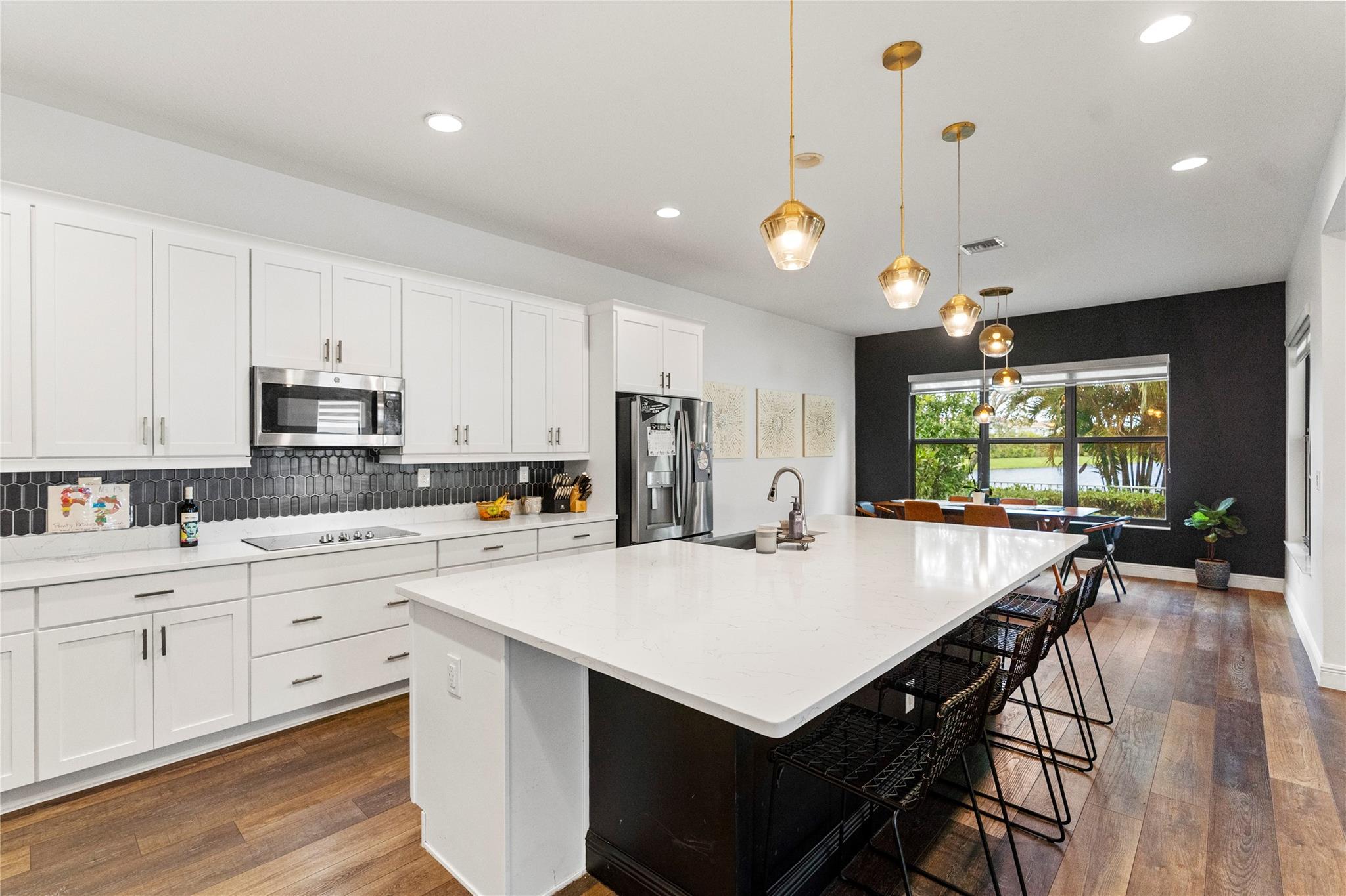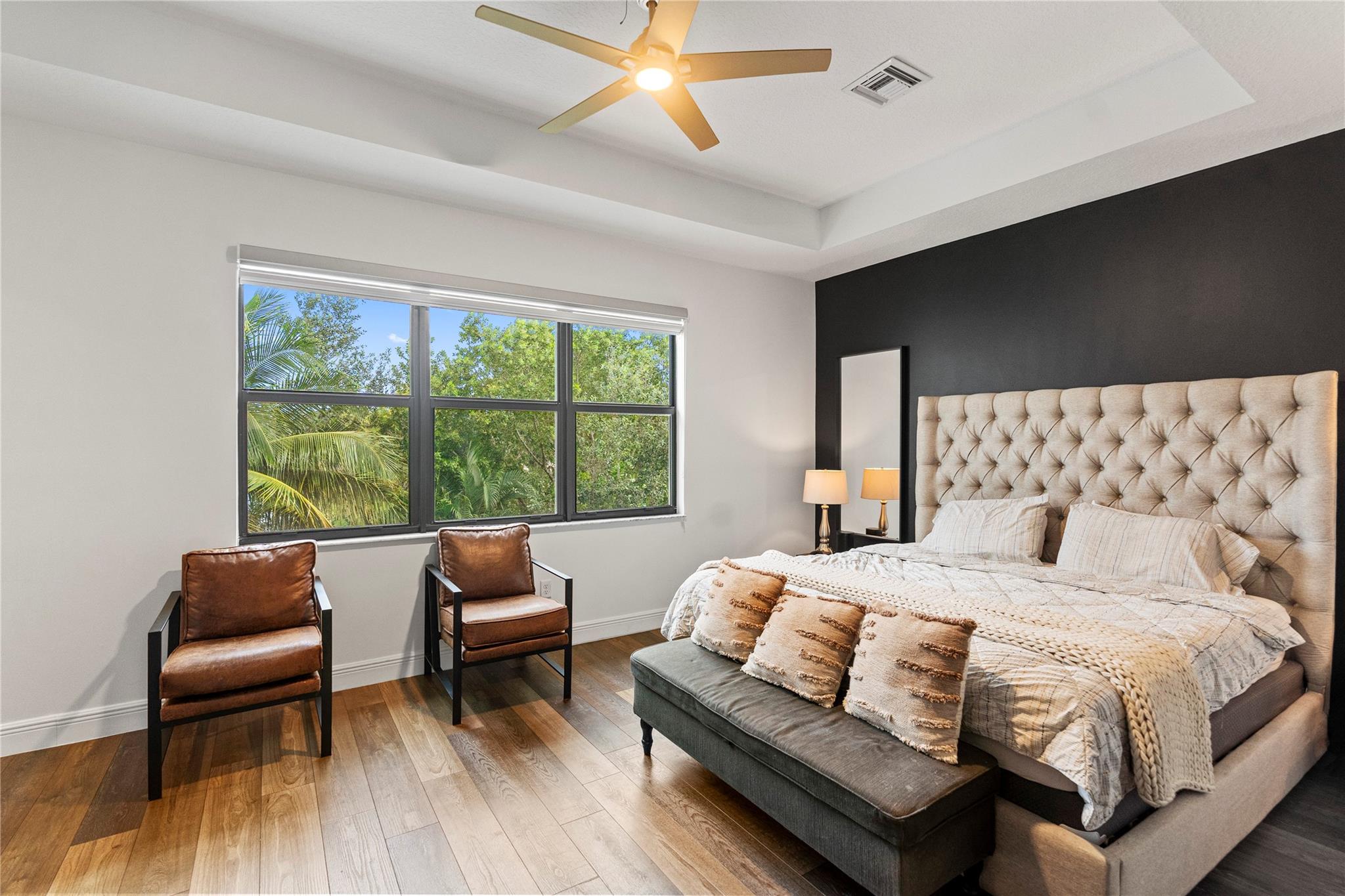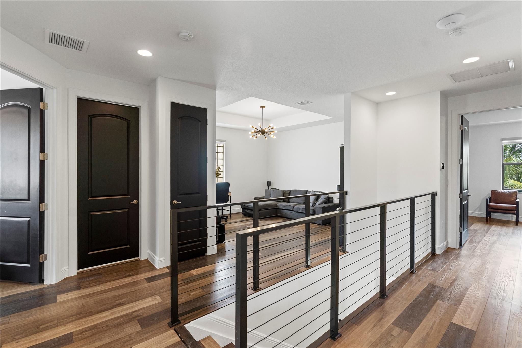 Experience waterfront tranquility and smart living in Coral Springs premier gated community, built in 2020. This 4-bedroom, 3.5-bathroom home offers 3,077 sq ft on a 6,150 sq ft lot, with water views from the terrace, living room, dining area, and master suite. Open-concept layout features a modern kitchen with island and marble tops, electric fireplace, and impact windows & door. A den with garden views can serve as a 5th bedroom, and a private office offers flexibility. Upstairs, a family room, laundry room, and luxurious master suite await. This smart home includes surround sound, cameras, and a fenced backyard with artificial turf and terrace. Enjoy resort-style amenities: clubhouse, fitness center, pool, jacuzzi, playground. Steps from University Drive’s dining, schools, and shopping.