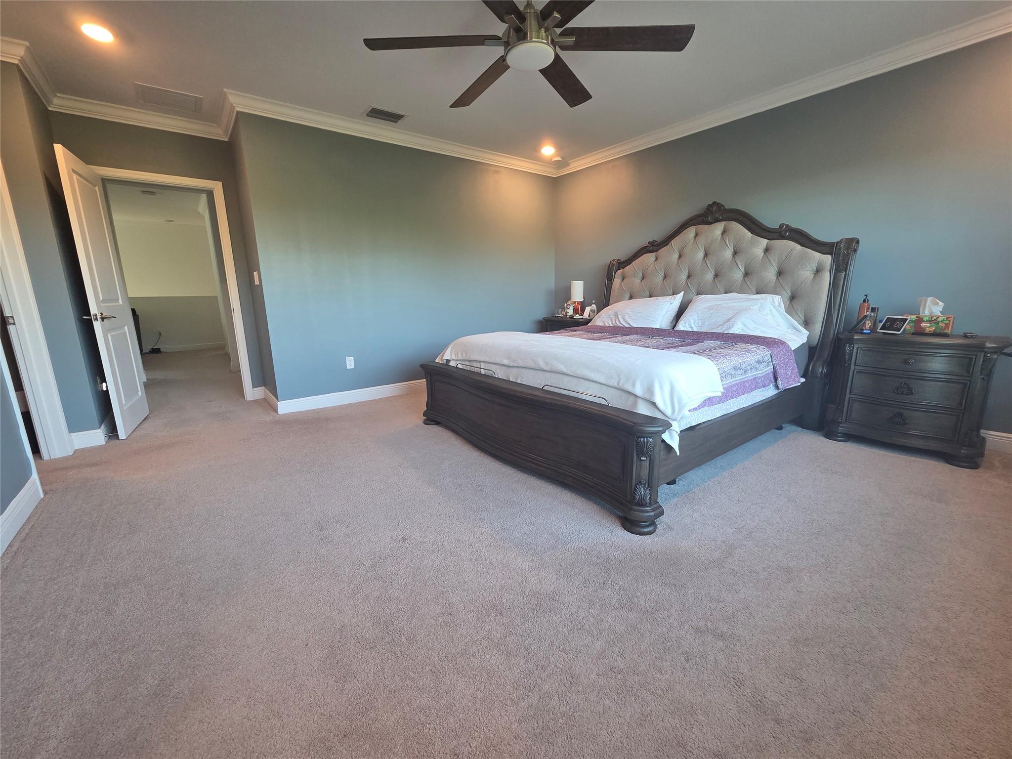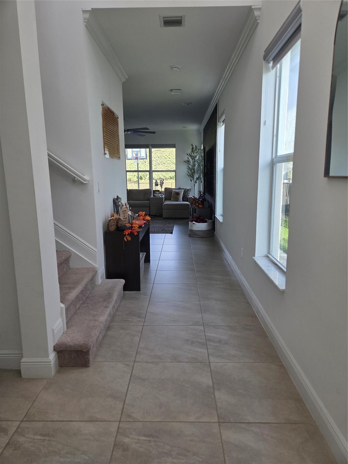 Built in 2021, this sophisticated and spacious one-owner 5BR/3BA home with loft showcases an upgraded kitchen with quartz countertops and walk in pantry, stylish baths, and crown molding on both levels. The first floor features a full bedroom and upgraded bath. The oversized primary suite features a walk-in closet, while a convenient second-floor laundry with sink adds everyday ease. Outdoors, enjoy an oversized driveway, pavered walkway, and an extended lanai with fully fenced serene canal views, perfect for entertaining with room for an outdoor kitchen. An oversized 2-car garage complete this stunning home in a secure, gated community. This smart home featuring motorized blinds, thermostat, doorbell, and more, completes this exceptional gated community residence.
