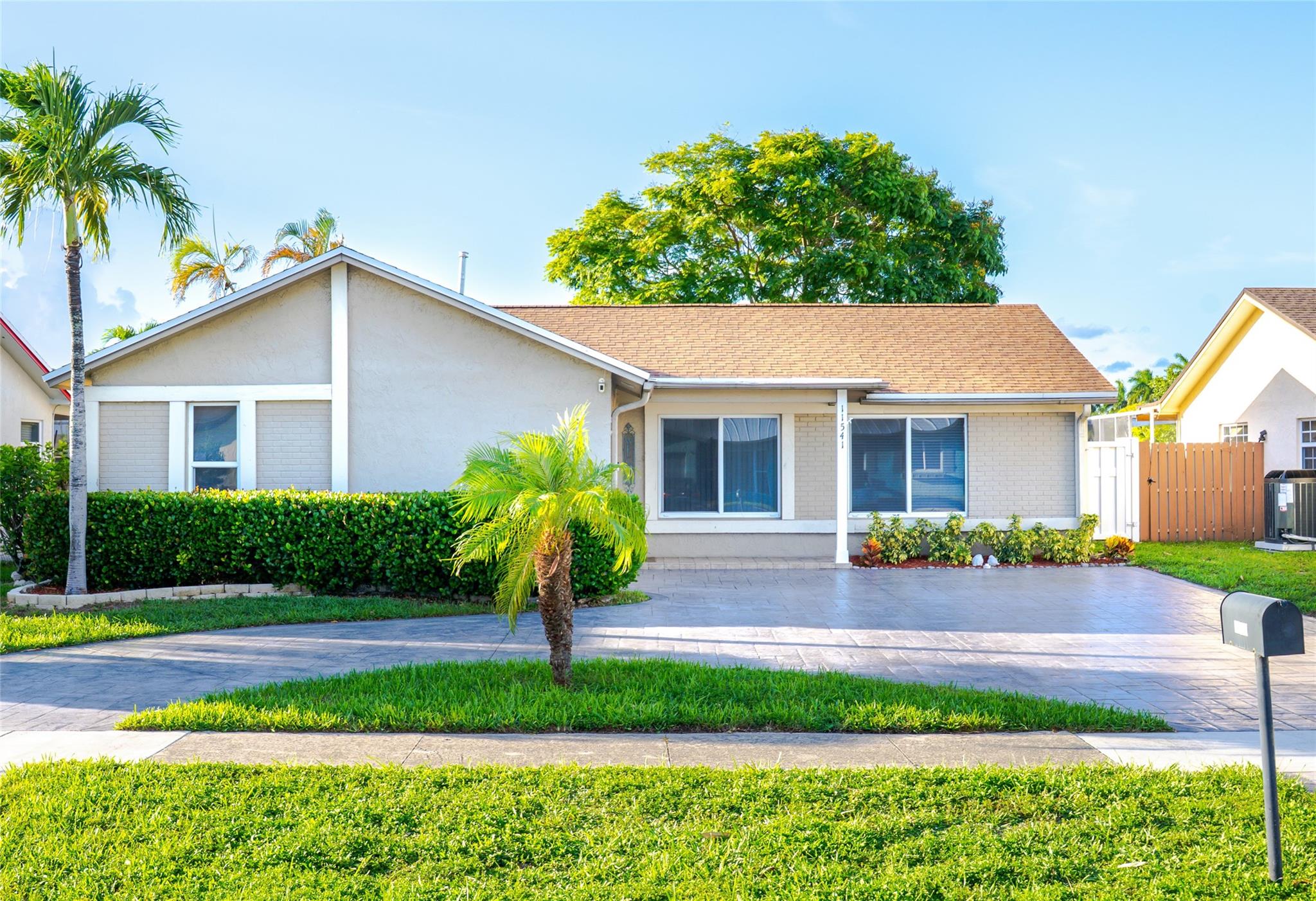 NO HOA. Amazing and expansive long lake views from all central rooms within this charming house located in West Sunrise with a split bedroom floor plan. The kitchen is remodeled with gas range and double ovens, situated between the living and family room giving it an open concept and flow. House has impact windows throughout and glass impact doors leading to a covered screened in patio and breathtaking lake view with large deck. Hurricane rated garage and front door. Stamped concrete driveway. Conveniently located near Welleby Park with children’s water play area and dog park, as well as Hiatus Greenway for biking, running and skating. Close to the Sawgrass Mall,Amerant Bank Arena (Florida Panthers Stadium.) Minutes to I-75 for commuting, and Sunrise Pool Aquatic Complex
