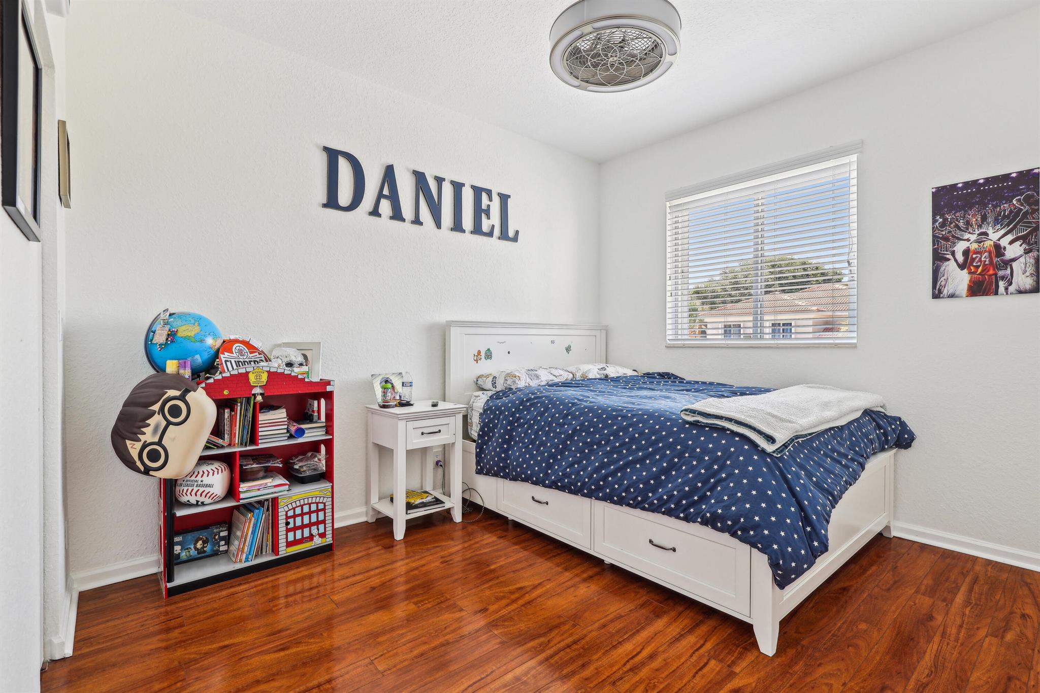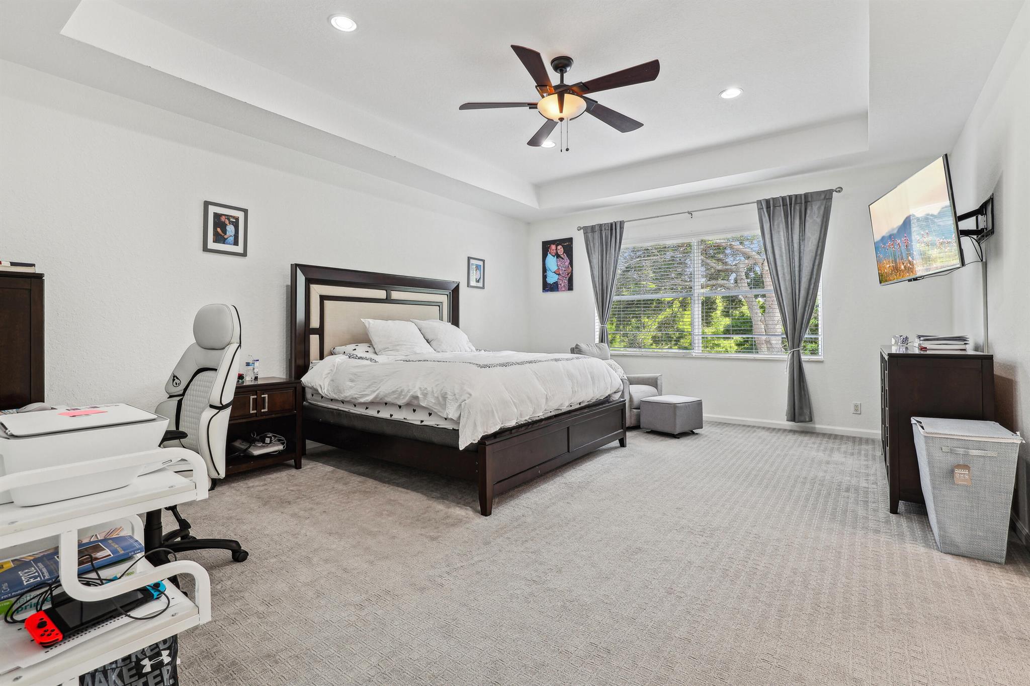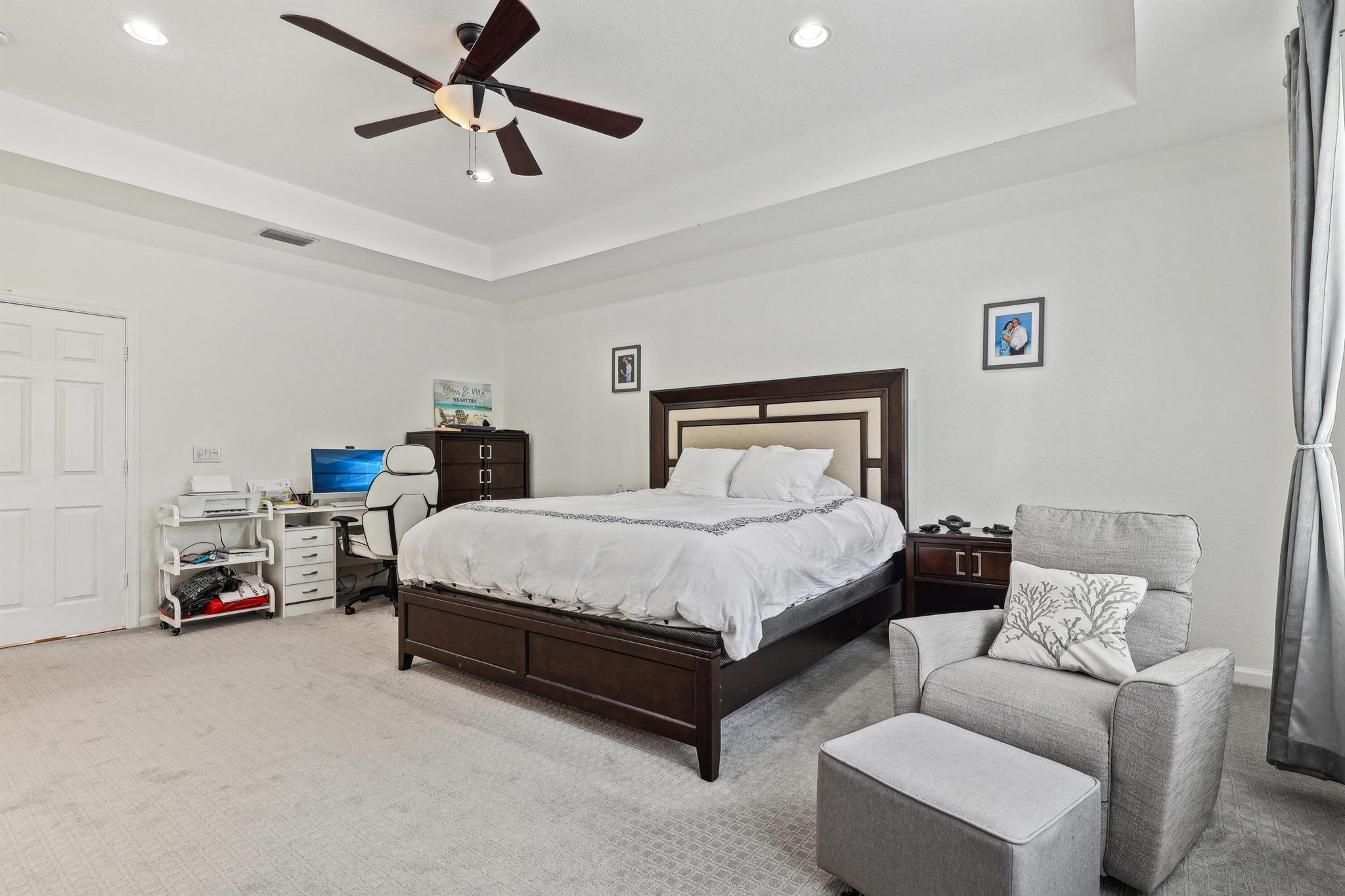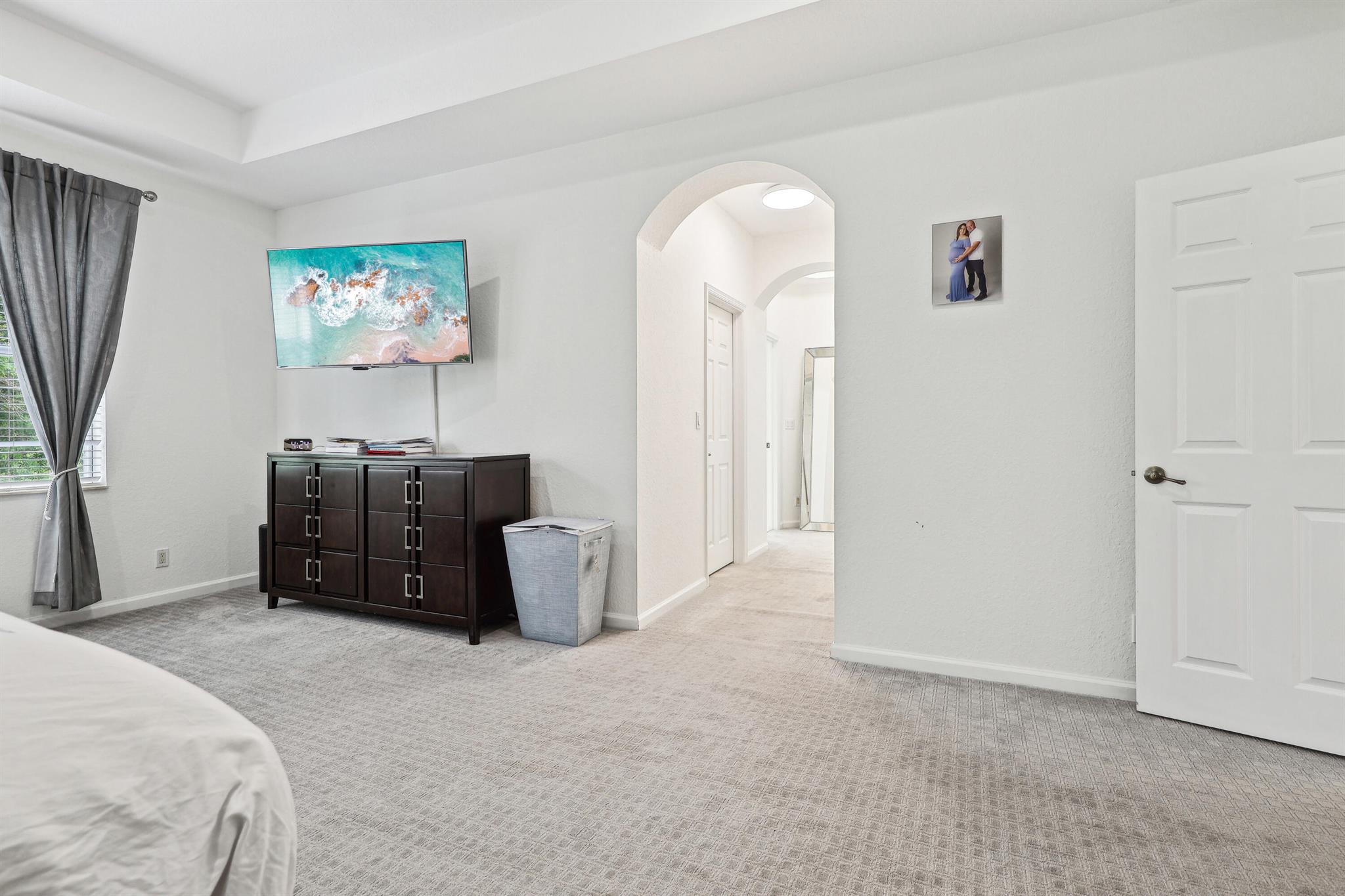 Experience refined living in this expansive 5-bedroom, 3.5-bathroom residence, nestled within the prestigious gated community of Palmyra Estates. Spanning over 3,100 square feet, this two-story home boasts soaring 10-foot ceilings, 8-foot doors, and an abundance of natural light that accentuates its open-concept design.The kitchen is a chef’s dream, featuring stainless steel appliances, granite countertops, and custom wood cabinetry. Entertain guests in the spacious living and dining areas, or enjoy the flexibility of a large upstairs loft–perfect for a media room, playroom, or home office.Retreat to the oversized master suite, complete with dual walk-in closets and luxurious his-and-hers bathrooms, each with its own vanity, private toilet, a walk-in shower
