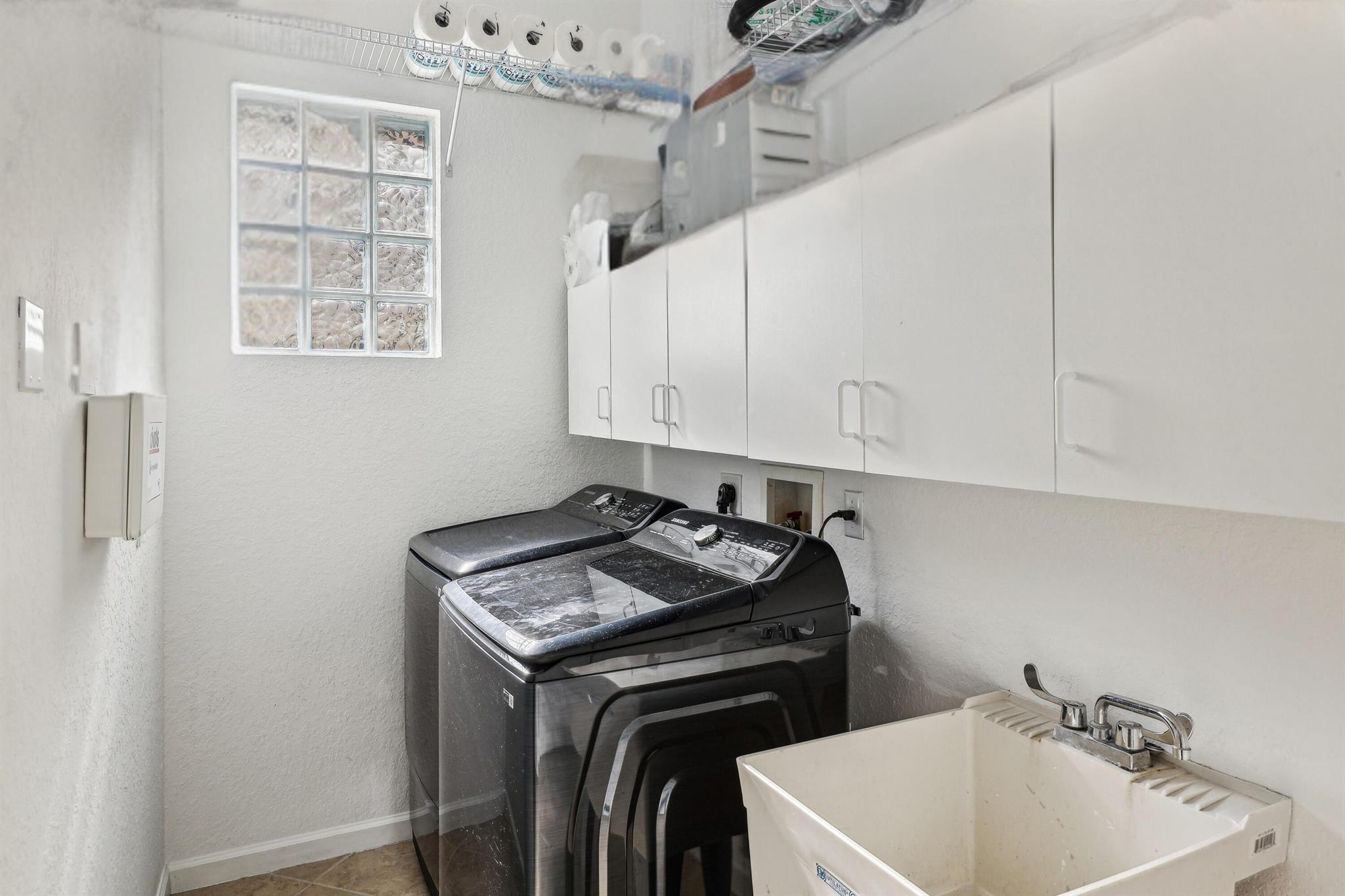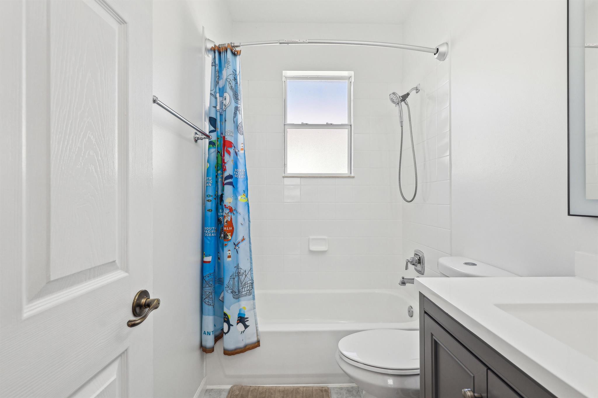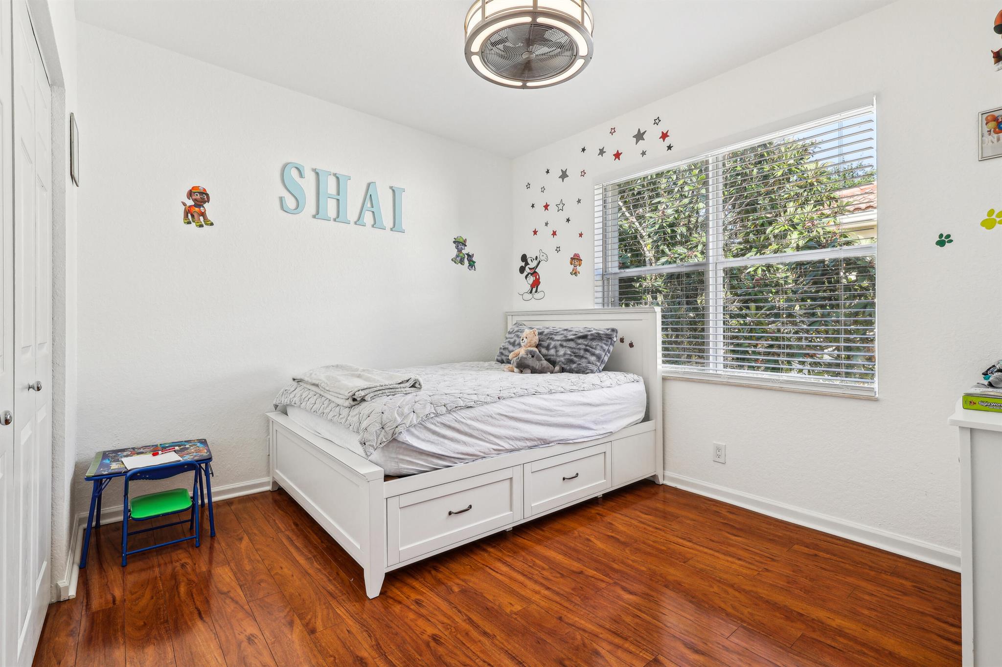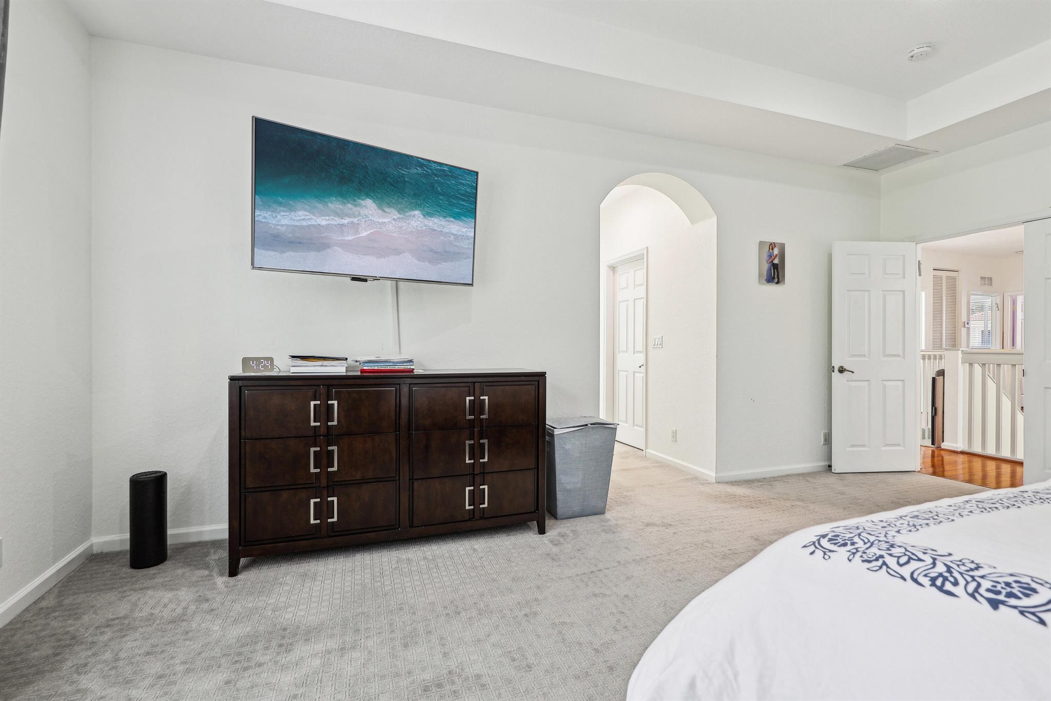 Experience refined living in this expansive 5-bedroom, 3.5-bathroom residence, nestled within the prestigious gated community of Palmyra Estates. Spanning over 3,100 square feet, this two-story home boasts soaring 10-foot ceilings, 8-foot doors, and an abundance of natural light that accentuates its open-concept design.The kitchen is a chef’s dream, featuring stainless steel appliances, granite countertops, and custom wood cabinetry. Entertain guests in the spacious living and dining areas, or enjoy the flexibility of a large upstairs loft–perfect for a media room, playroom, or home office.Retreat to the oversized master suite, complete with dual walk-in closets and luxurious his-and-hers bathrooms, each with its own vanity, private toilet, a walk-in shower
