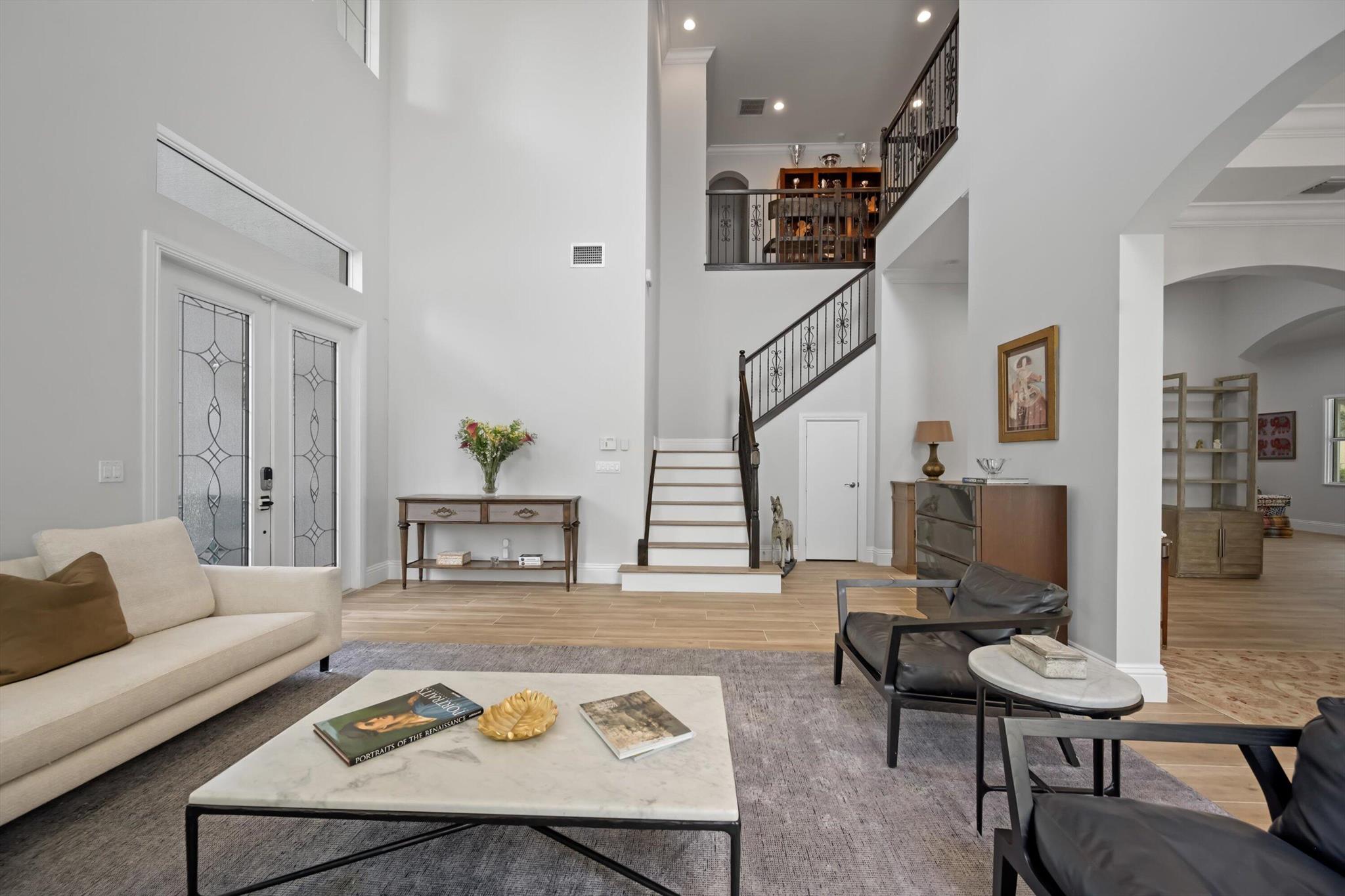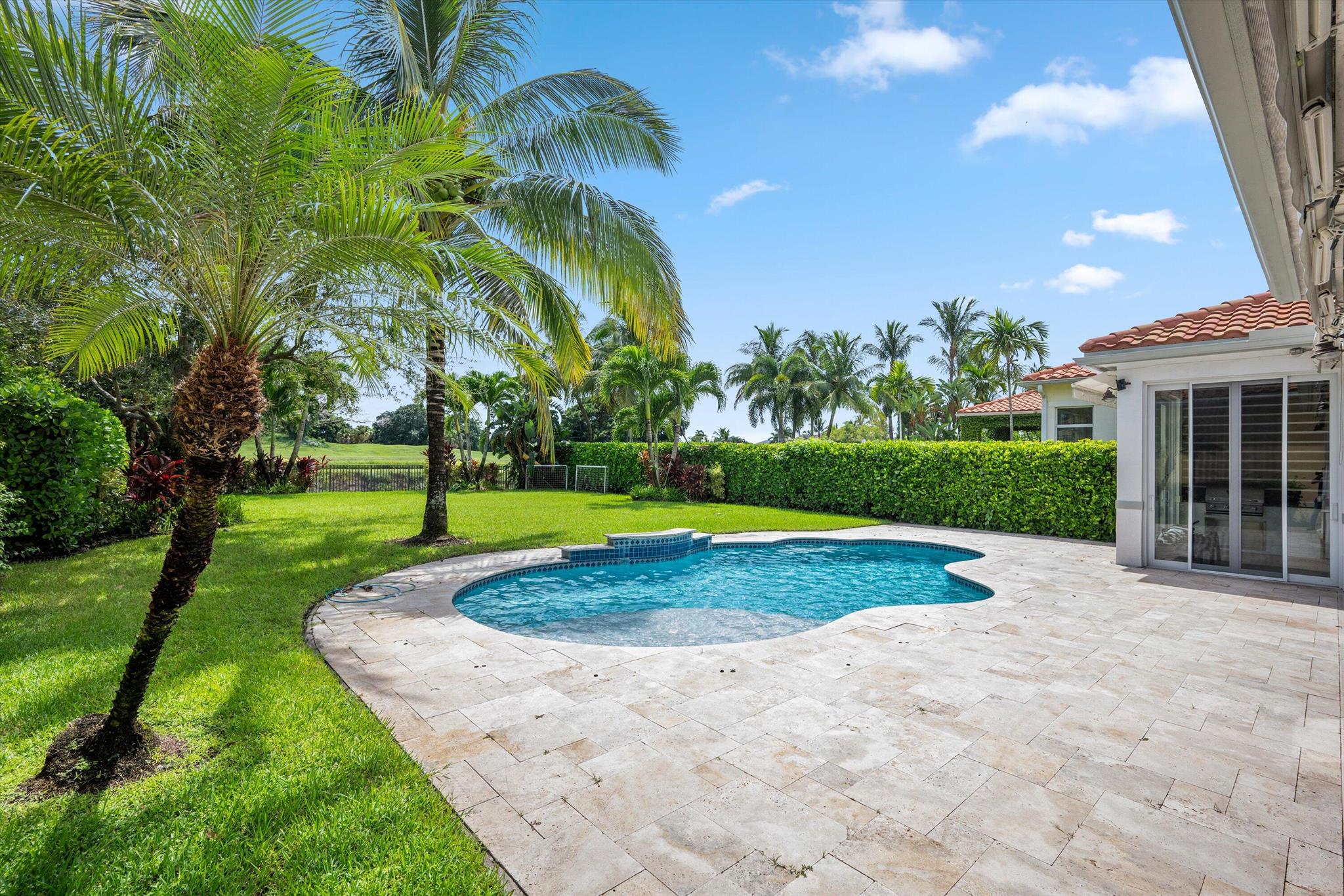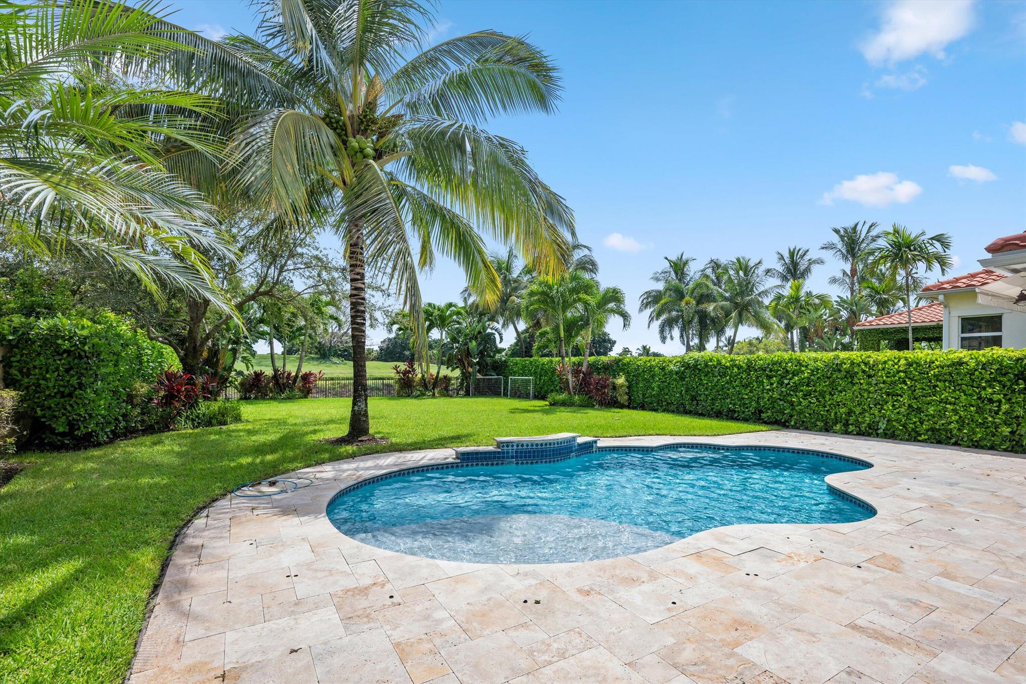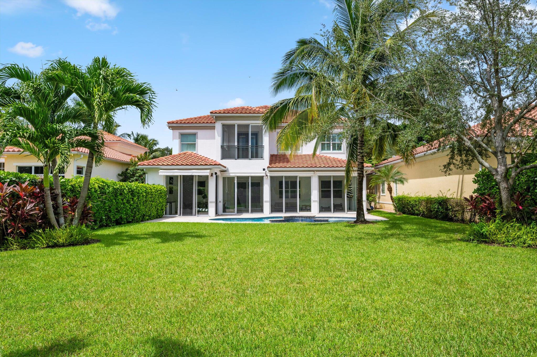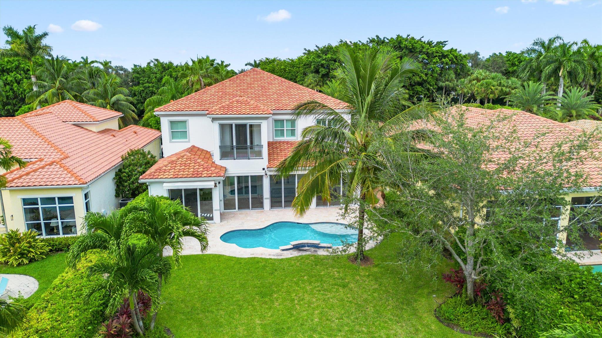 This stunning home is located in the coveted neighborhood of Hunter’s Chase within the Palm Beach Polo Club. Featuring a total of 4,300 square feet under air, this waterfront property offers 6 bedrooms, 4 full and 1 half baths, a 3-car garage, and boasts lake and golf course views! Curated with designer touches throughout the two stories, the interior boasts vaulted ceilings, stunning dark wood floors, an eat-in kitchen with a wet bar plus a formal dining room, family room, and a luxurious master suite with its own private patio. Step outside to enjoy the spacious enclosed patio, featuring a summer kitchen plus a stacking glass door system for instant outdoor living. The perfectly manicured backyard is equipped with a large Travertine tile deck, freeform pool, and expansive fenced yard.