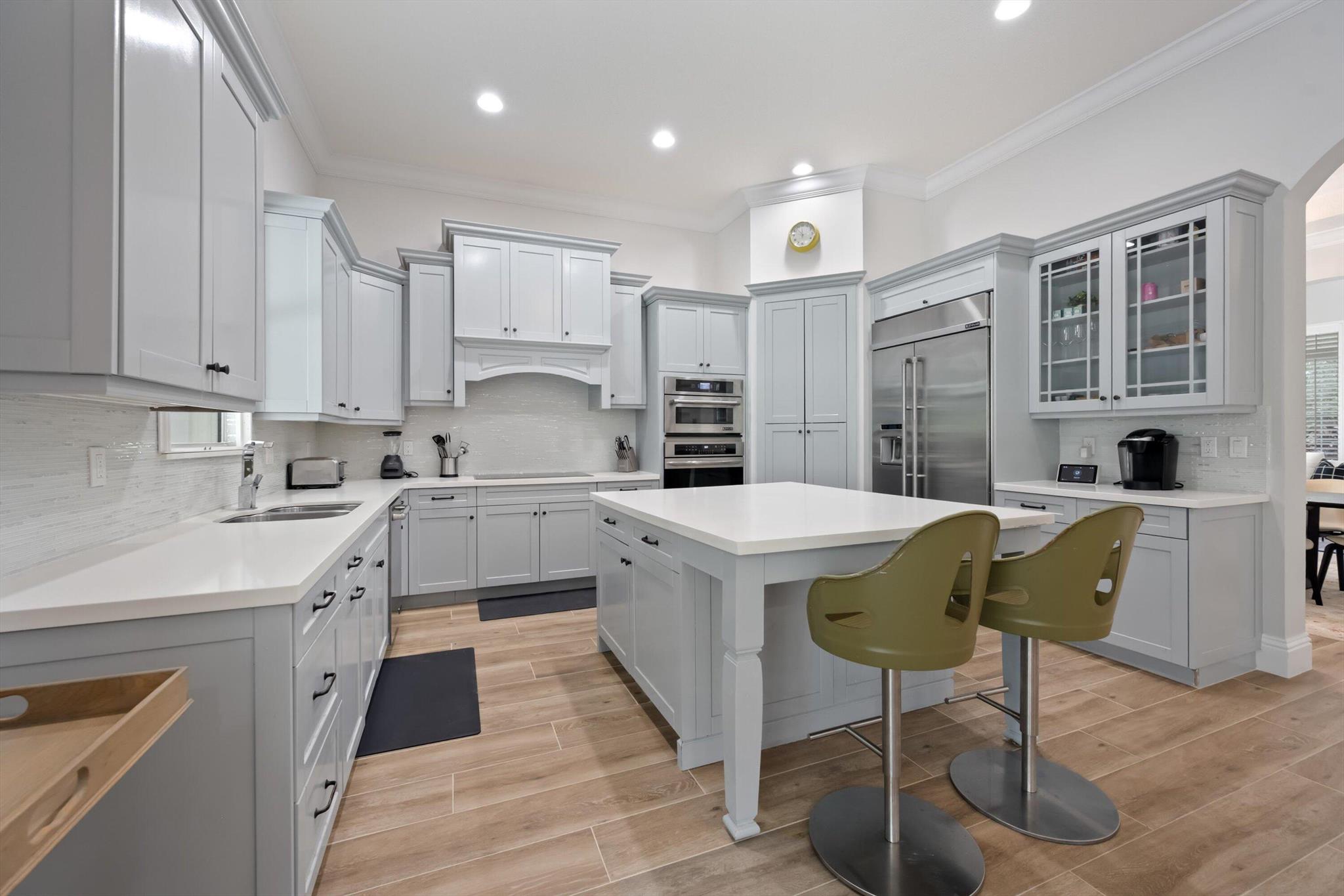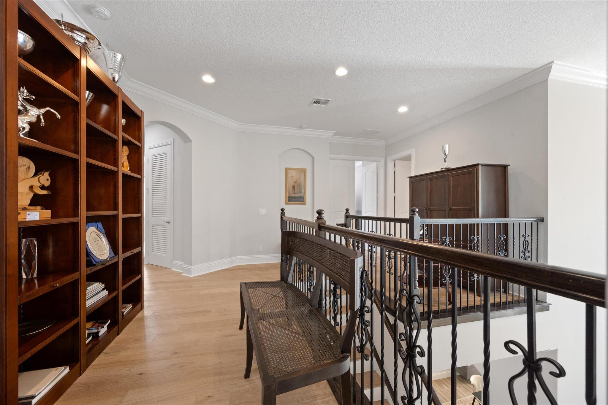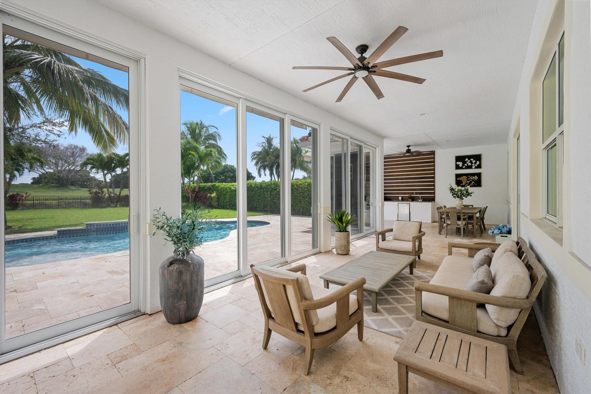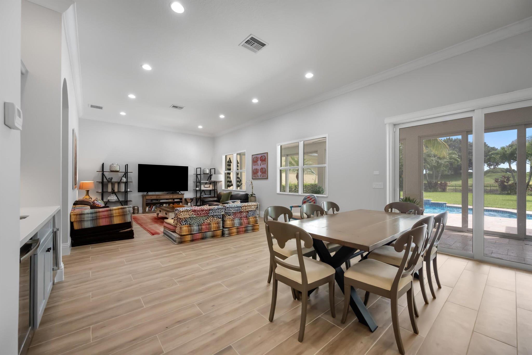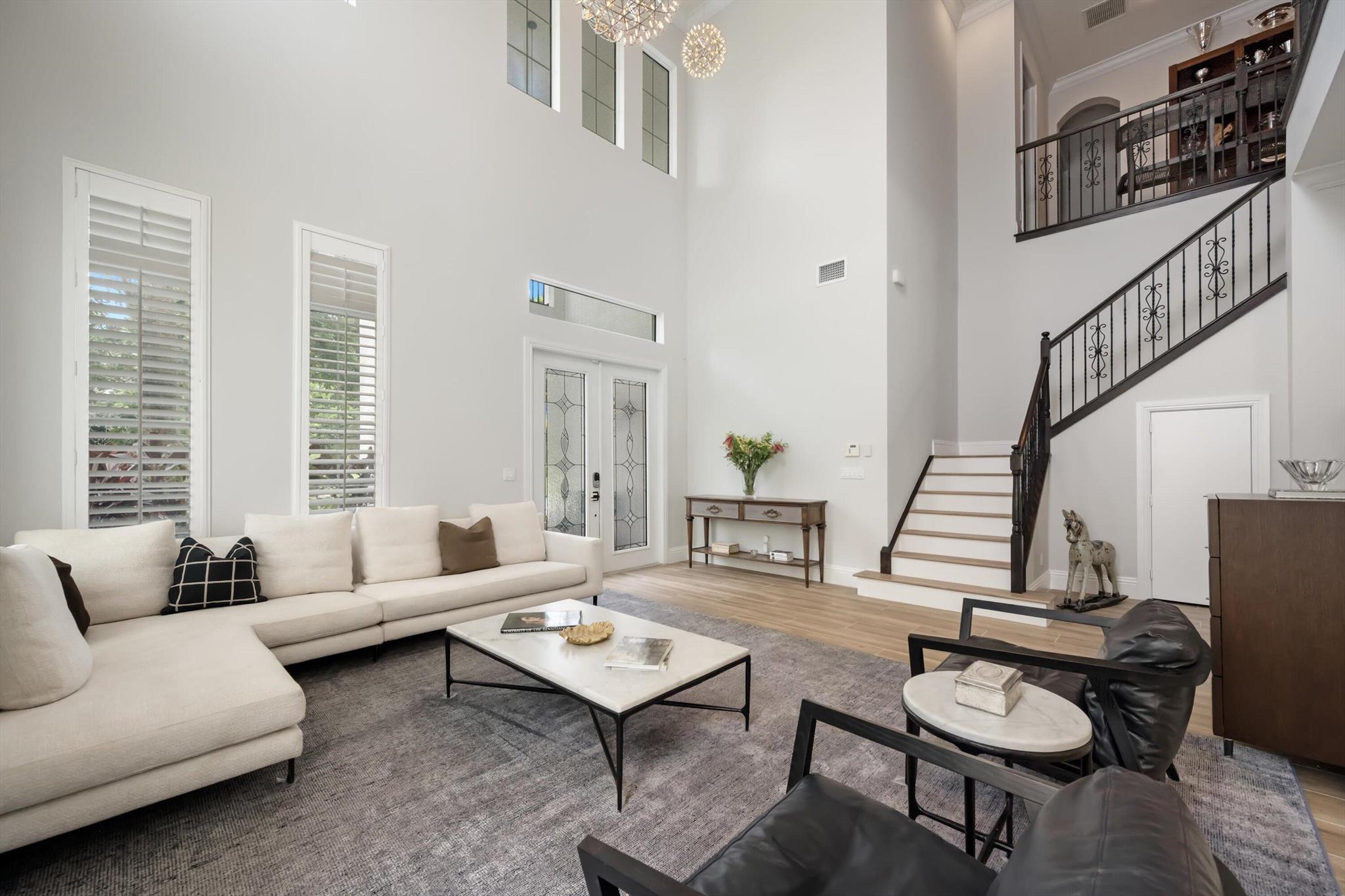 This stunning home is located in the coveted neighborhood of Hunter’s Chase within the Palm Beach Polo Club. Featuring a total of 4,300 square feet under air, this waterfront property offers 6 bedrooms, 4 full and 1 half baths, a 3-car garage, and boasts lake and golf course views! Curated with designer touches throughout the two stories, the interior boasts vaulted ceilings, stunning dark wood floors, an eat-in kitchen with a wet bar plus a formal dining room, family room, and a luxurious master suite with its own private patio. Step outside to enjoy the spacious enclosed patio, featuring a summer kitchen plus a stacking glass door system for instant outdoor living. The perfectly manicured backyard is equipped with a large Travertine tile deck, freeform pool, and expansive fenced yard.