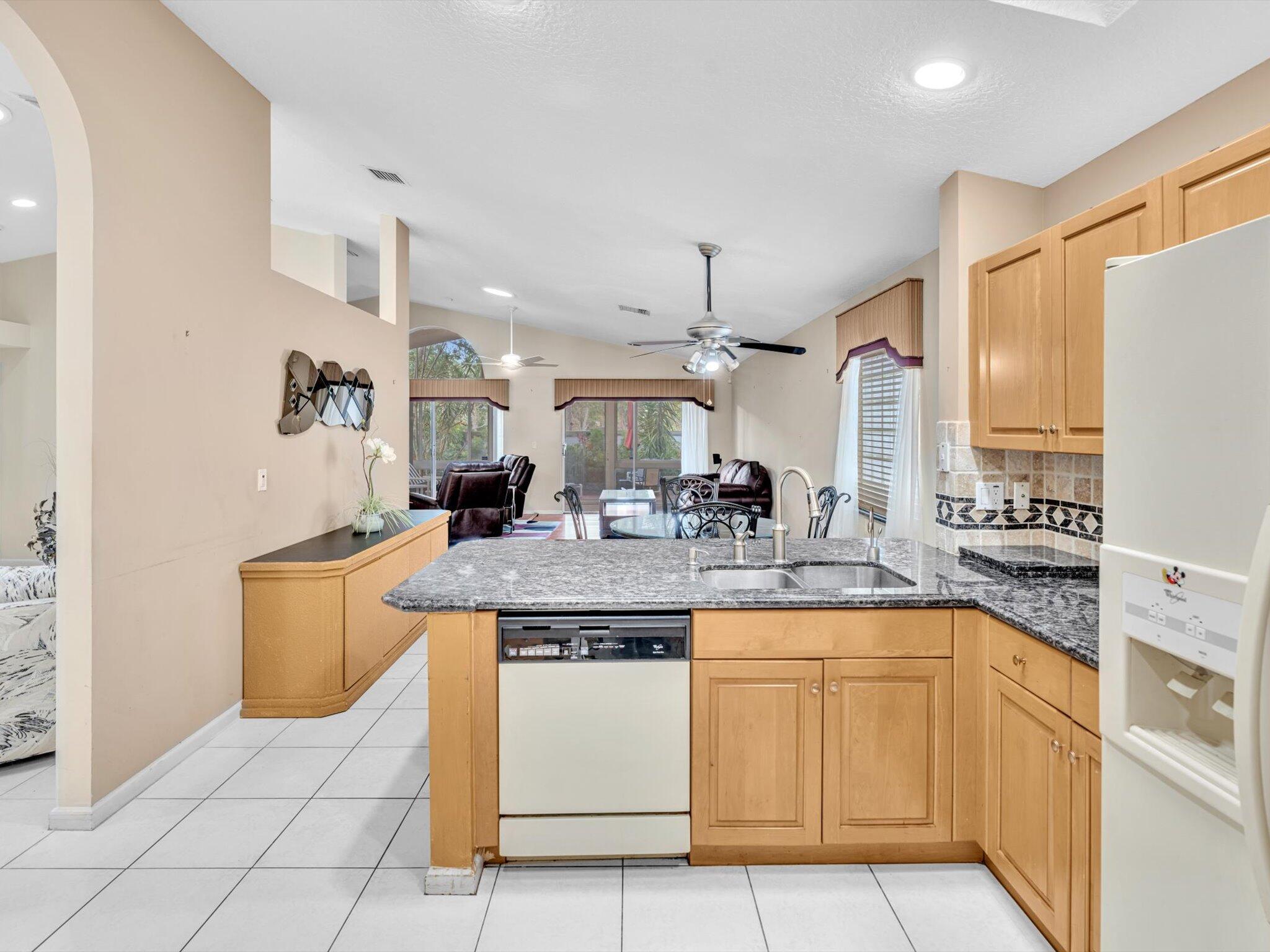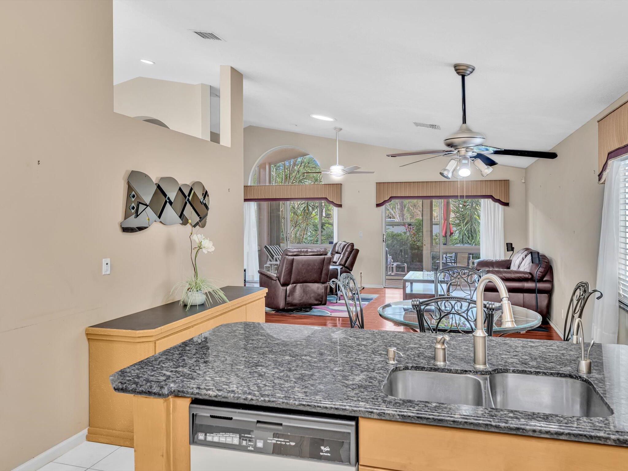 Move right in! Very well-maintained furnished home in Majestic Isles with extended floor plan, bonus glass-enclosed Florida room, and sunny patio. Vaulted ceilings, 18” neutral tile, wood floors in family room, gorgeous kitchen with granite counters, wood cabinets, and skylight. Bright living spaces with 3 solar tubes. 3 spacious bedrooms, walk-in closets, 2020 AC and accordion shutters. Resort-style living with clubhouse, pool, tennis, pickleball, fitness, entertainment, sauna, and more. Very close to houses of worship. A true gem in a vibrant, active community! Come see it today!