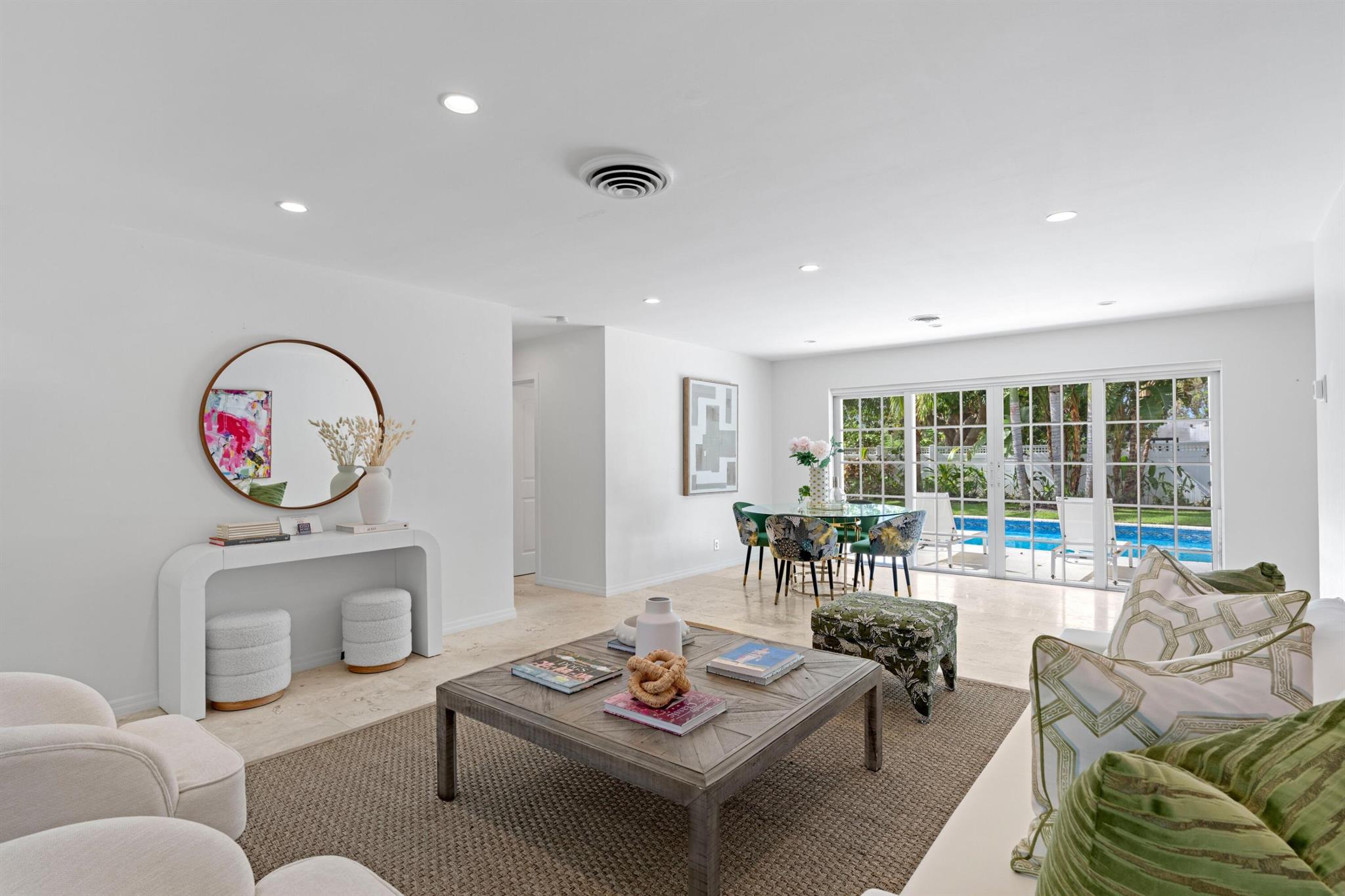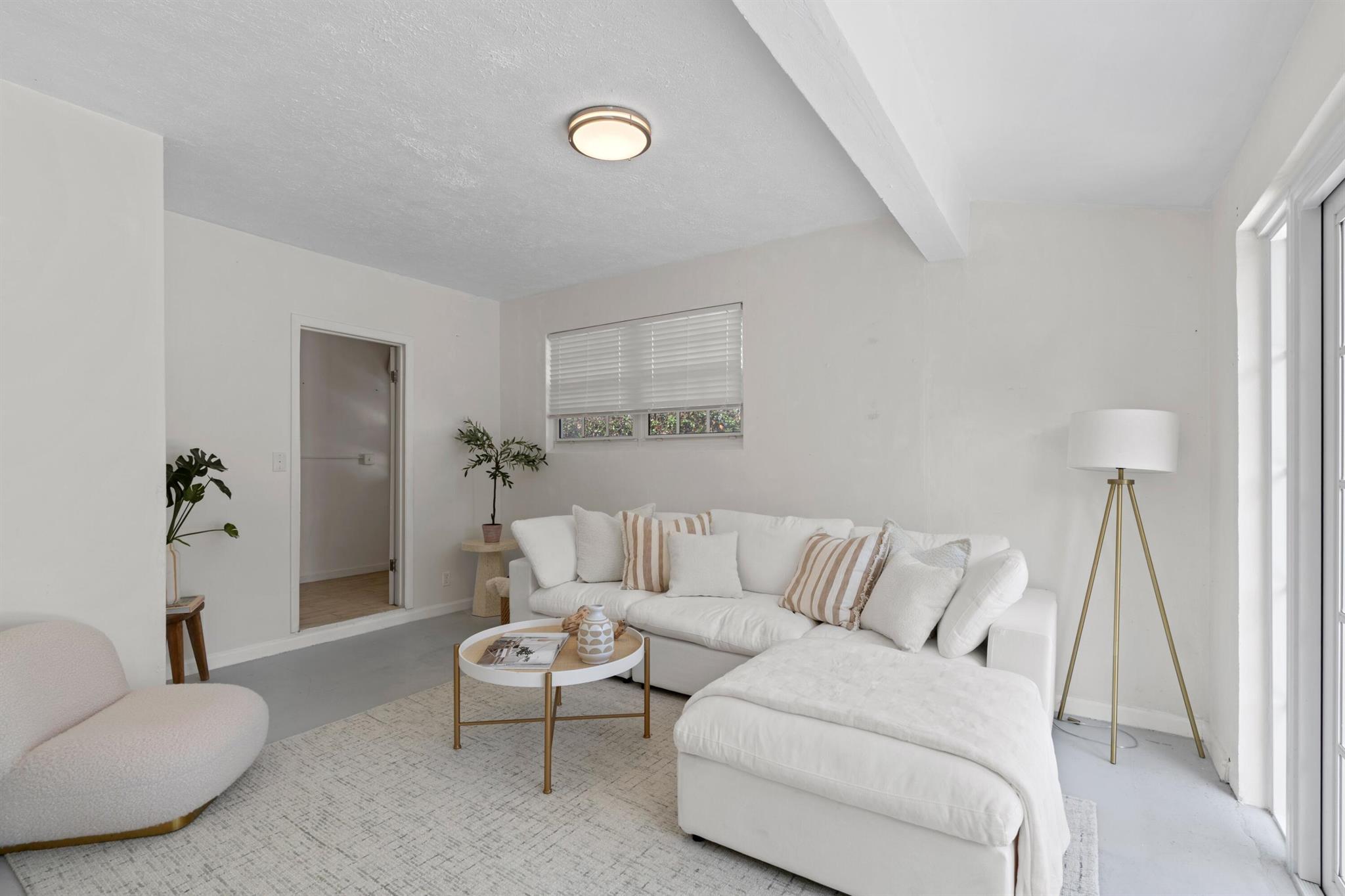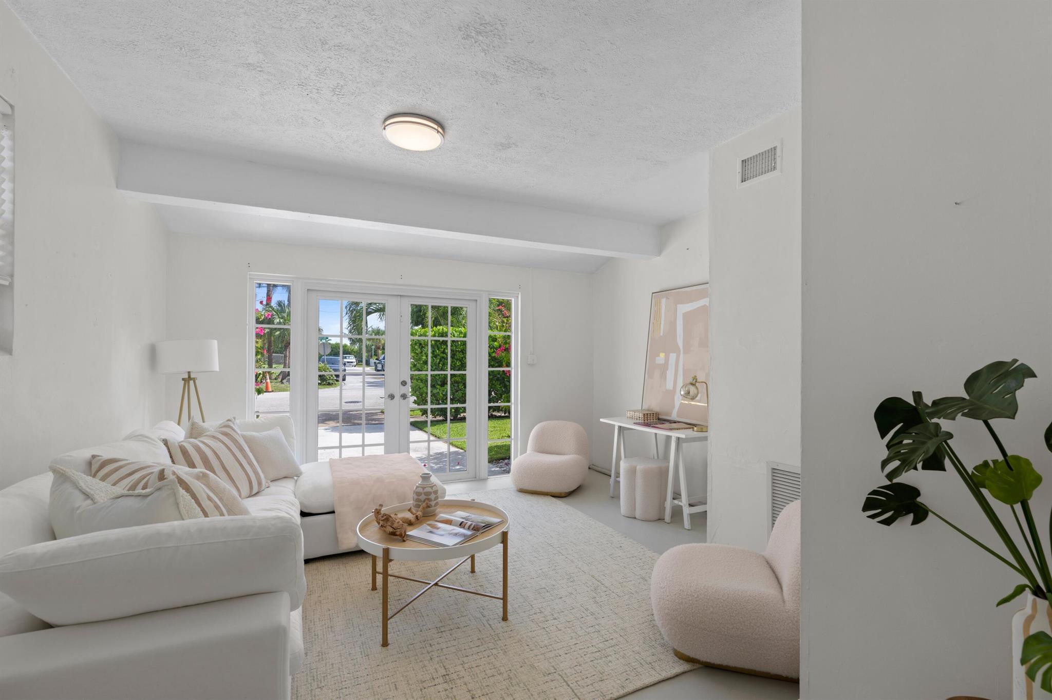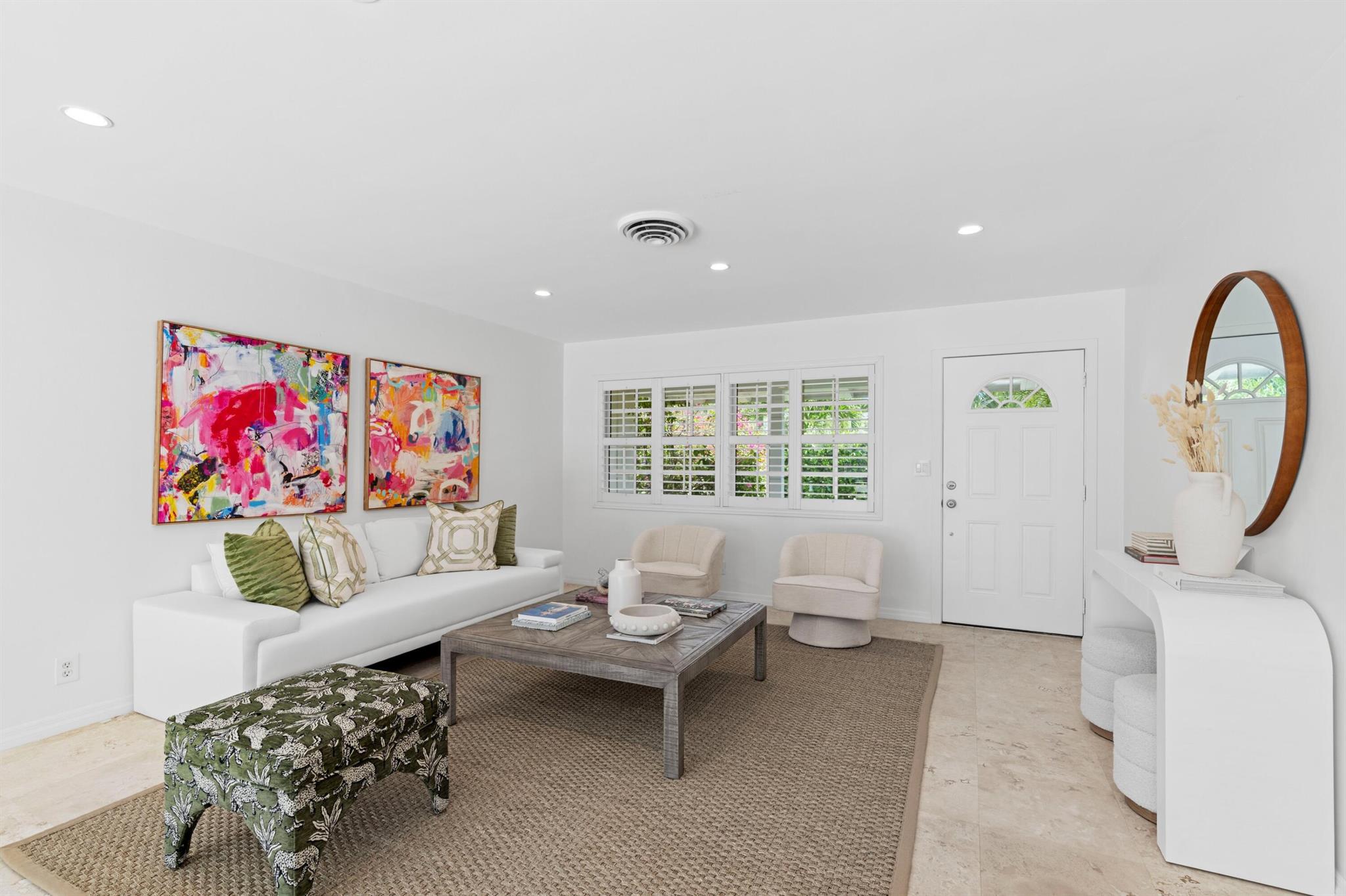 Nestled in the coveted College Park neighborhood, this charming, move-in ready 3-bedroom, 2-bath residence boasts coastal living at its finest. The home offers two en-suite bedrooms, plus a versatile bonus room, which can serve as a third bedroom, office, or gym. The bright living room overlooks the pristine backyard, providing a serene view with ample natural light. The private backyard features lush landscaping, a covered patio with a retractable awning, and an immaculate pool. Just one block south from SOSO neighborhood, this charming jewel is conveniently located near West Palm Beach and Downtown Lake Worth.