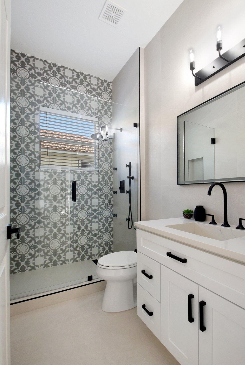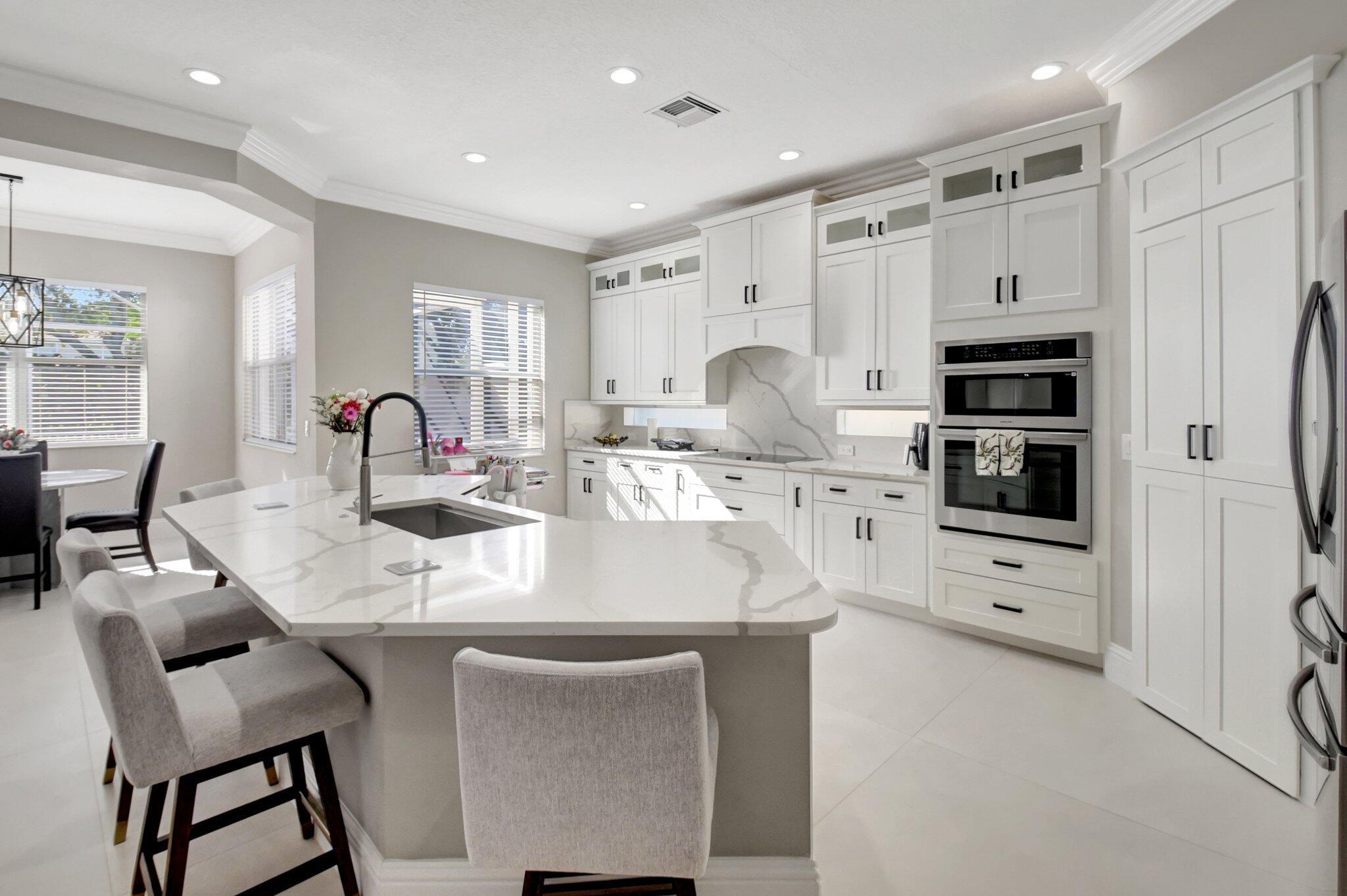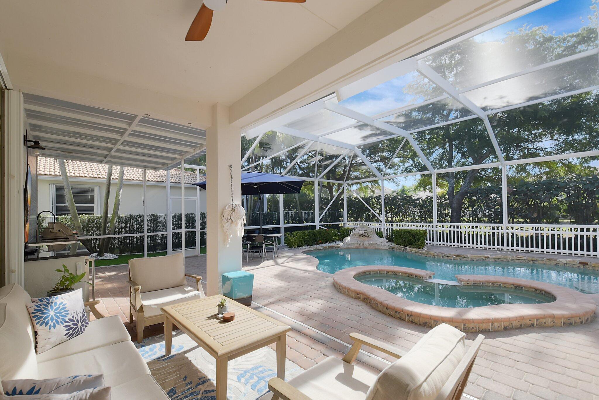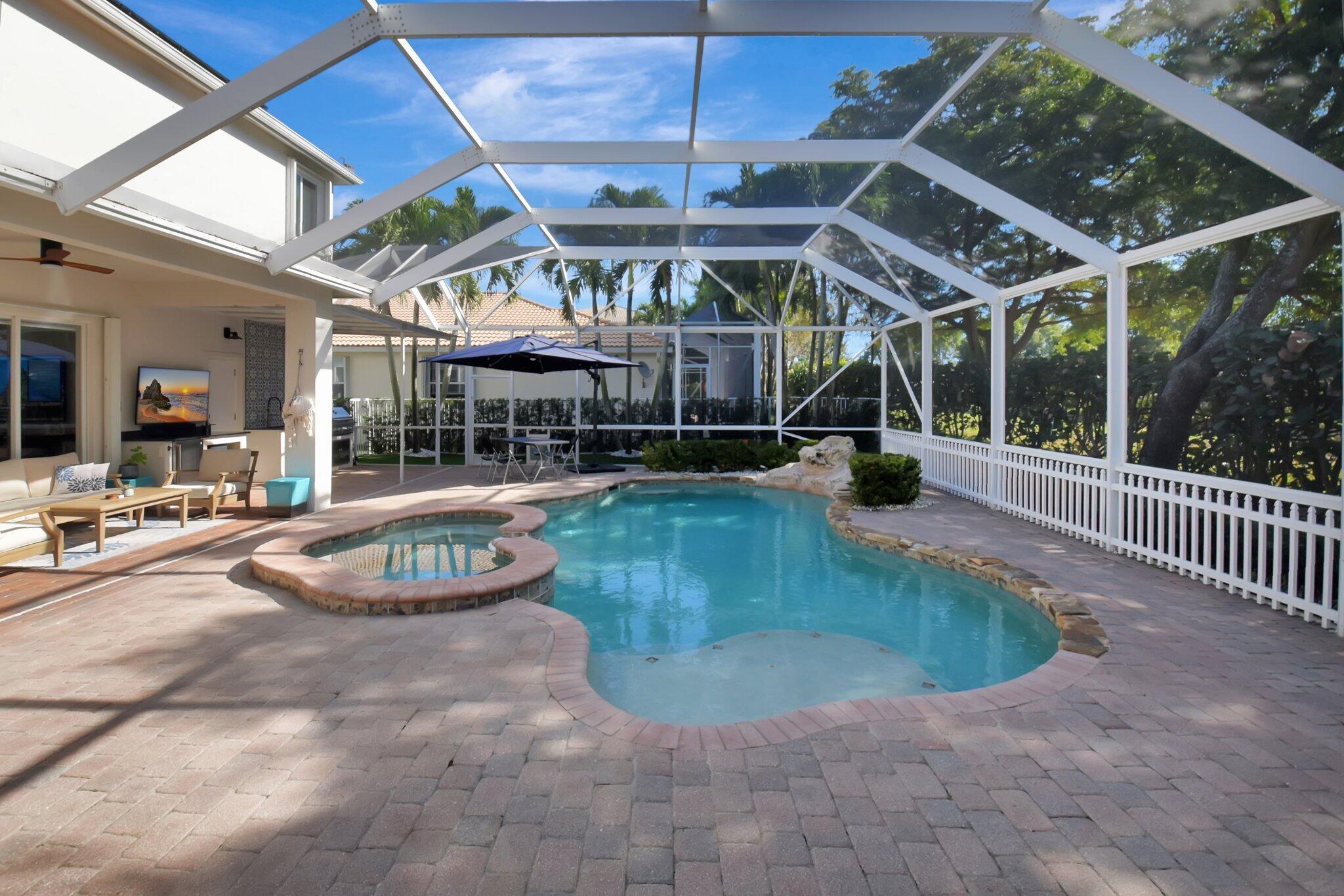 Fully Remodeled 5 bedroom 3.5 bathroom home in Isola Bella Estates! In like new, move in condition. All flooring is large format porcelain tile including full bathroom walls. Everything in this home was tastefully chosen and designed for full luxury living. All bathrooms are fully porcelain tiled and all showers feature handhelds and multiple body sprays. All new light fixtures and fans throughout. A brand new kitchen with quartz countertop and backsplash, and a fully enclosed outdoor area with grilling station and saltwater pool. Located on a canal front w/ no neighbors behind you. 2 NEW AC UNITS INSTALLED 9/2021. Home features 21 solar panels, solar hot water heater, accordion shutters throughout and flex space in the garage for entertainment. Full amenity clubhouse & 24hr manned gate.