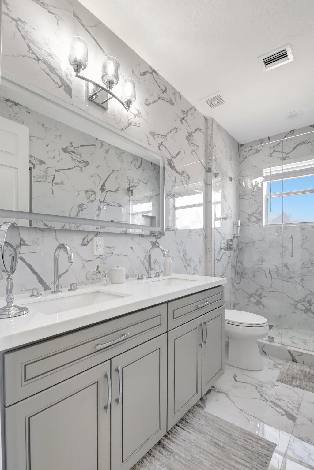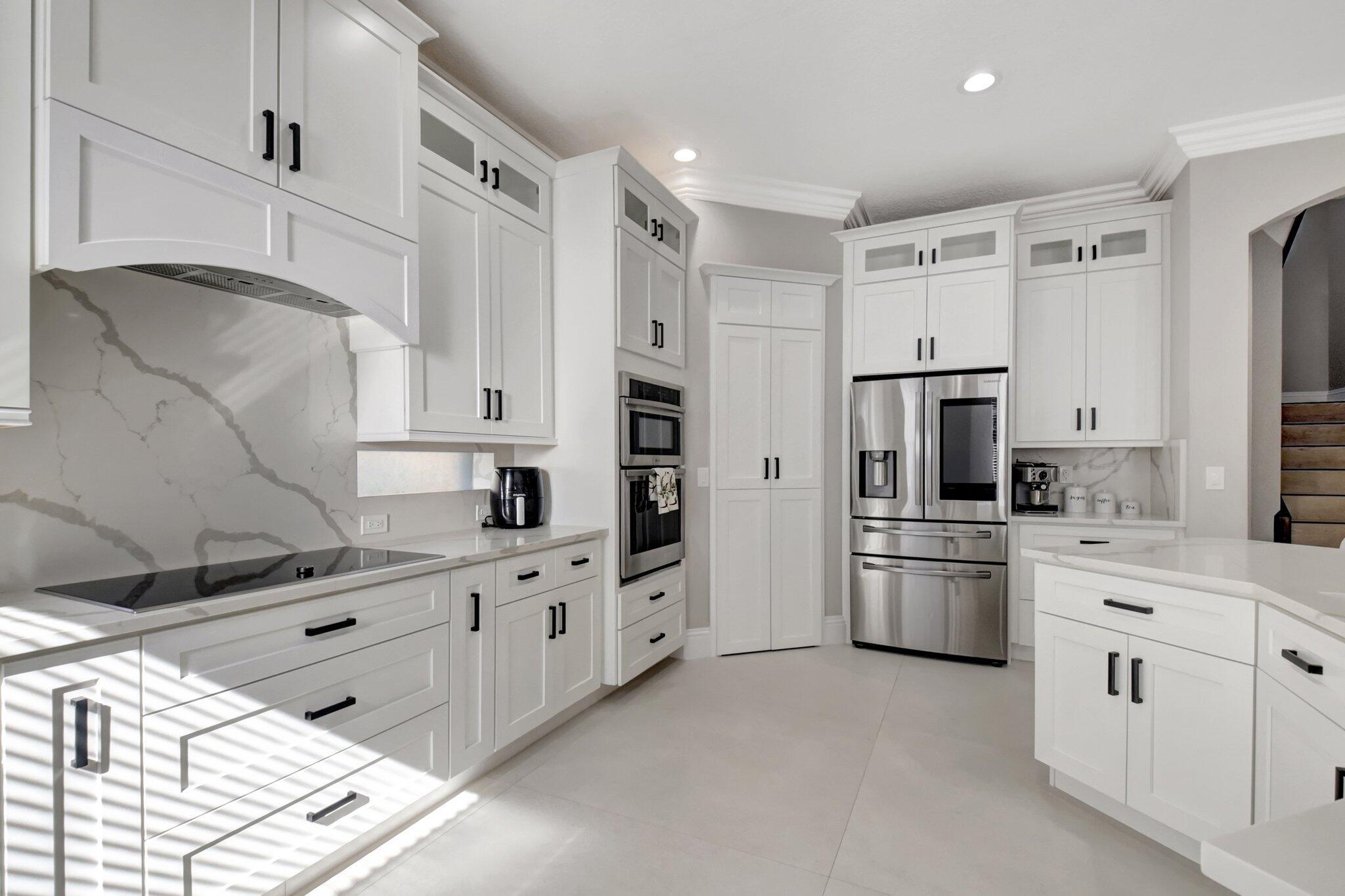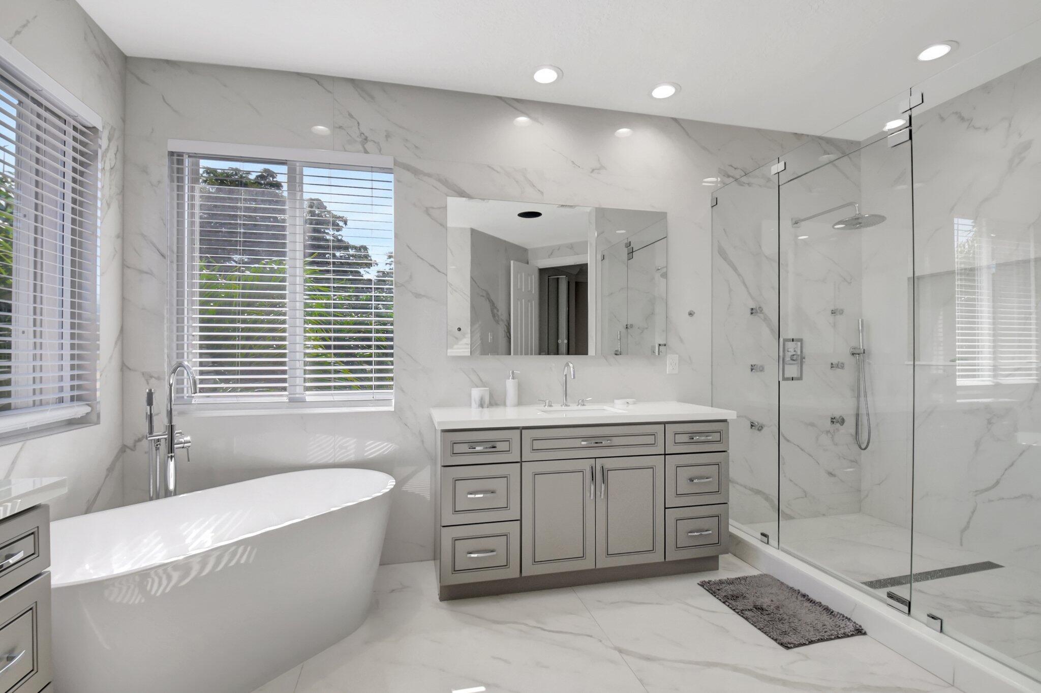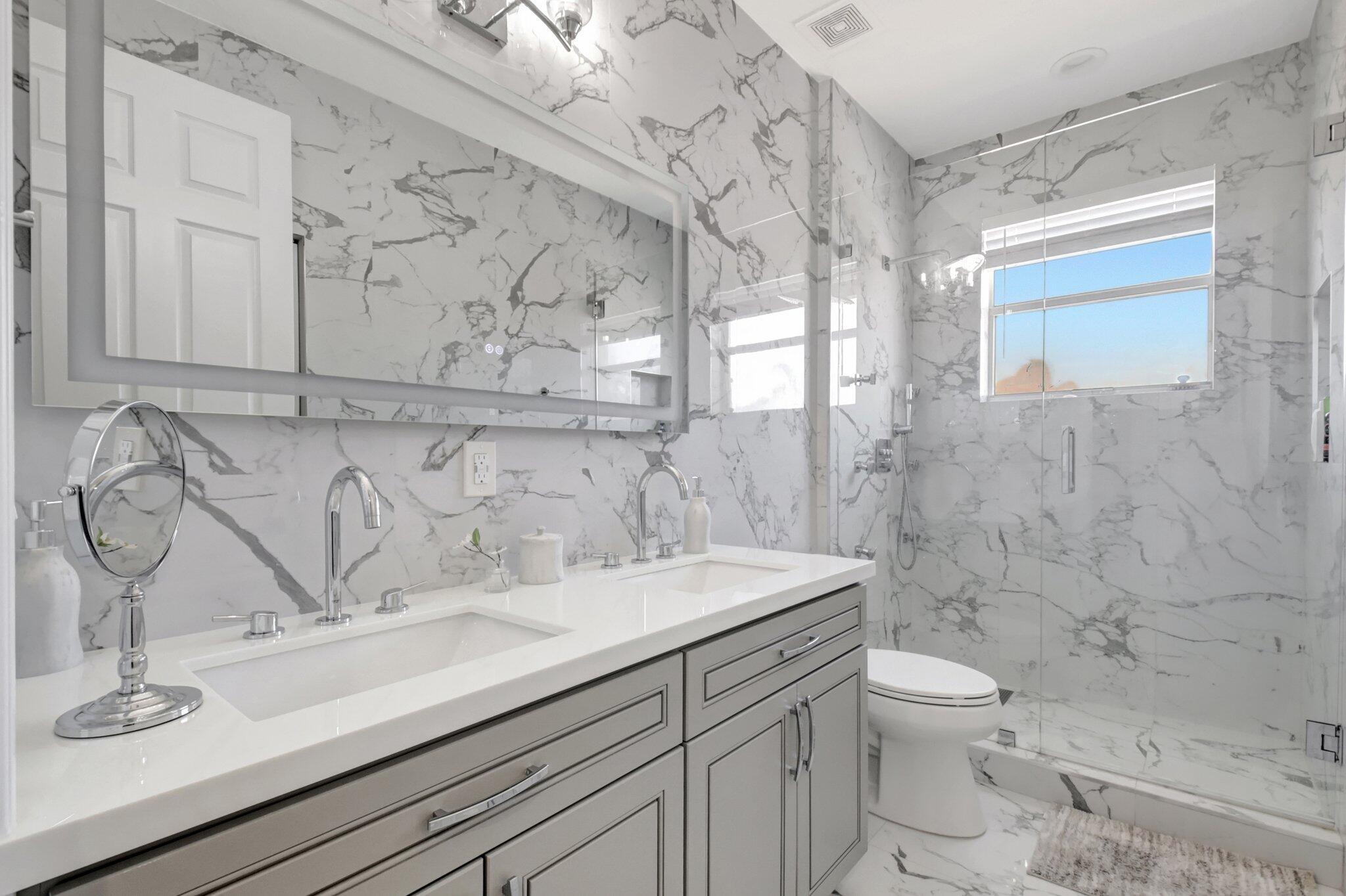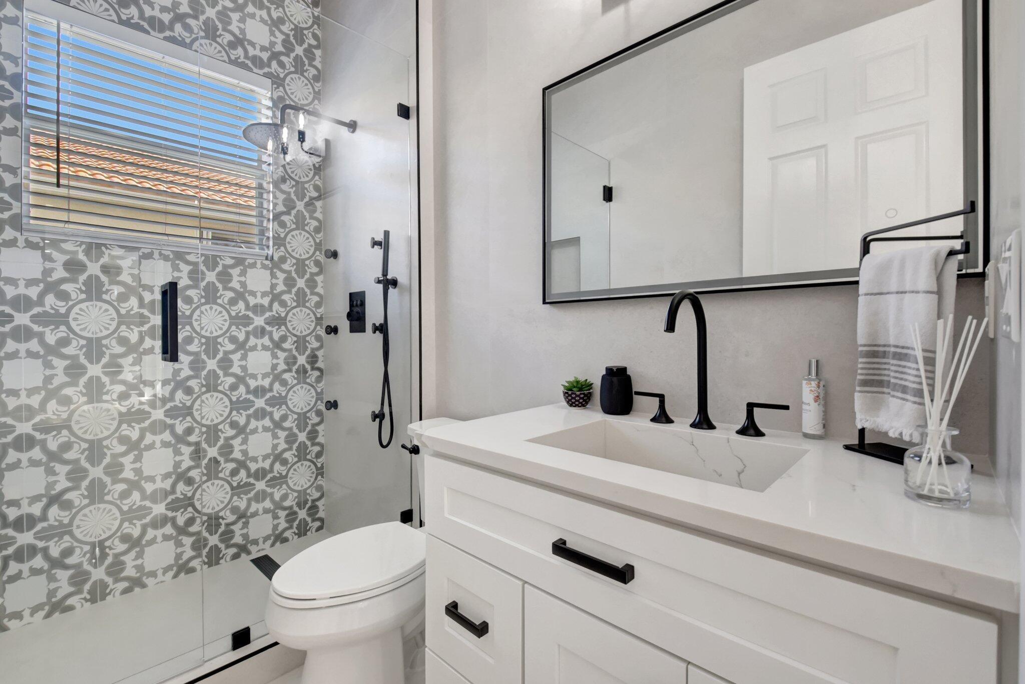 Fully Remodeled 5 bedroom 3.5 bathroom home in Isola Bella Estates! In like new, move in condition. All flooring is large format porcelain tile including full bathroom walls. Everything in this home was tastefully chosen and designed for full luxury living. All bathrooms are fully porcelain tiled and all showers feature handhelds and multiple body sprays. All new light fixtures and fans throughout. A brand new kitchen with quartz countertop and backsplash, and a fully enclosed outdoor area with grilling station and saltwater pool. Located on a canal front w/ no neighbors behind you. 2 NEW AC UNITS INSTALLED 9/2021. Home features 21 solar panels, solar hot water heater, accordion shutters throughout and flex space in the garage for entertainment. Full amenity clubhouse & 24hr manned gate.