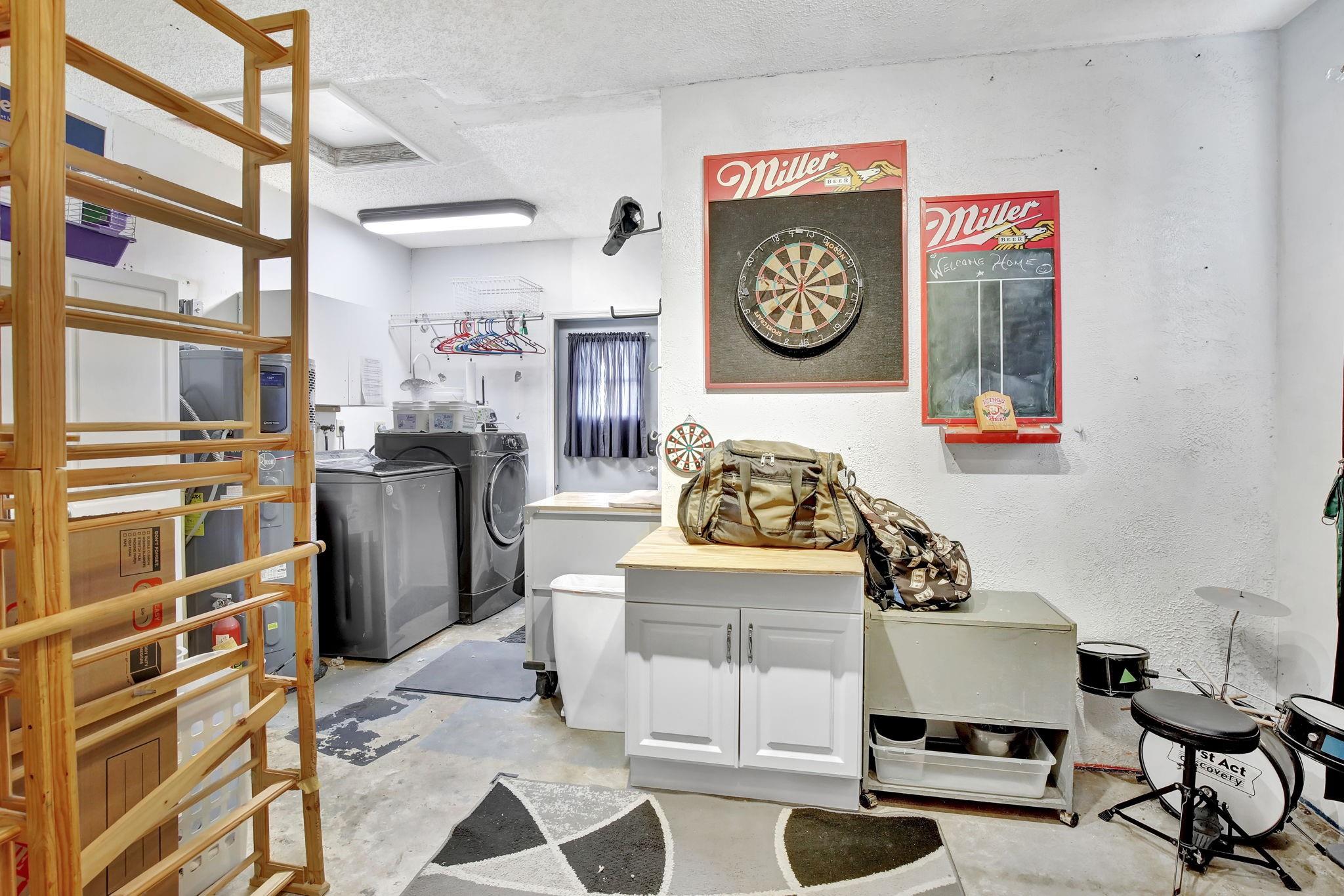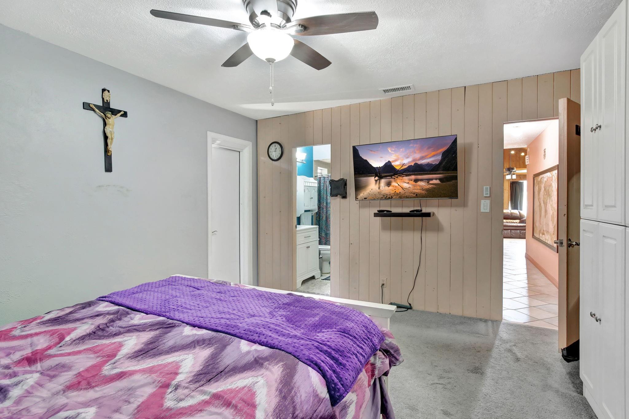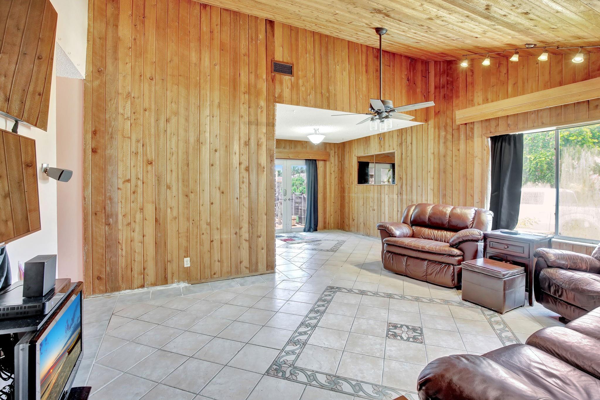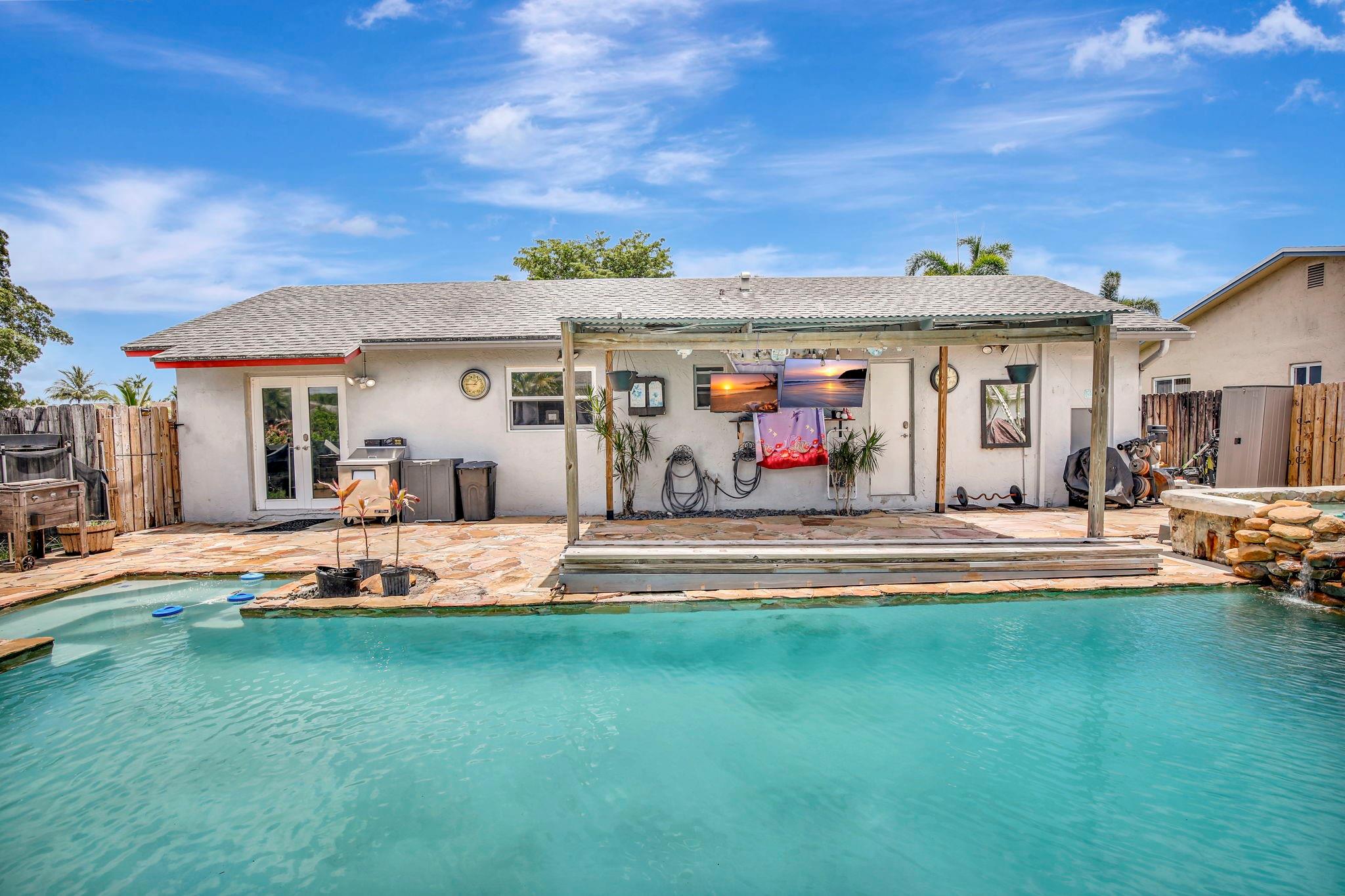 This 3/2 single-family home has spacious corner lot in a great location. Listed PARTIALLY FURNISHED shown, but negotiable and MOTIVATED SELLER. Artsy Colorful Family Fun Vibe or make it your own to fit your lifestyle. No HOA. Home Inspection done roof & a/c passed. Features heated pool and spa unique sandstone deck with door to bathroom. Outdoor covered patio to relax & entertain with Two Mounted TVs, deli-fridge, fenced backyard. Vaulted Ceiling living room encased with Pecky Cypress wood panels, mirrors, and brick. Remodeled kitchen has plenty of storage with 42” Cherry cabinets. Garage was partially converted into a versatile bonus space with its own separate entrance perfect for an office, guest, or potential rental income opportunity.