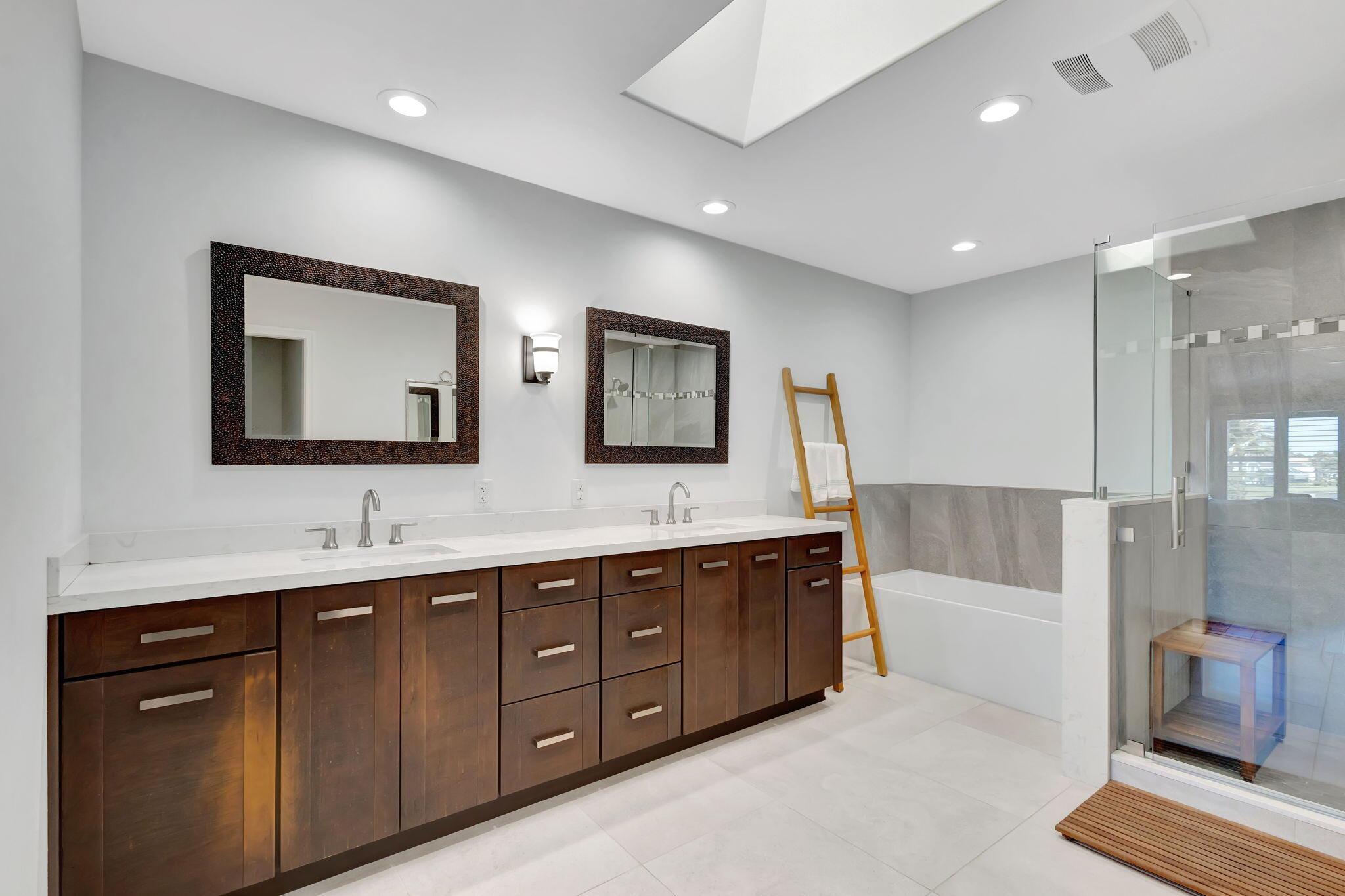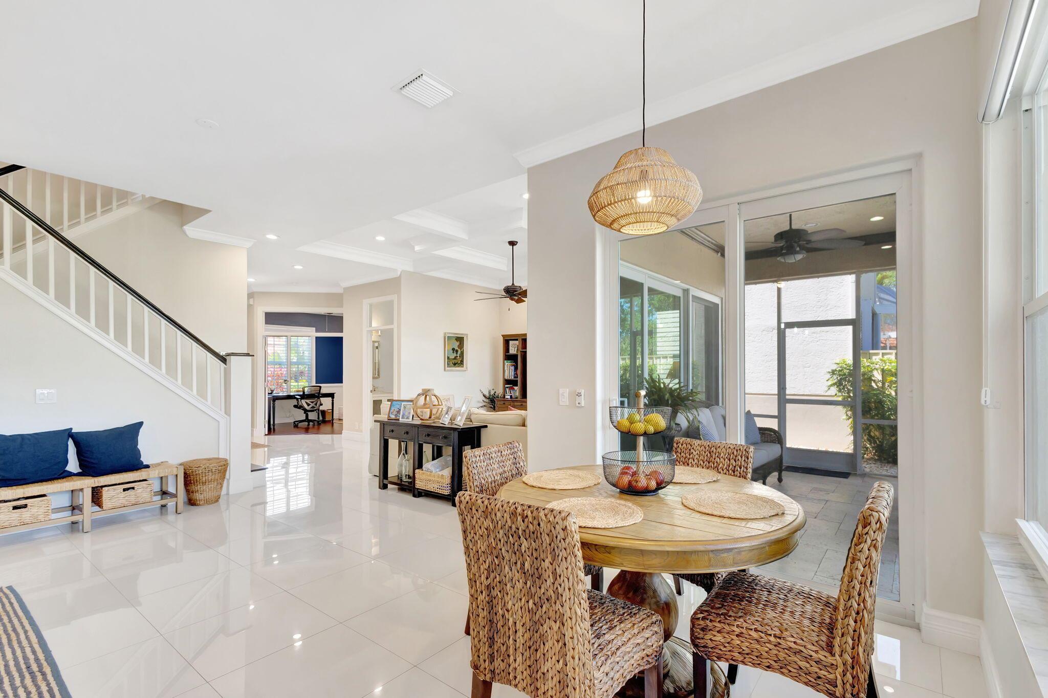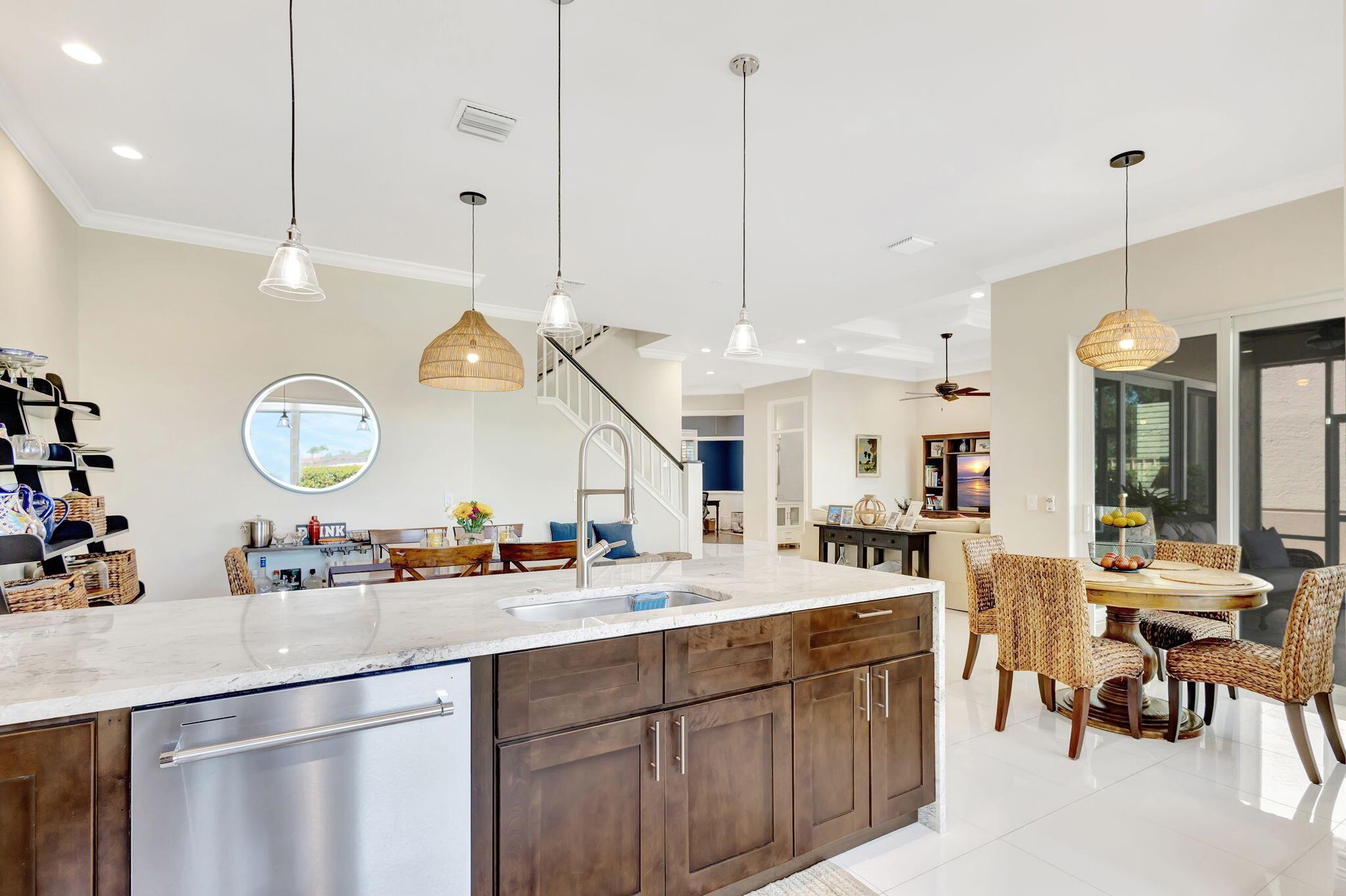 Breathtaking Golf/Lake/Resort views from this beautifully remodeled 4BR/3BA + loft home in the highly desirable community of Monterey Pointe in PGA National. Exquisitely designed with abundant use of marble, granite, wood, porcelain and recently professionally painted. The flow of the floorplan, along with the panoramic views from all the rooms, plus the high ceilings, create a wonderful open & bright home to enjoy. Recently updated with impact windows, top-of-the-line materials, new KitchenAid appliances, restaurant grade gas range, gas hot water heater, washer/gas dryer, redesigned laundry room, and custom closets make this move-in-ready. The entire home has 5” designer baseboards and stunning 24” rectified porcelain tile in the living areas. The great room is detailed w/ magnificent