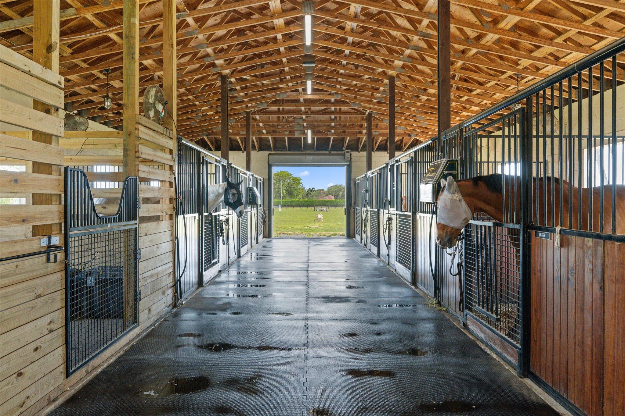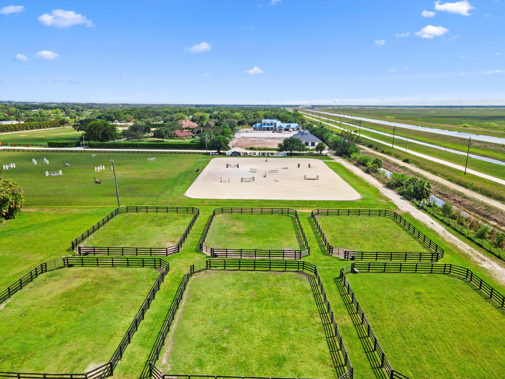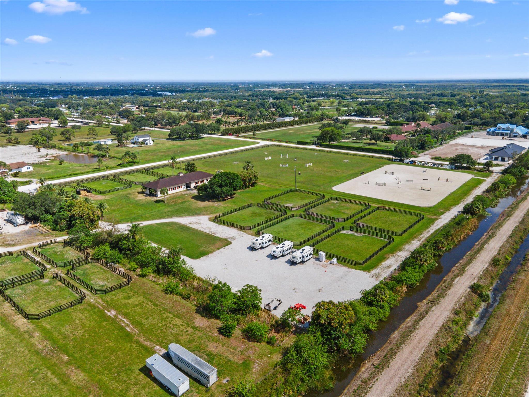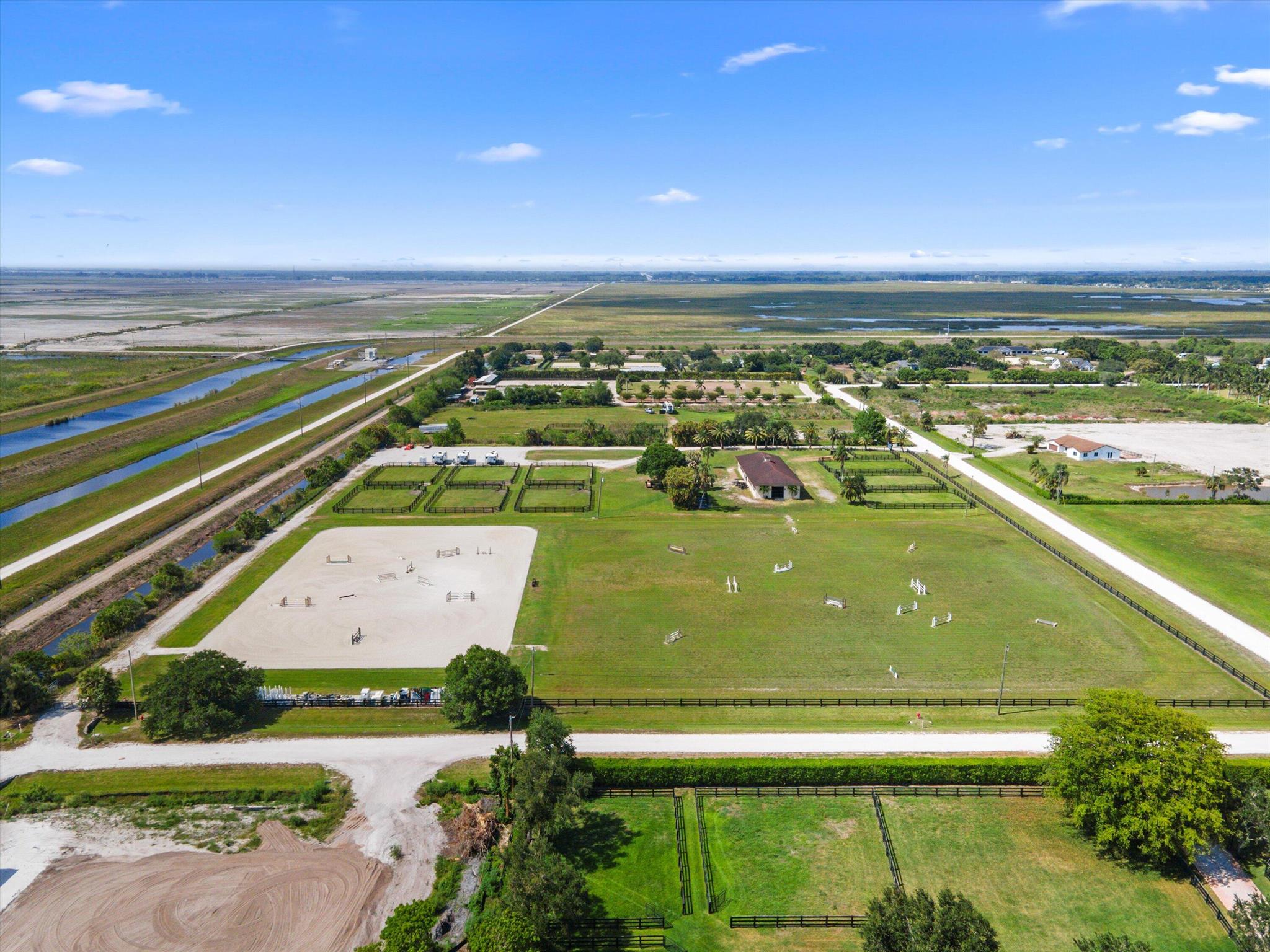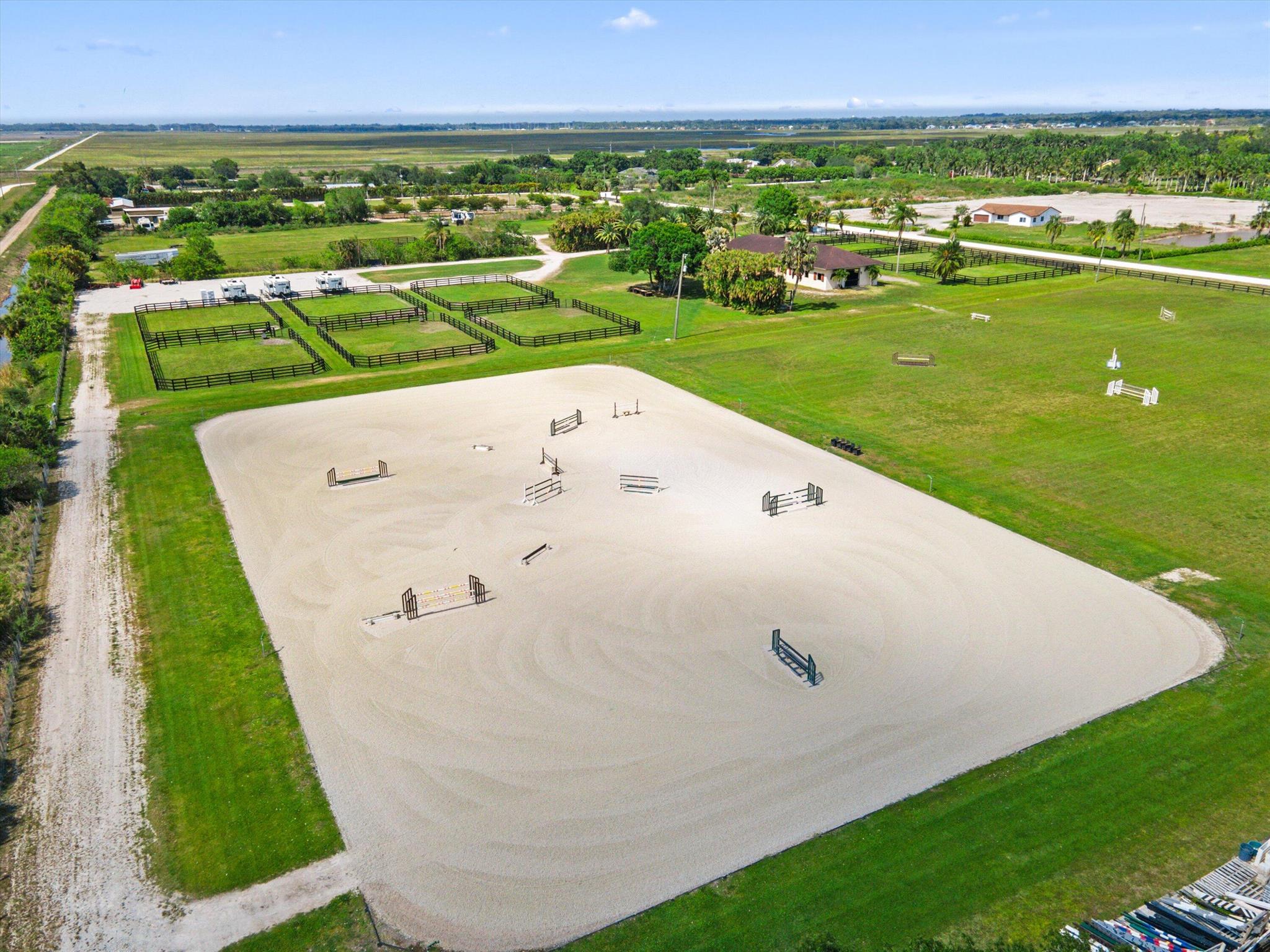 One of the only farms for sale in Wellington on over 10 acres, with plenty of room to build and develop, or leave as is and enjoy the space. This farm is on 2 parcels that total 10.47 acres. The farm abuts protected land to the West and will forever have no neighbors and privacy, plus peace and quiet. The 5 acre parcel has a 15 stall CBS center aisle barn with a full bath, laundry, tack room, feed room and 2 storage rooms, all with AC. Each stall is matted, with water, and has a large window with shutters. The aisles have roll up metal doors. This barn is on city water. The adjacent parcel is 5.47 acres and has an enormous irrigated grass jumping field and a 165 x 265 JTWG ring with new irrigation. This farm has 4 50 amp RV hookups, 10 paddocks, 90’x50′ 1 smaller paddock, a 20 sta