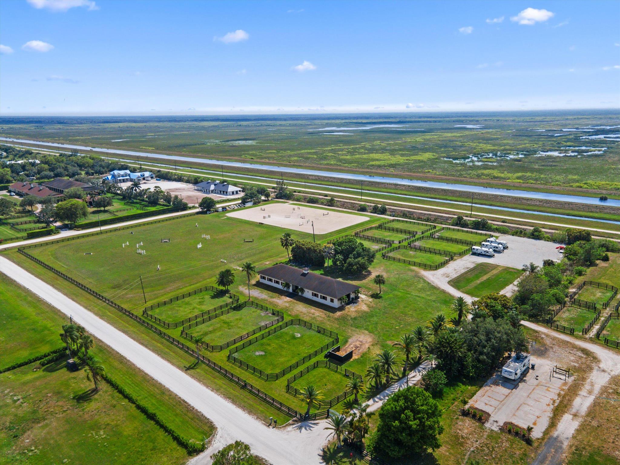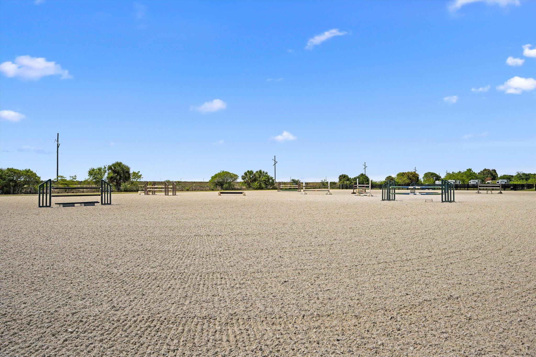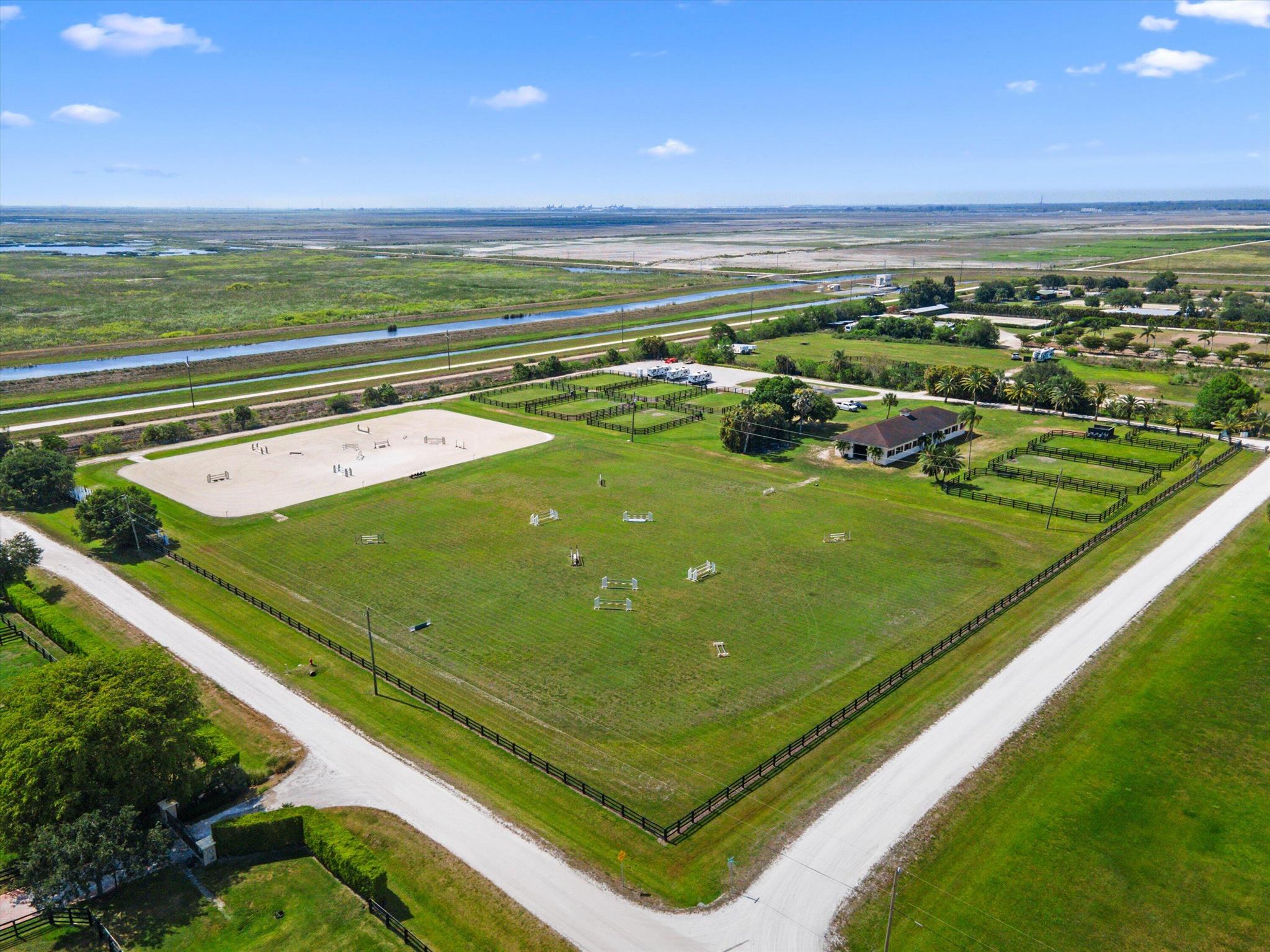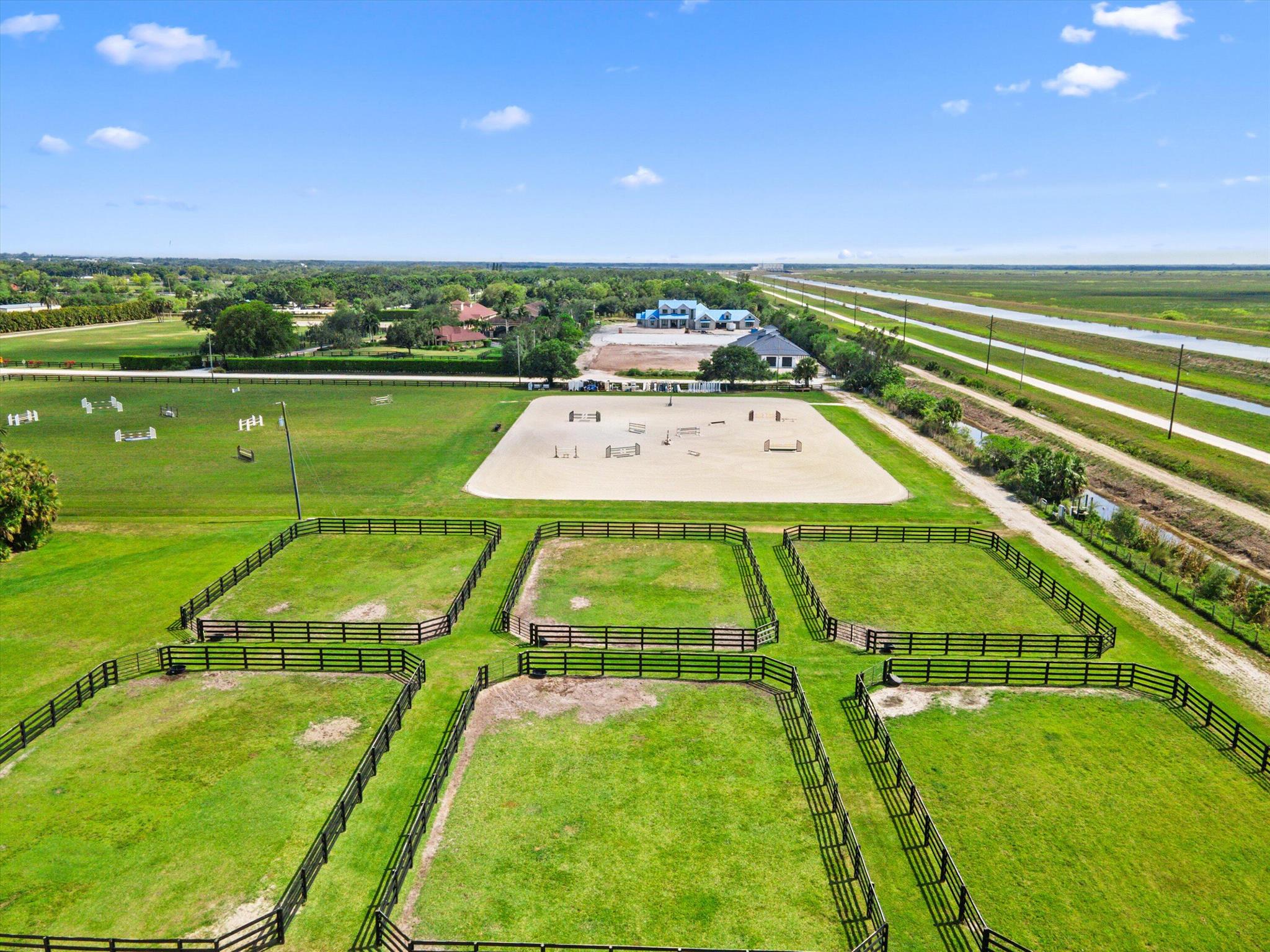 One of the only farms for sale in Wellington on over 10 acres, with plenty of room to build and develop, or leave as is and enjoy the space. This farm is on 2 parcels that total 10.47 acres. The farm abuts protected land to the West and will forever have no neighbors and privacy, plus peace and quiet. The 5 acre parcel has a 15 stall CBS center aisle barn with a full bath, laundry, tack room, feed room and 2 storage rooms, all with AC. Each stall is matted, with water, and has a large window with shutters. The aisles have roll up metal doors. This barn is on city water. The adjacent parcel is 5.47 acres and has an enormous irrigated grass jumping field and a 165 x 265 JTWG ring with new irrigation. This farm has 4 50 amp RV hookups, 10 paddocks, 90’x50′ 1 smaller paddock, a 20 sta