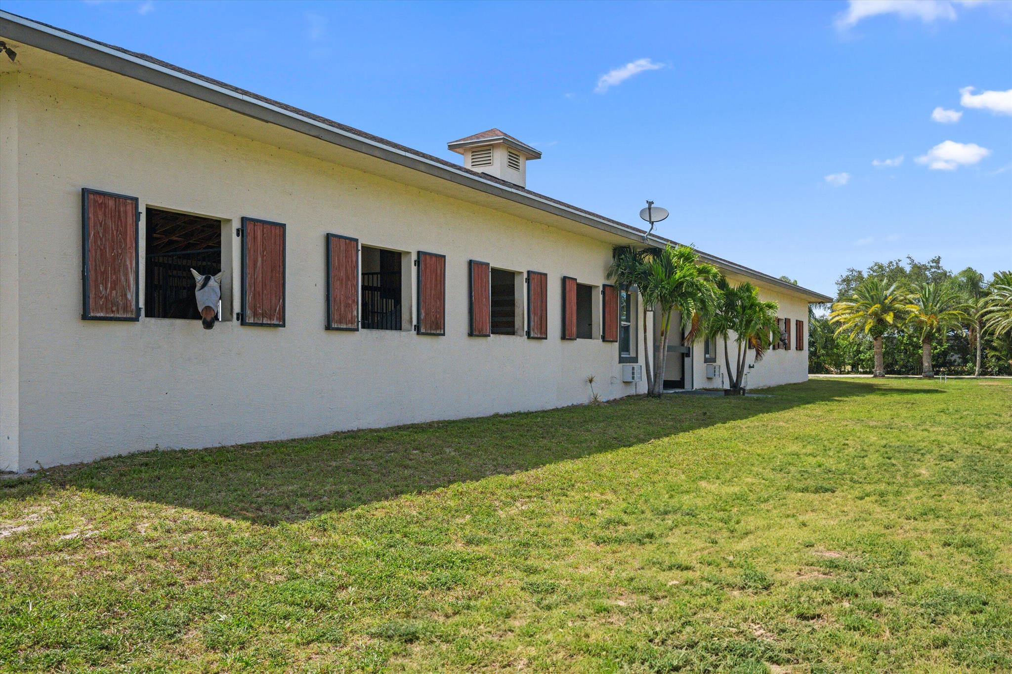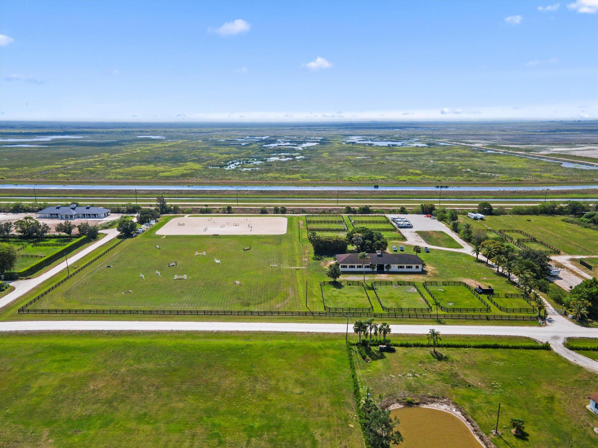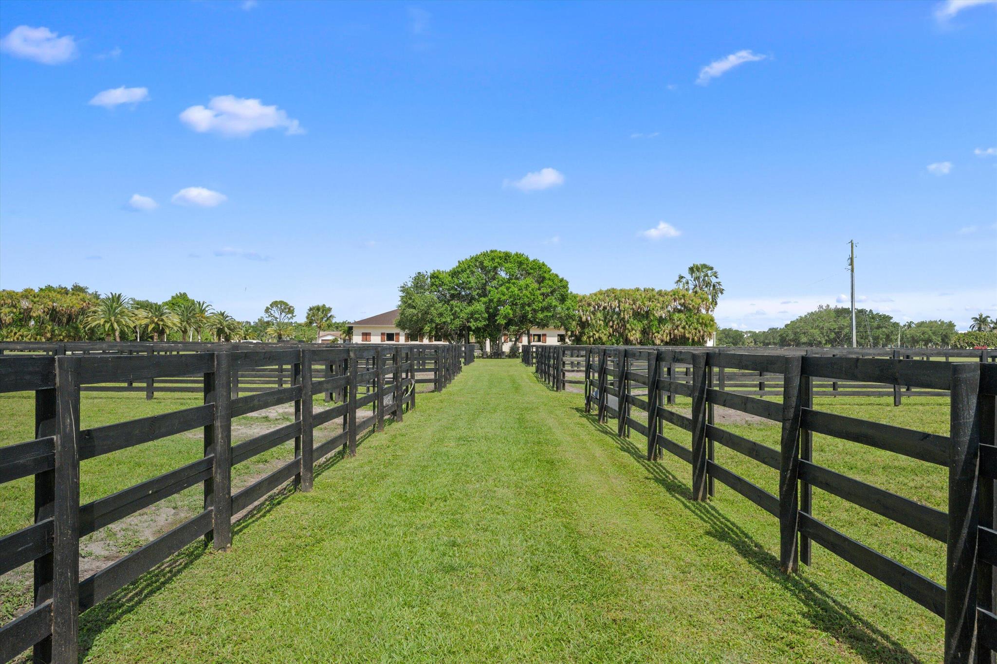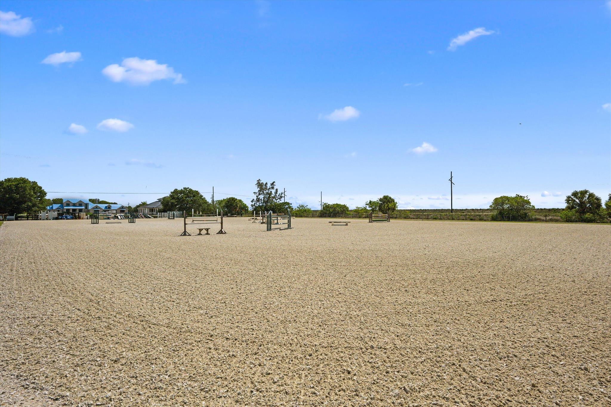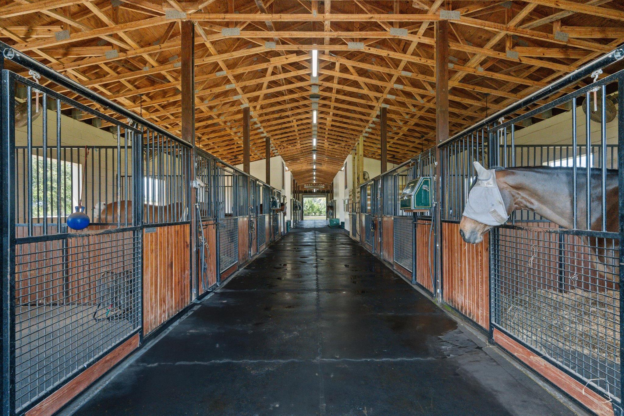 One of the only farms for sale in Wellington on over 10 acres, with plenty of room to build and develop, or leave as is and enjoy the space. This farm is on 2 parcels that total 10.47 acres. The farm abuts protected land to the West and will forever have no neighbors and privacy, plus peace and quiet. The 5 acre parcel has a 15 stall CBS center aisle barn with a full bath, laundry, tack room, feed room and 2 storage rooms, all with AC. Each stall is matted, with water, and has a large window with shutters. The aisles have roll up metal doors. This barn is on city water. The adjacent parcel is 5.47 acres and has an enormous irrigated grass jumping field and a 165 x 265 JTWG ring with new irrigation. This farm has 4 50 amp RV hookups, 10 paddocks, 90’x50′ 1 smaller paddock, a 20 sta