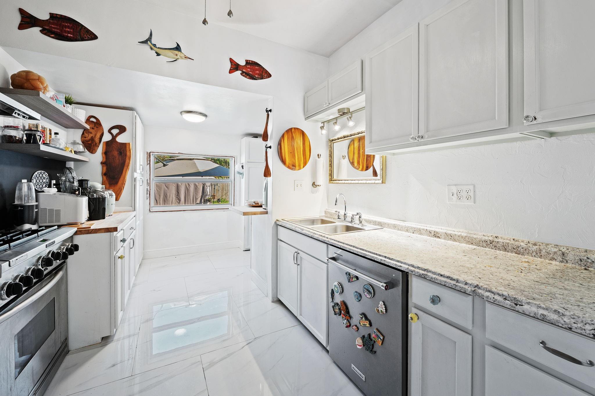 This charming 2-bedroom, 1-bath home and a 1 bedroom 1 bath guest house offers a cozy South Florida feel with 32×32 porcelain tile throughout, remodeled bathrooms, and a spacious kitchen featuring a 6-burner gas stove and stainless steel appliances. The home also includes a newer metal roof and upgraded plumbing for added peace of mind. The detached 1-bedroom, 1-bath guest unit (approx. 400 sq ft) generates $3,500–$4,000/month—perfect for Airbnb or rental income. Additional features include a gas stove, gas water heater, whole-home generator, and a washer/dryer. Ideally located near the Intracoastal and just minutes from the vibrant core of downtown West Palm Beach, surrounded by new restaurants, trendy boutiques, lively nightlife, and exciting new development.