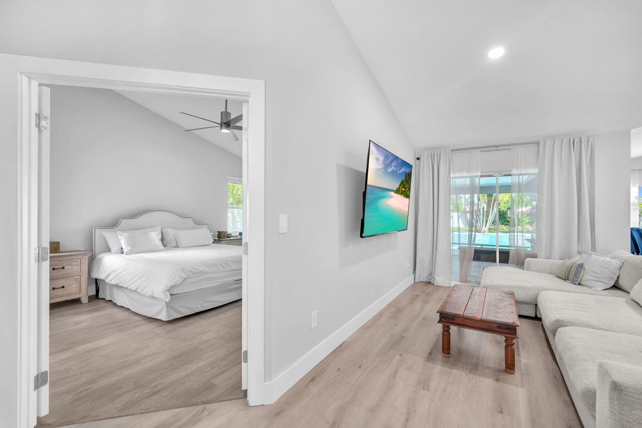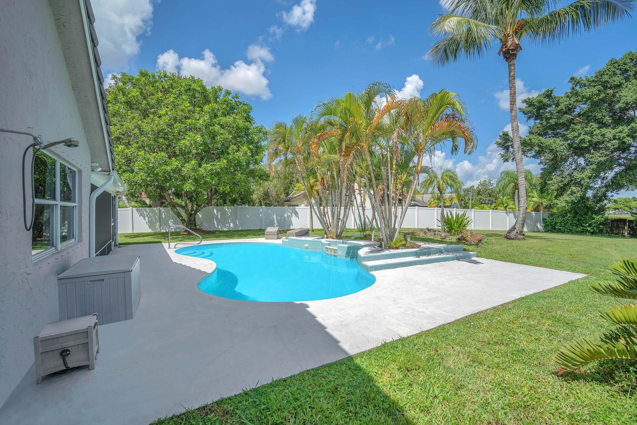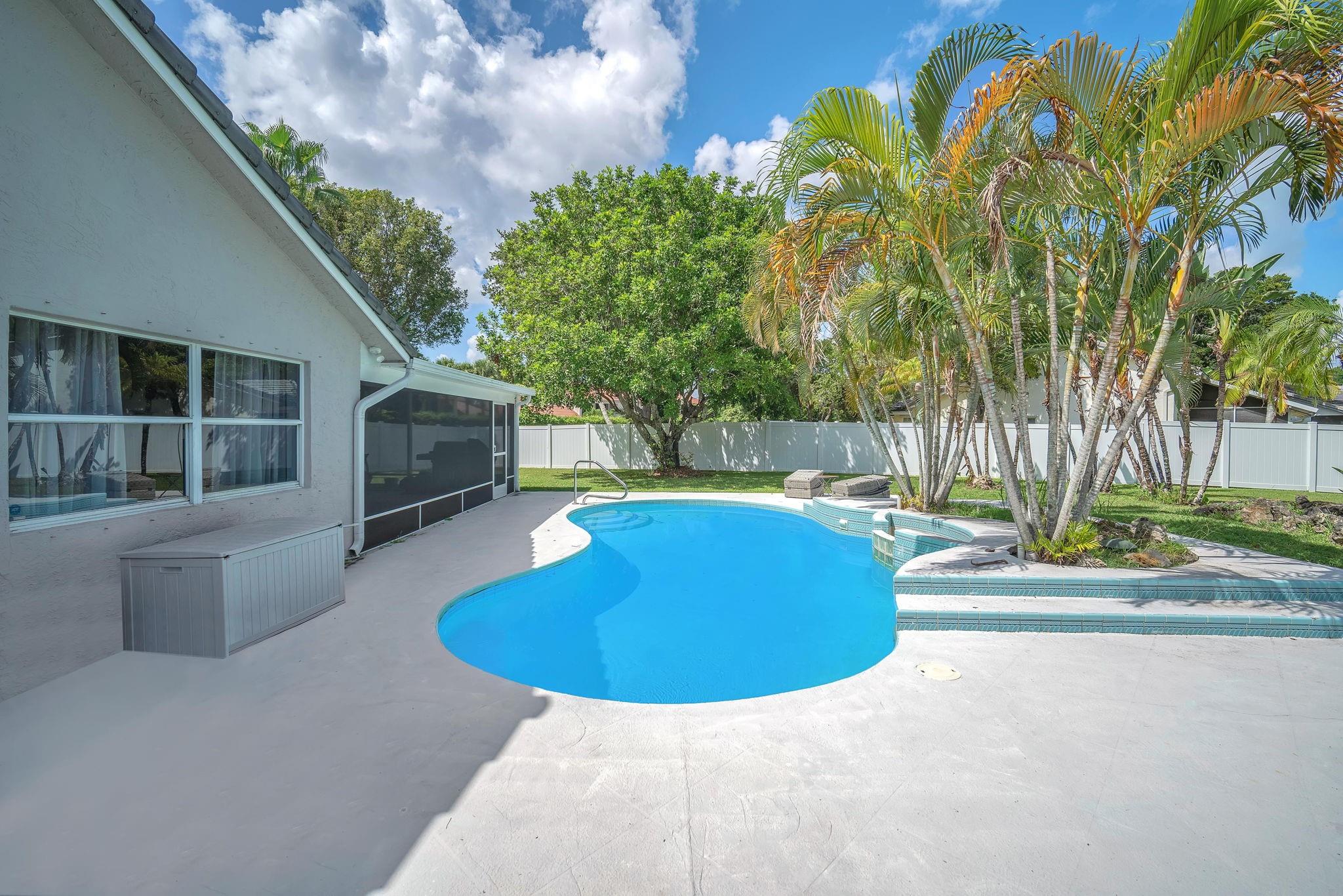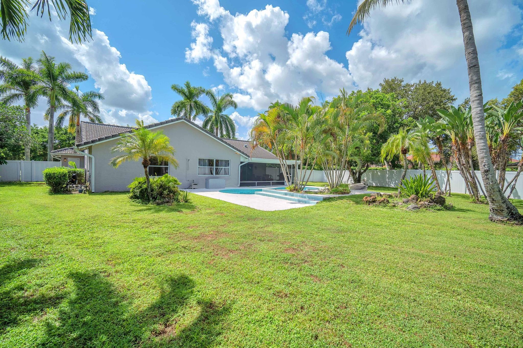 Welcome to this stunning fully renovated 4/3 home on a spacious .43-acre corner lot. Featuring 2 primary en-suites, pool, chef’s kitchen & 3 car garage! The chef’s dream kitchen boasts wood cabinetry, quartz countertops, GE Café appliances, abundant storage & under cabinet lights! All 3 bathrooms have been tastefully renovated, w/quartz countertops. Laminate flooring runs throughout except in bathrooms. Enjoy outdoor living w/fully fenced pie-shaped lot, pool, & screened, covered patio—perfect for entertaining. The 3-car garage offers A/C venting & epoxy floor, plus a circular driveway provides ample parking. Roof (2021), A/C (2021), tankless water heater (2020), hurricane panels, & generator hook-up. Not included in sale:3 pendant lights, entry fixture, window treatments & wine fridge