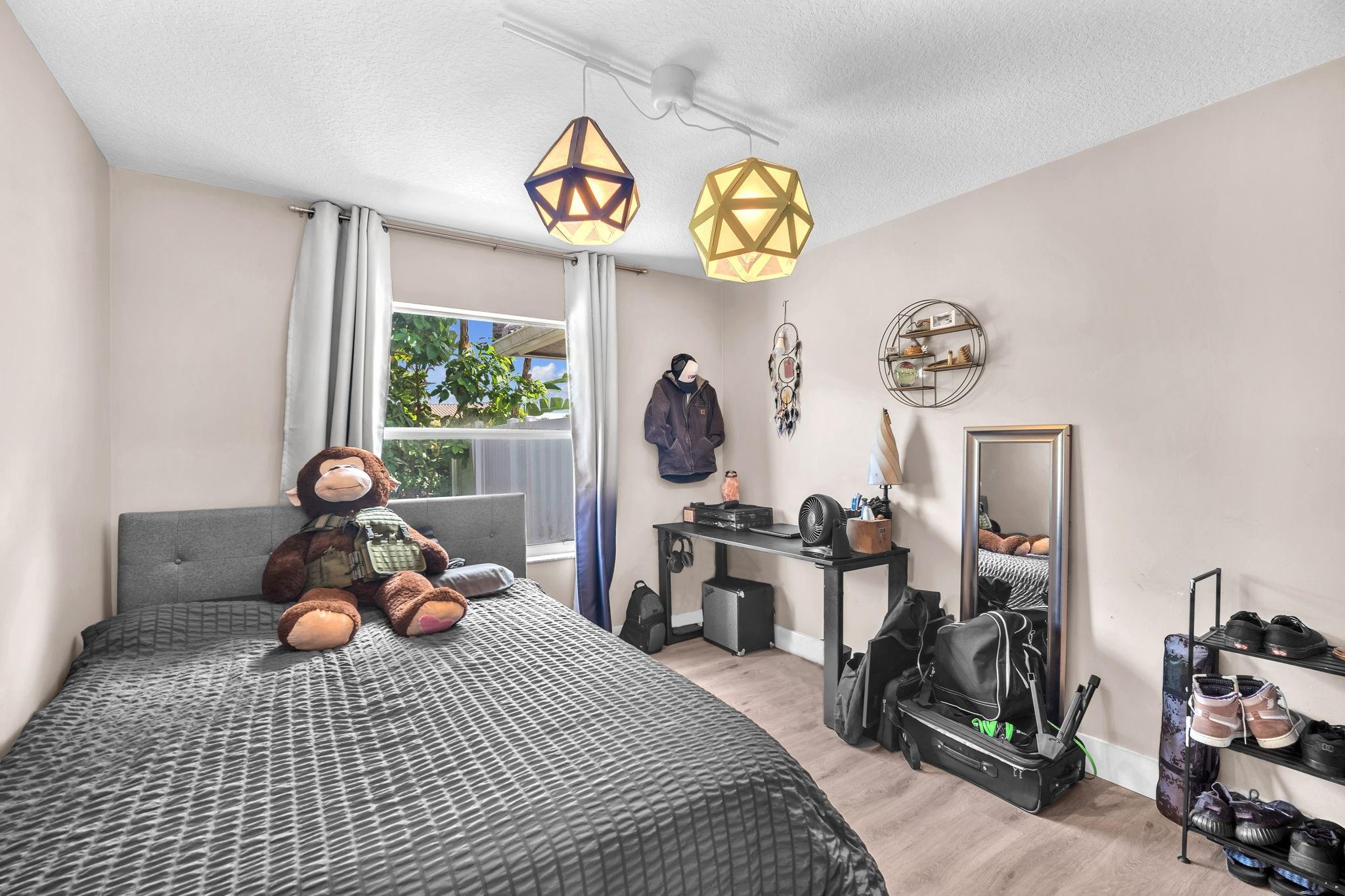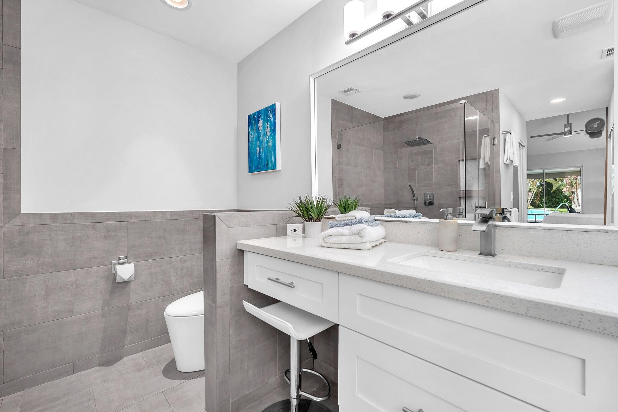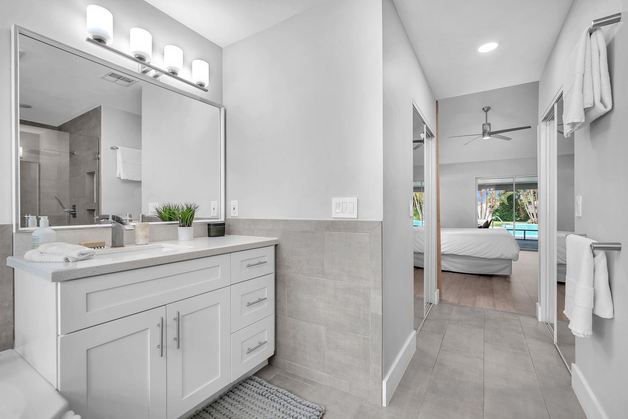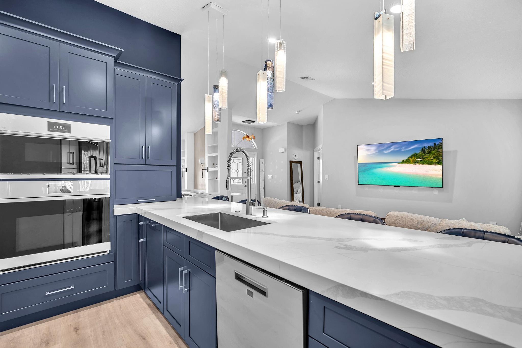 Welcome to this stunning fully renovated 4/3 home on a spacious .43-acre corner lot. Featuring 2 primary en-suites, pool, chef’s kitchen & 3 car garage! The chef’s dream kitchen boasts wood cabinetry, quartz countertops, GE Café appliances, abundant storage & under cabinet lights! All 3 bathrooms have been tastefully renovated, w/quartz countertops. Laminate flooring runs throughout except in bathrooms. Enjoy outdoor living w/fully fenced pie-shaped lot, pool, & screened, covered patio—perfect for entertaining. The 3-car garage offers A/C venting & epoxy floor, plus a circular driveway provides ample parking. Roof (2021), A/C (2021), tankless water heater (2020), hurricane panels, & generator hook-up. Not included in sale:3 pendant lights, entry fixture, window treatments & wine fridge