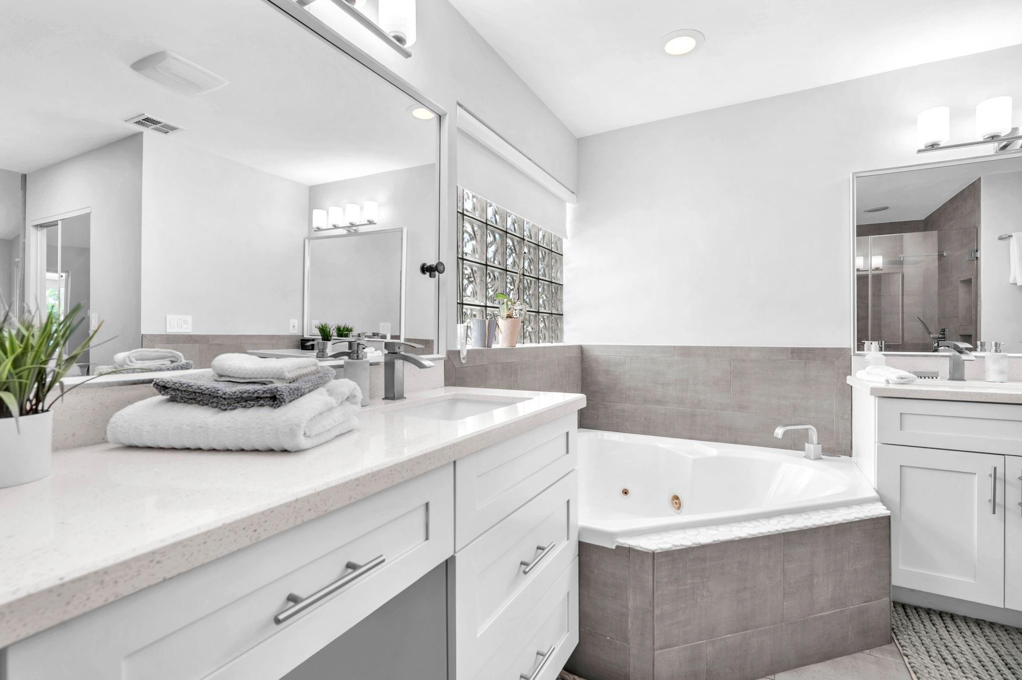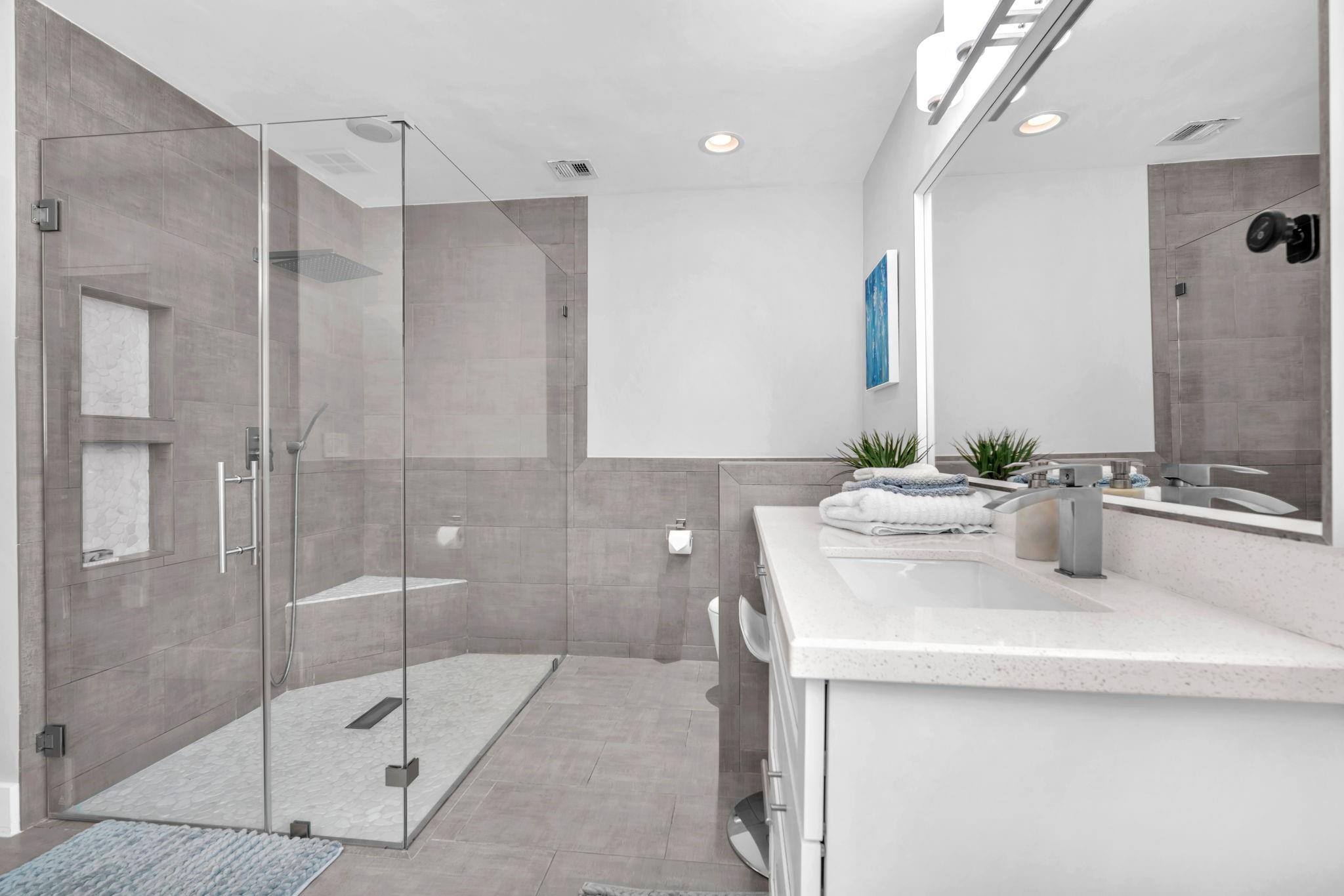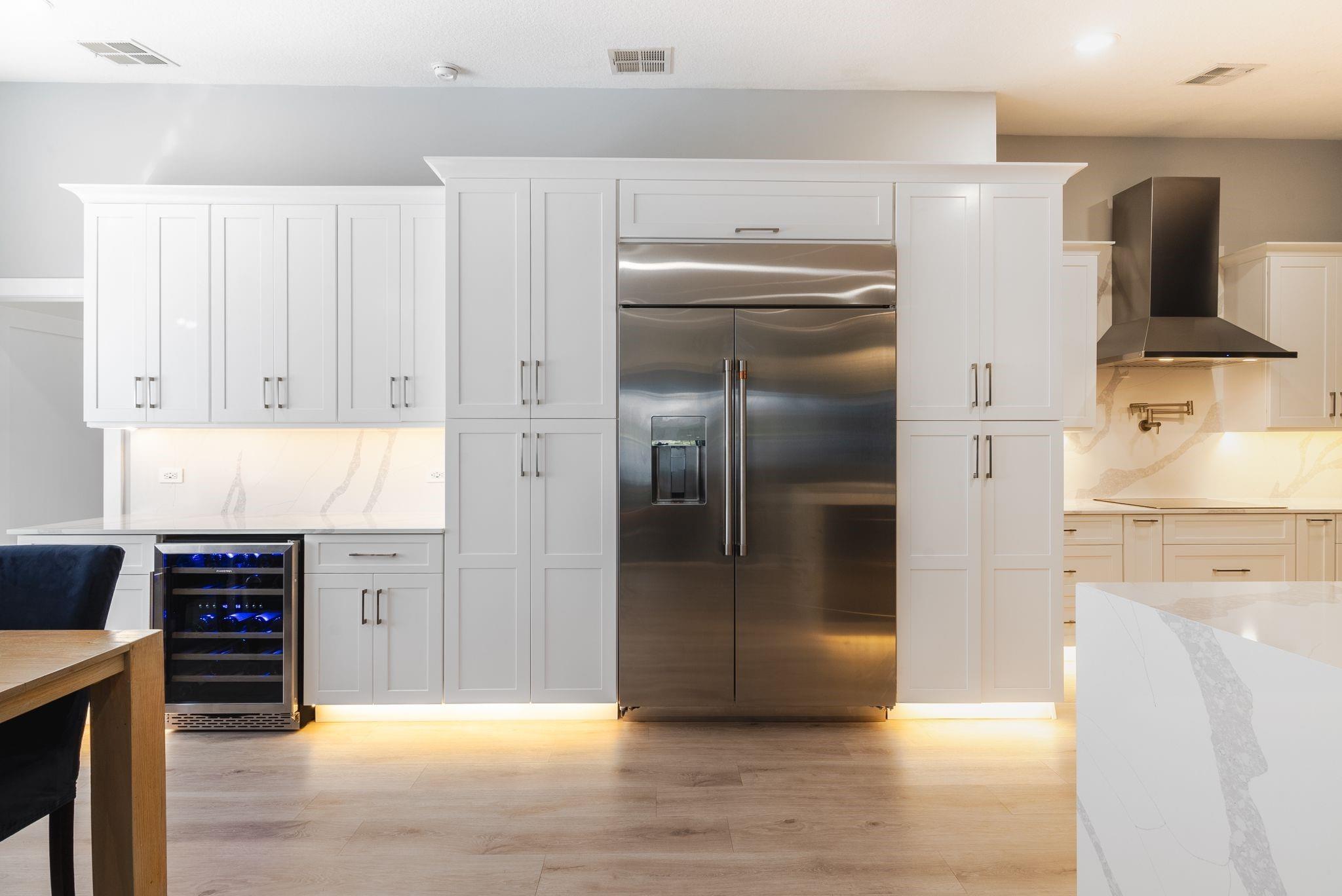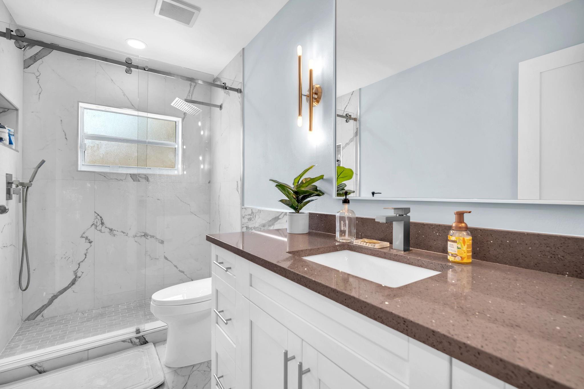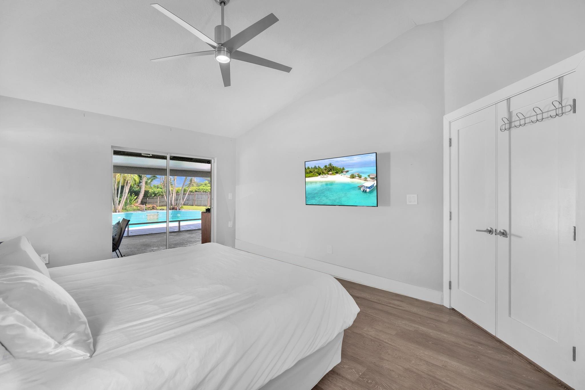 Welcome to this stunning fully renovated 4/3 home on a spacious .43-acre corner lot. Featuring 2 primary en-suites, pool, chef’s kitchen & 3 car garage! The chef’s dream kitchen boasts wood cabinetry, quartz countertops, GE Café appliances, abundant storage & under cabinet lights! All 3 bathrooms have been tastefully renovated, w/quartz countertops. Laminate flooring runs throughout except in bathrooms. Enjoy outdoor living w/fully fenced pie-shaped lot, pool, & screened, covered patio—perfect for entertaining. The 3-car garage offers A/C venting & epoxy floor, plus a circular driveway provides ample parking. Roof (2021), A/C (2021), tankless water heater (2020), hurricane panels, & generator hook-up. Not included in sale:3 pendant lights, entry fixture, window treatments & wine fridge