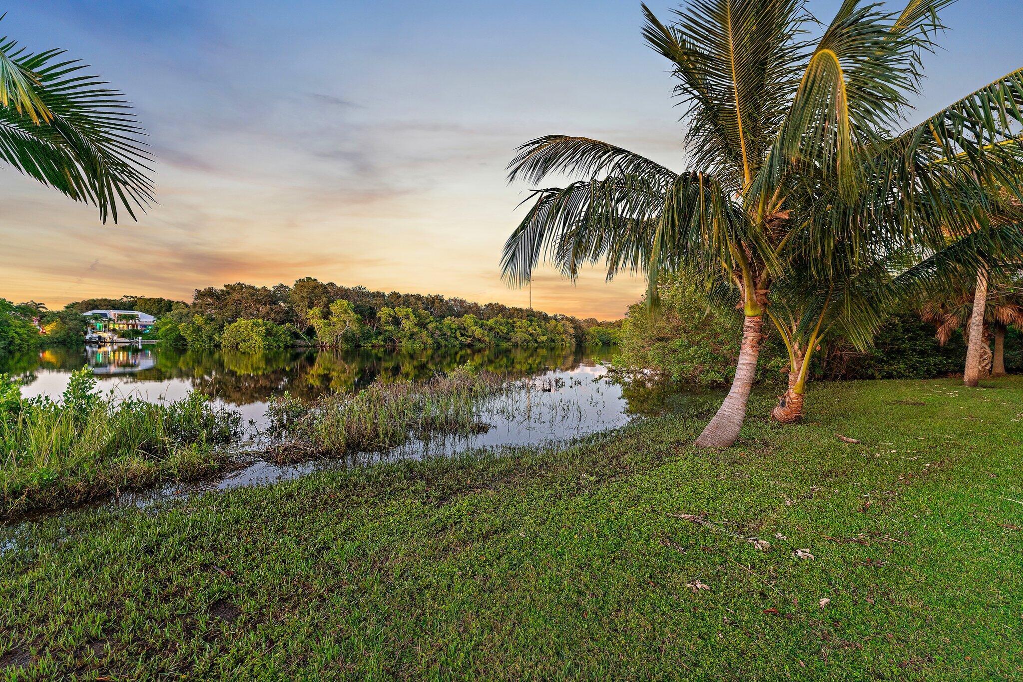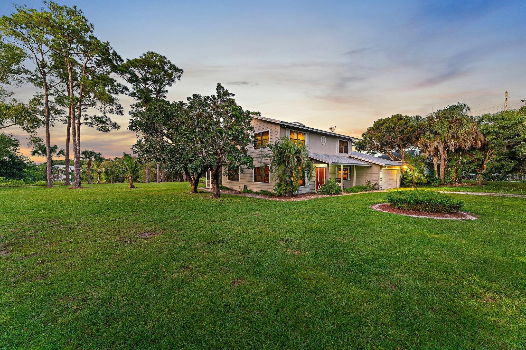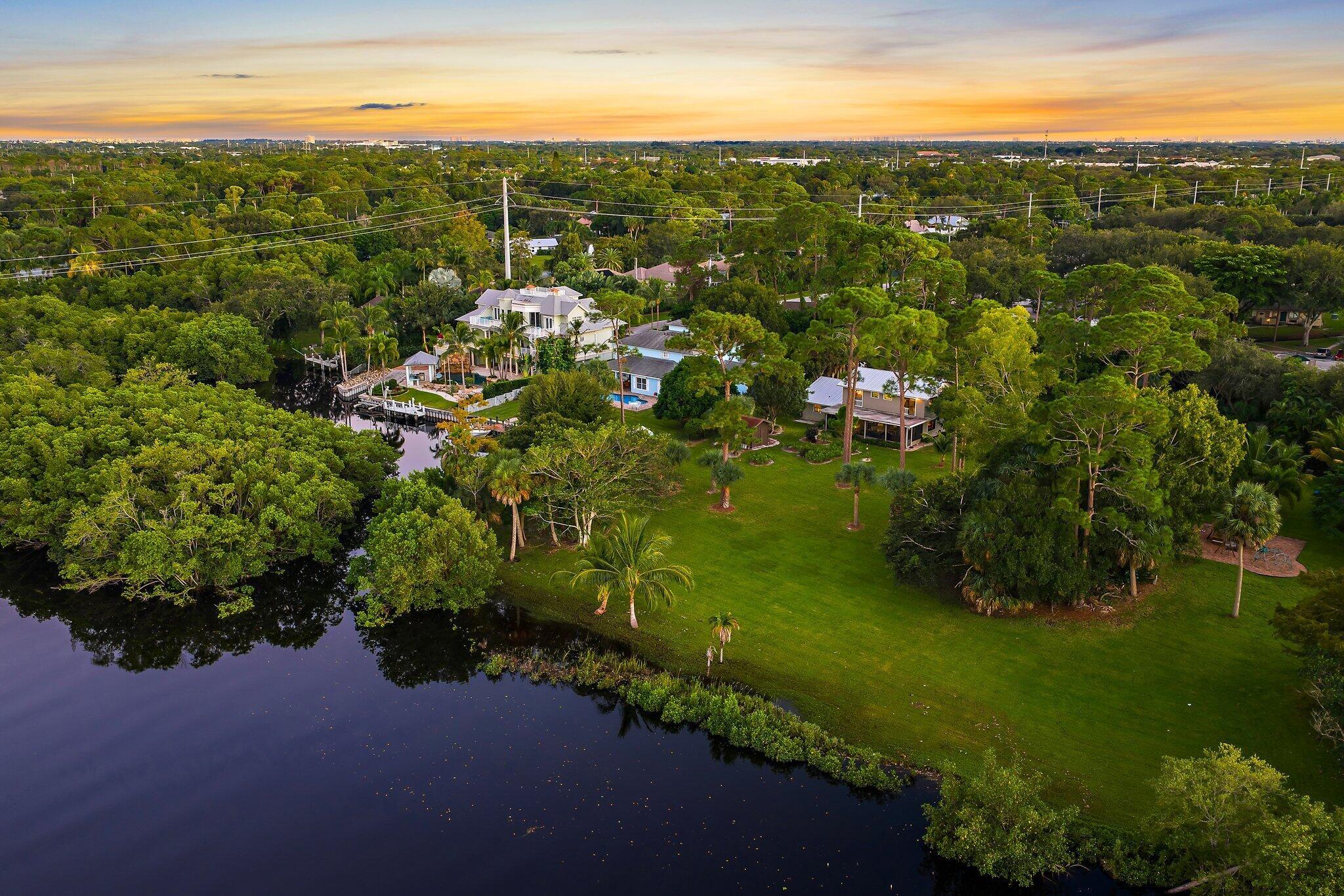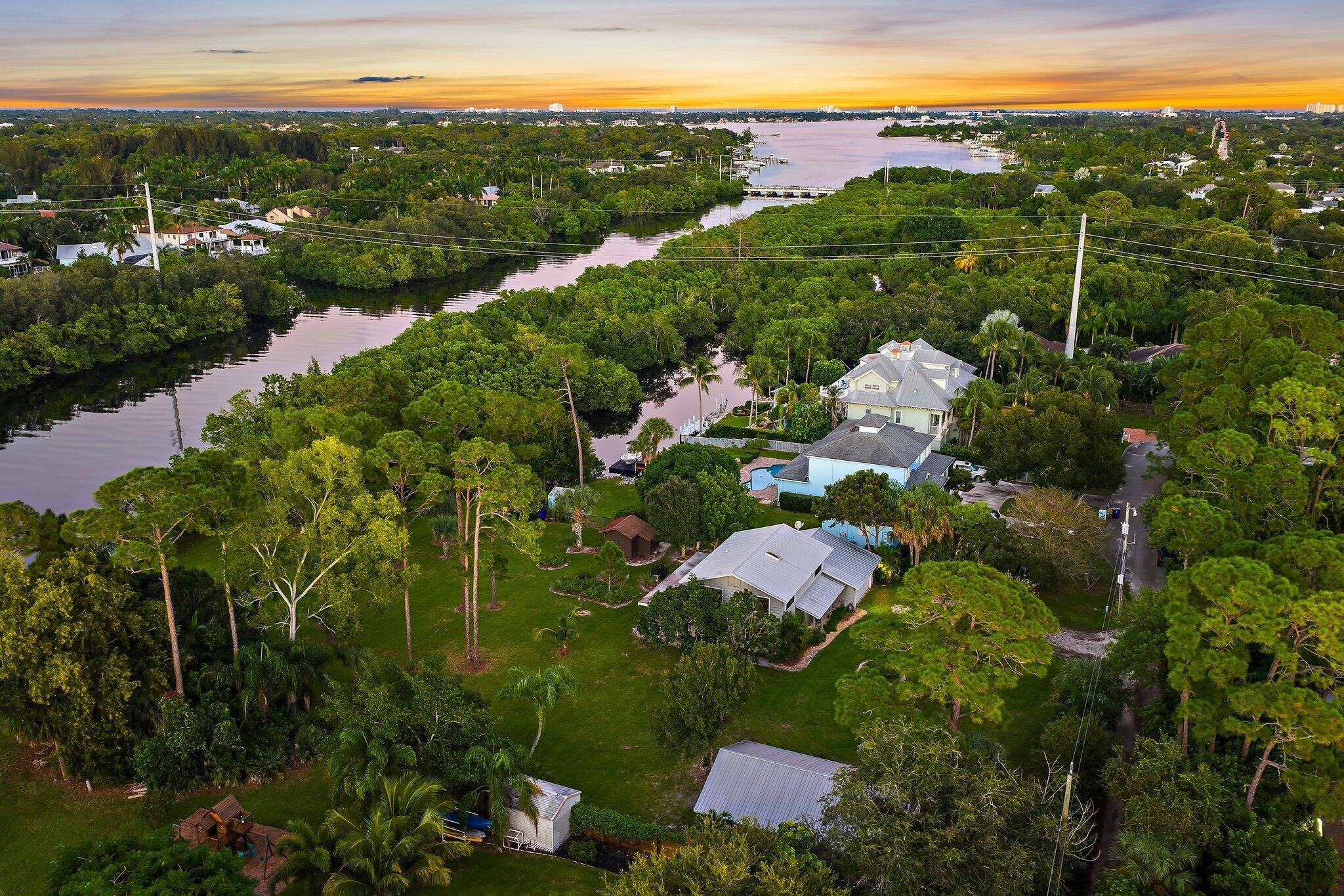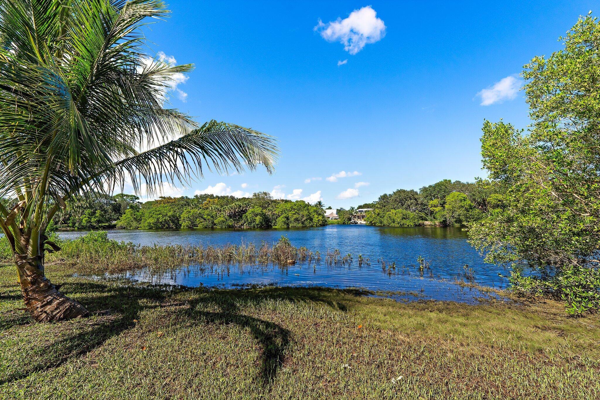 Tucked away on one of Jupiter’s most private, little-known streets, this half-acre waterfront property captures the quiet beauty of Old Florida. The lot spans approximately 150 by 150 feet, surrounded by nature and calm water views that feel worlds away, yet you’re in town, only minutes from I-95, beaches, and everything Jupiter has to offer.The existing two-story, three-bedroom plus den home offers solid bones, a comfortable layout, and a large screened-in patio overlooking the expansive backyard and water. A detached garage provides extra storage or workspace, and with no HOA, there’s plenty of room for your boat, RV, or future additions.From your backyard, you can build your own dock and head out for a ten-minute ride to the Jupiter Sandbar or fifteen minutes to the inlet.
