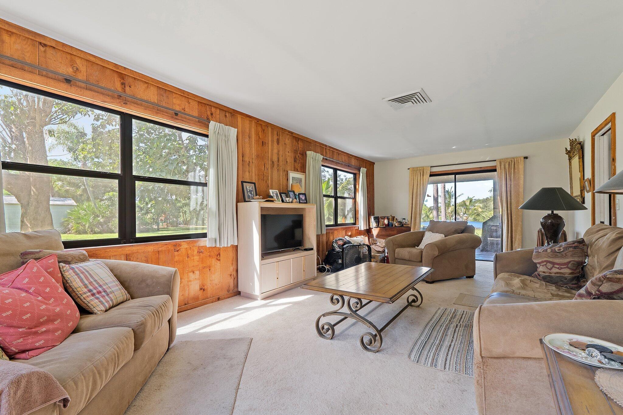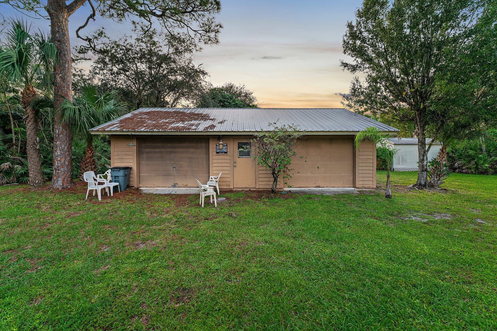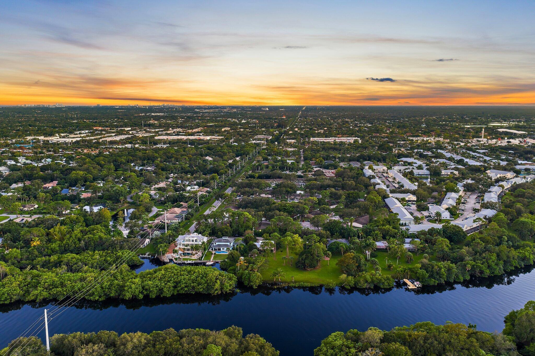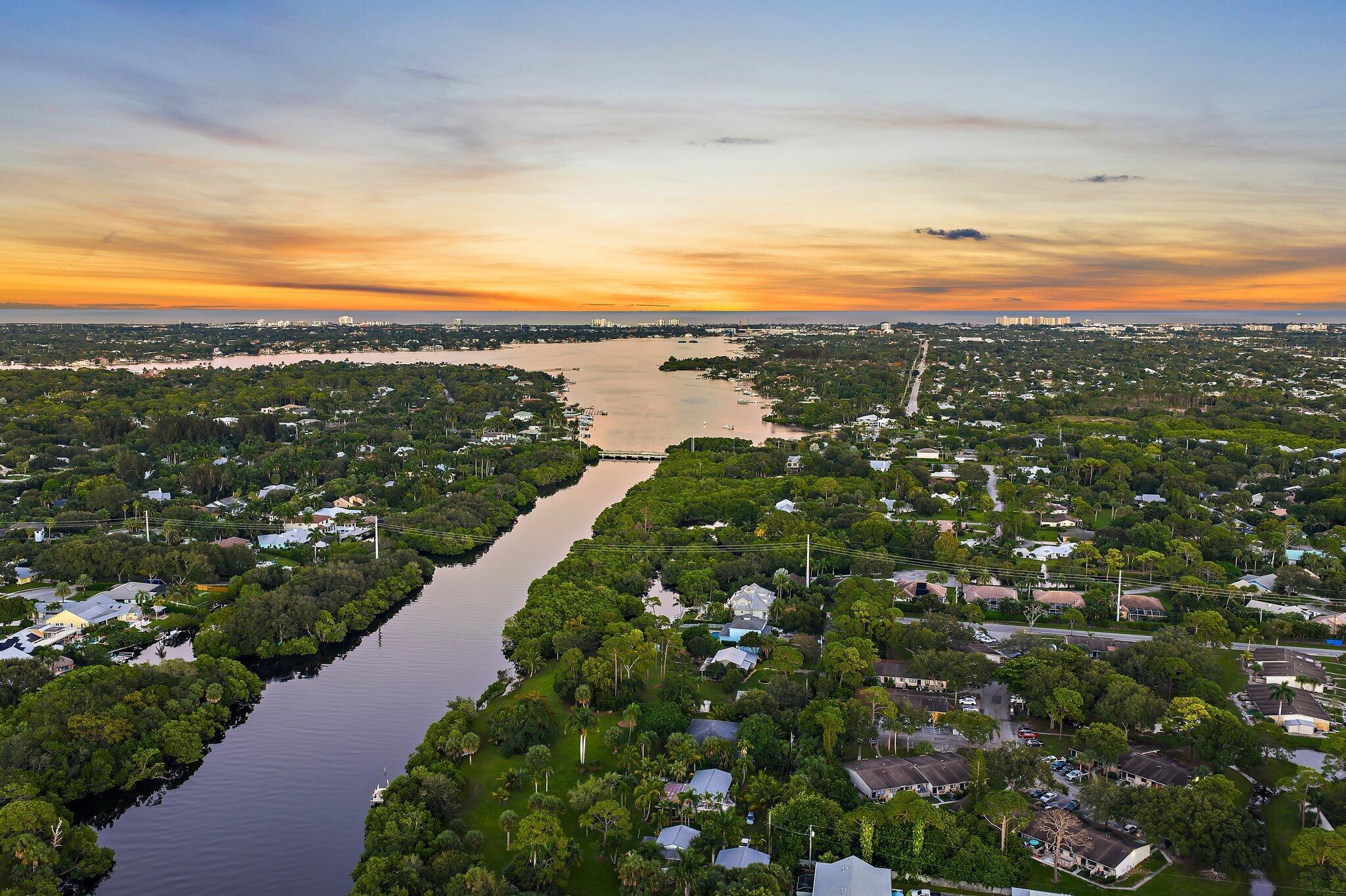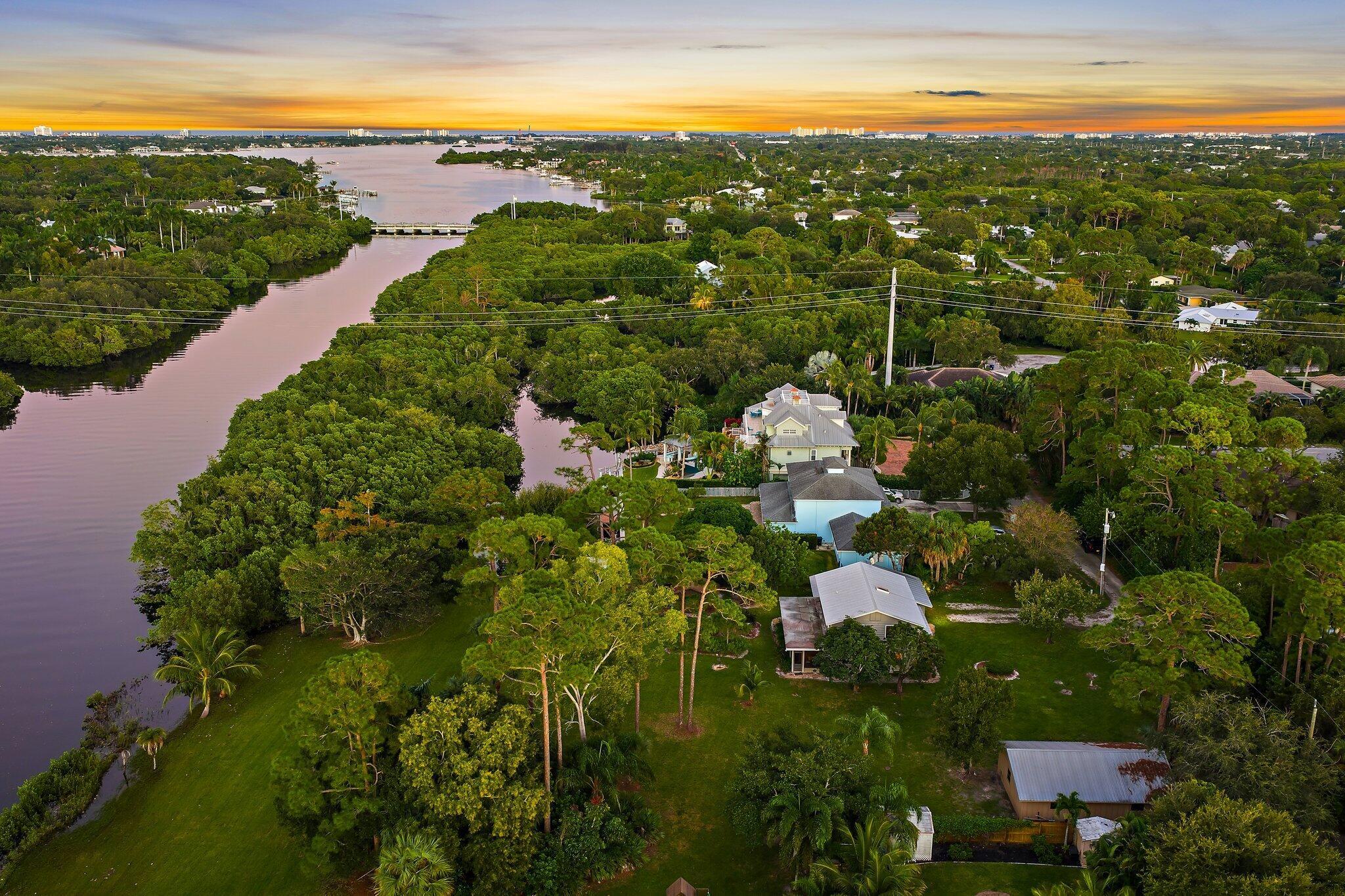 Tucked away on one of Jupiter’s most private, little-known streets, this half-acre waterfront property captures the quiet beauty of Old Florida. The lot spans approximately 150 by 150 feet, surrounded by nature and calm water views that feel worlds away, yet you’re in town, only minutes from I-95, beaches, and everything Jupiter has to offer.The existing two-story, three-bedroom plus den home offers solid bones, a comfortable layout, and a large screened-in patio overlooking the expansive backyard and water. A detached garage provides extra storage or workspace, and with no HOA, there’s plenty of room for your boat, RV, or future additions.From your backyard, you can build your own dock and head out for a ten-minute ride to the Jupiter Sandbar or fifteen minutes to the inlet.