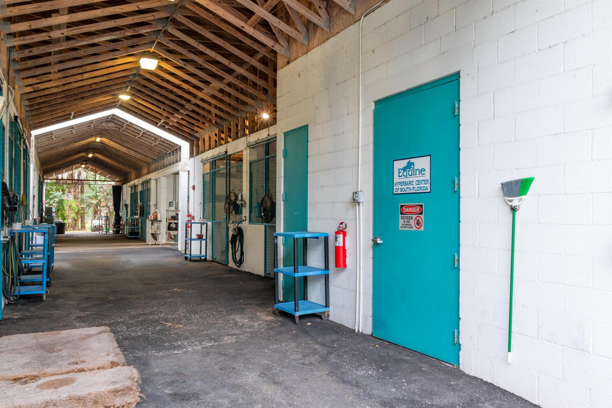 Equine Clinic situated on 5 acers of land in beautiful Loxahatchee Florida. This facility contains a full service clinic with a surgery room, two recovery rooms, lab/prep, offices, waiting area and restrooms. Upstairs are additional offices, sleeping area and storage. In addition to the main structure, there is a detached stable with a total of 11 stalls, air conditioned medical/supply room, feed room, storage room and one bath one bedroom apartment. Attached to the west end of the stable is a hyperbaric chamber that can provides high concentrated oxygen therapy for injured horses. The main clinic BLDG contains 6,276 feet of enclosed area with 2,286 feet of roofed porch and carport parking areas. The detached stable is 5,771 square feet and has a roofed porch with a grooming & wash area.