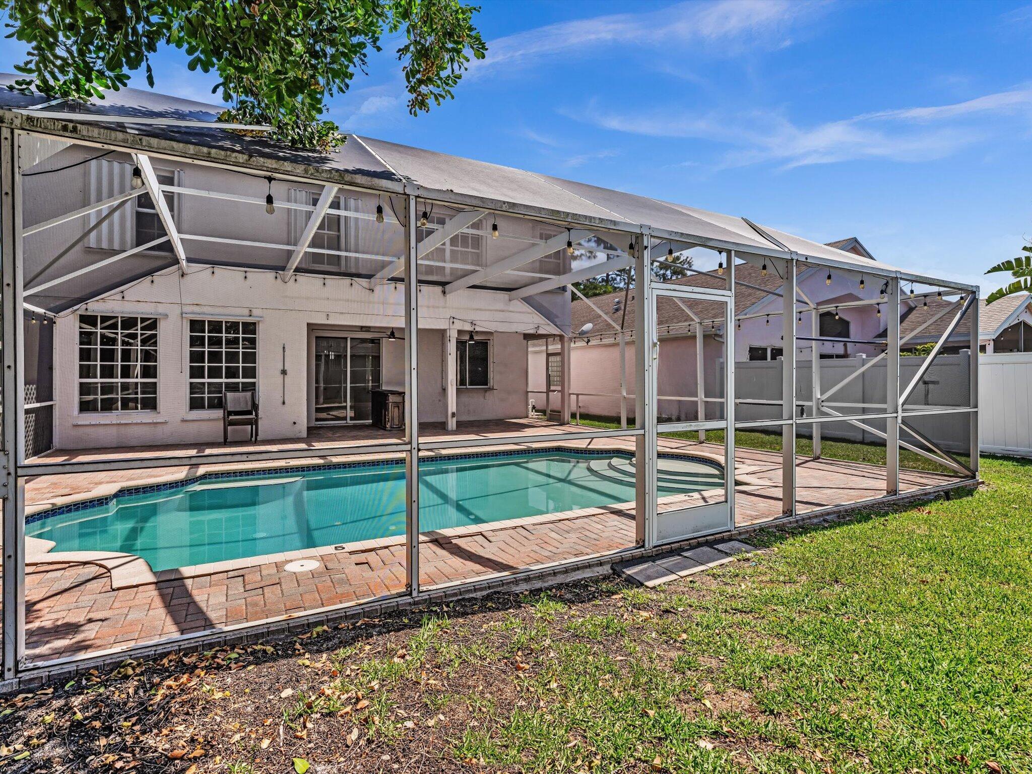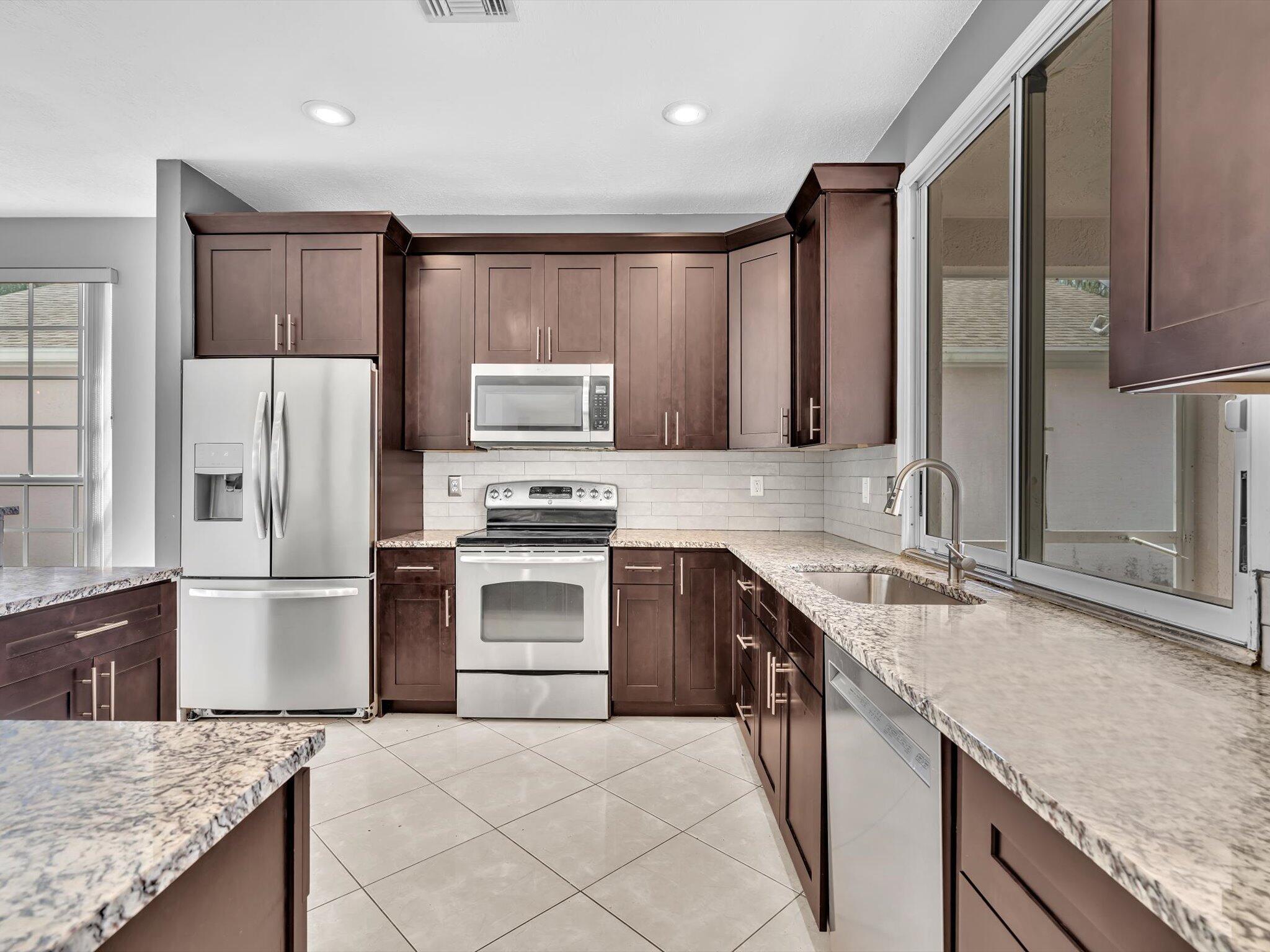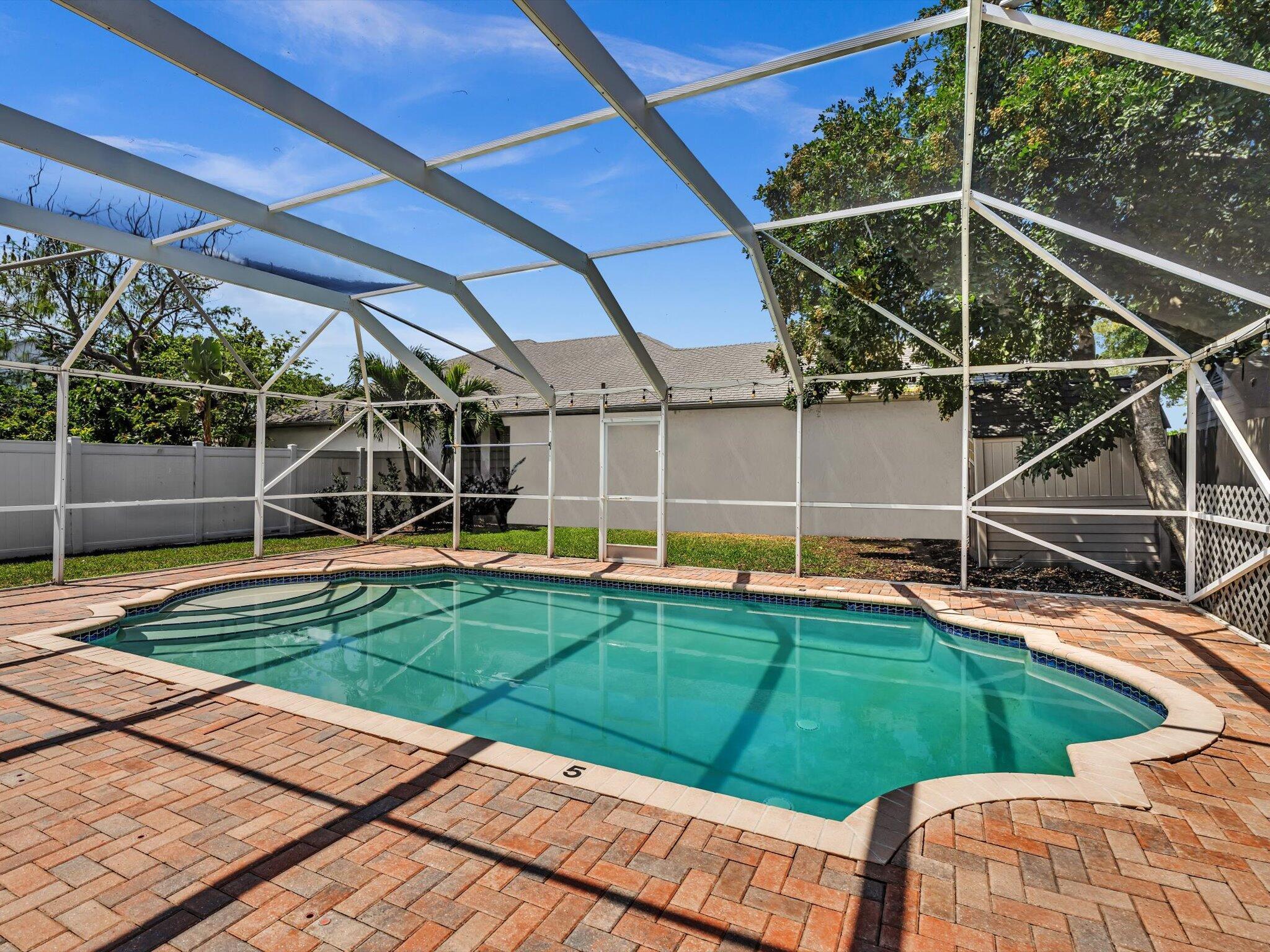 Beautifully updated pool home located in the perfect Wellington location! This home has high ceilings and ample windows, allowing the natural sunlight to flood the interior. The home has custom laminate and tile floors, adding a beautiful contemporary feel. The gourmet chef’s kitchen is a highlight with high end Stainless Steel appliances, a large granite counter and breakfast bar and even a window! The large master suite has 2 walk- in closets, plus a soaking tub and granite counters in the en suite bath. Enjoy the oversized heated pool with the extra large screen all year long. Very low HOA. Zoned for great schools.Don’t miss the opportunity to make it yours!