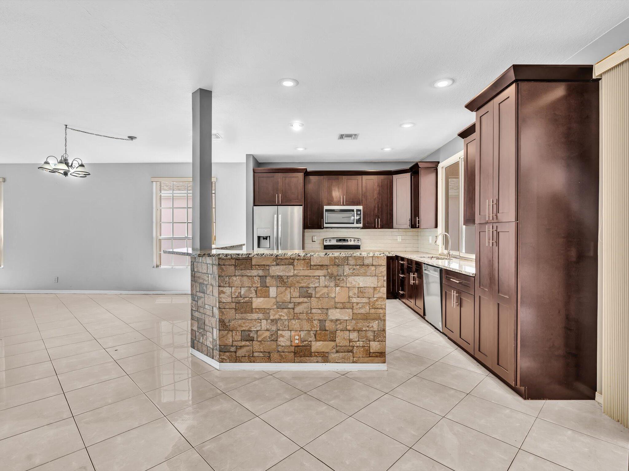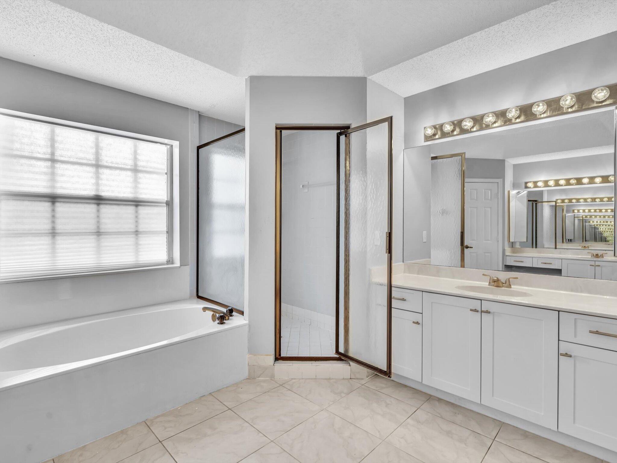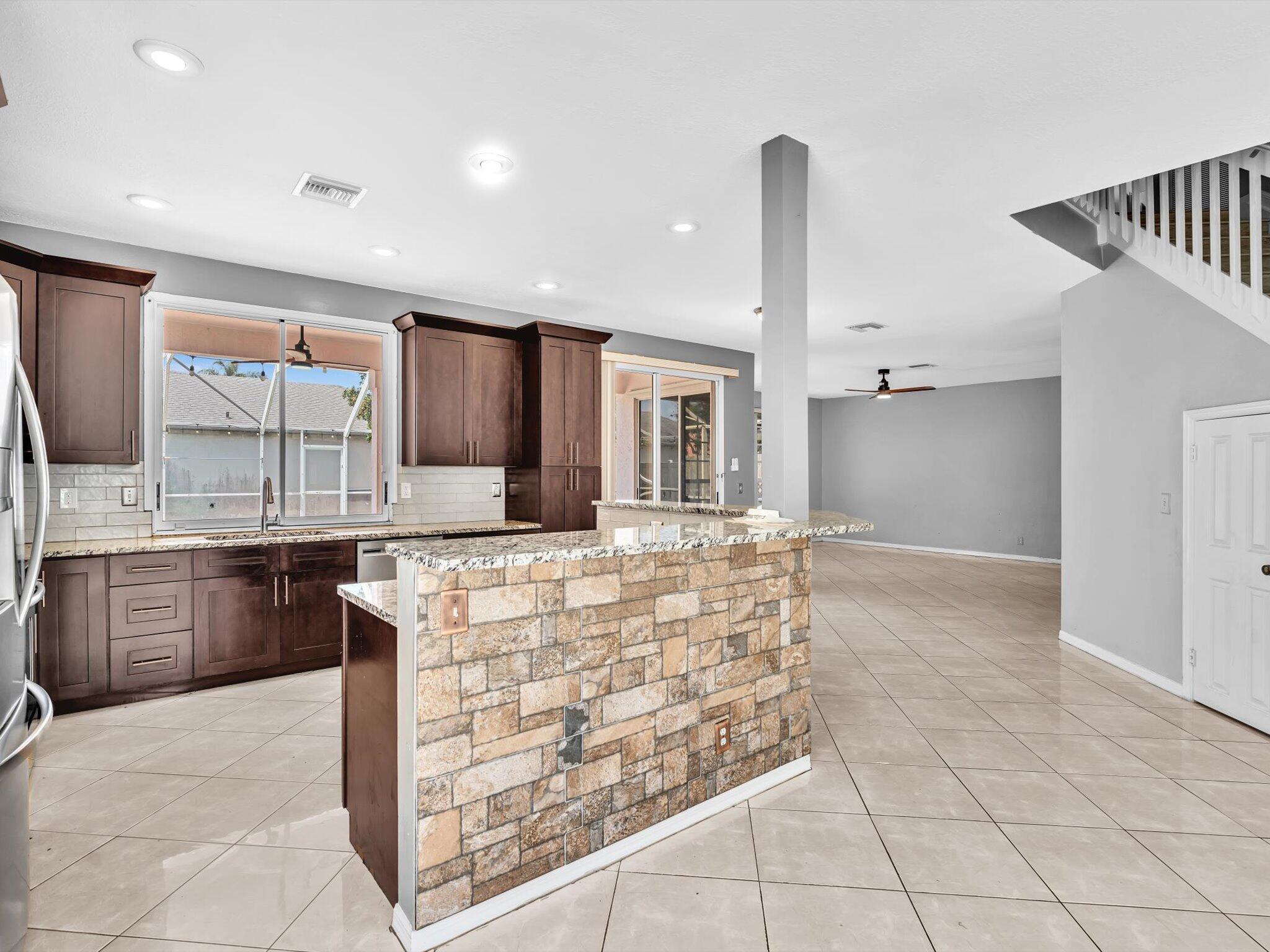 Beautifully updated pool home located in the perfect Wellington location! This home has high ceilings and ample windows, allowing the natural sunlight to flood the interior. The home has custom laminate and tile floors, adding a beautiful contemporary feel. The gourmet chef’s kitchen is a highlight with high end Stainless Steel appliances, a large granite counter and breakfast bar and even a window! The large master suite has 2 walk- in closets, plus a soaking tub and granite counters in the en suite bath. Enjoy the oversized heated pool with the extra large screen all year long. Very low HOA. Zoned for great schools.Don’t miss the opportunity to make it yours!