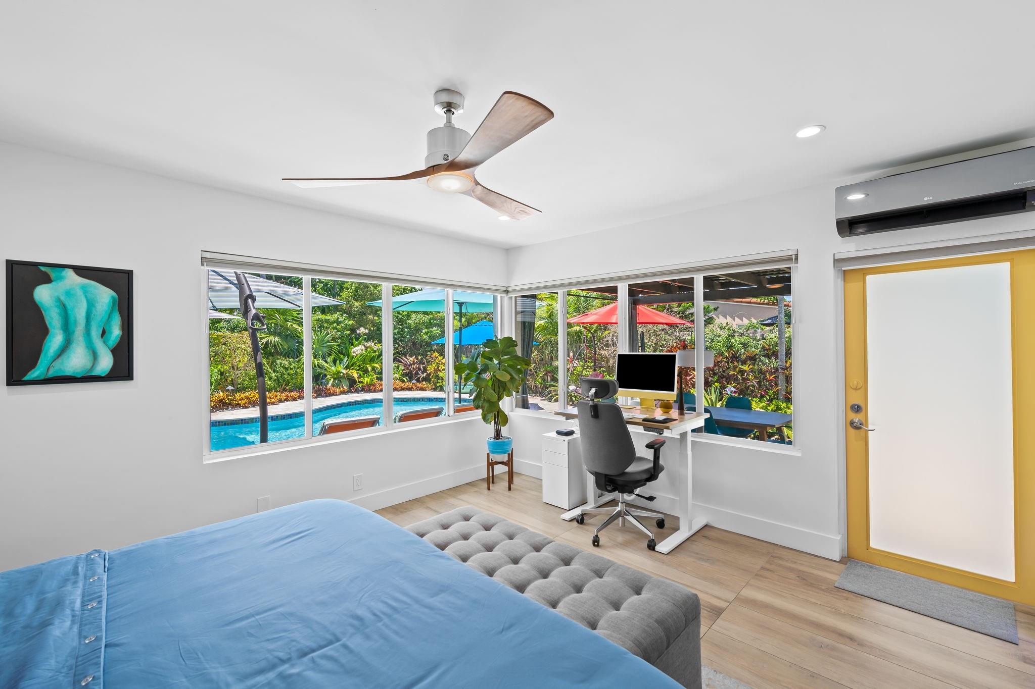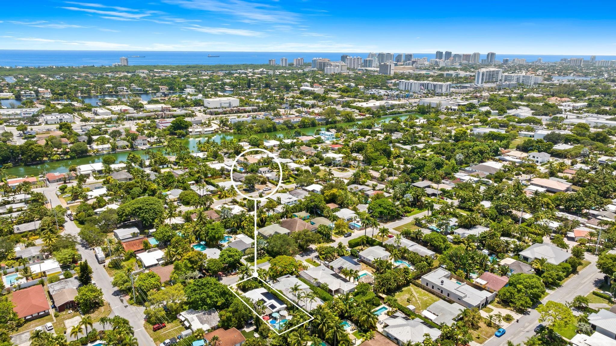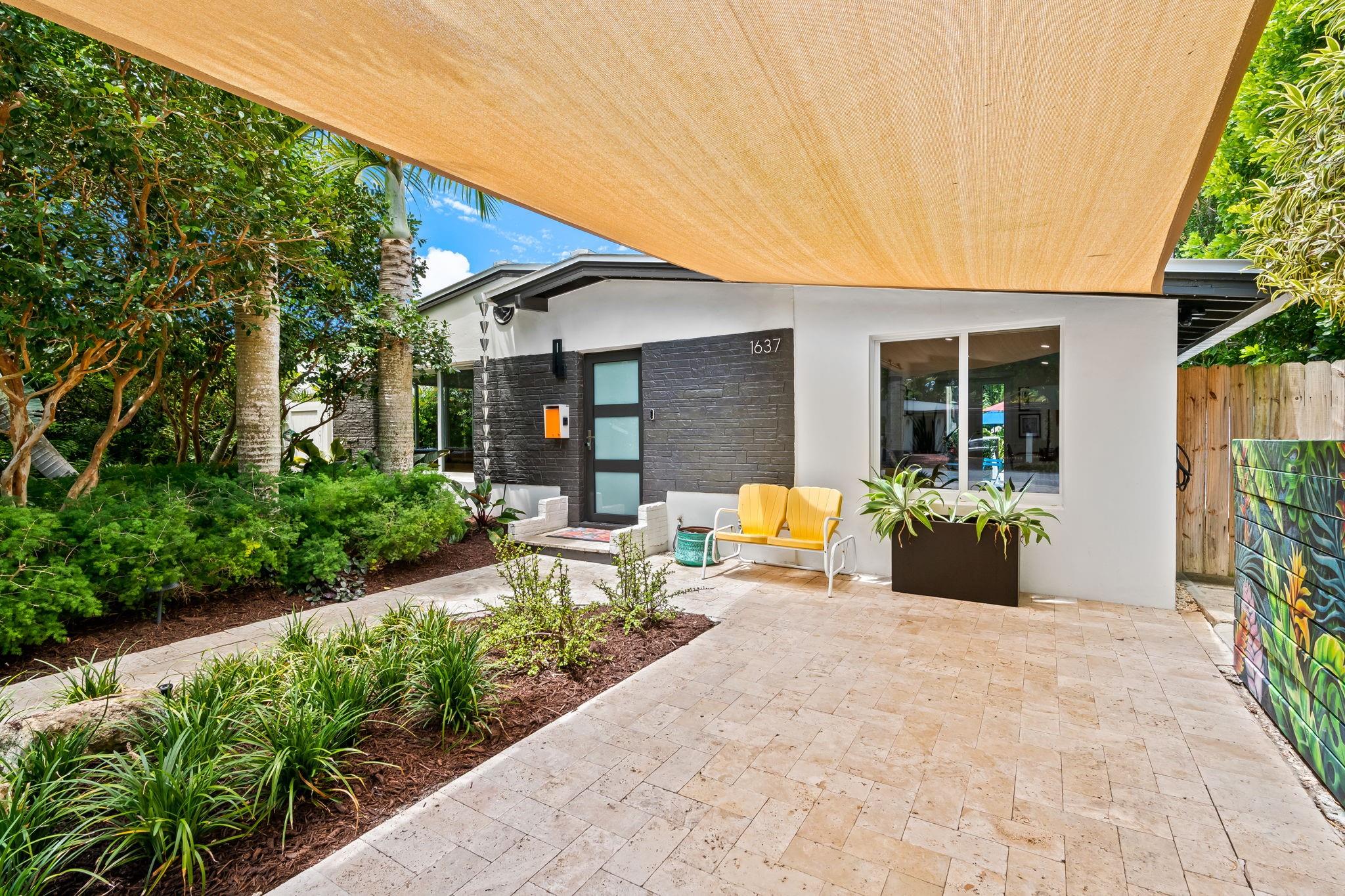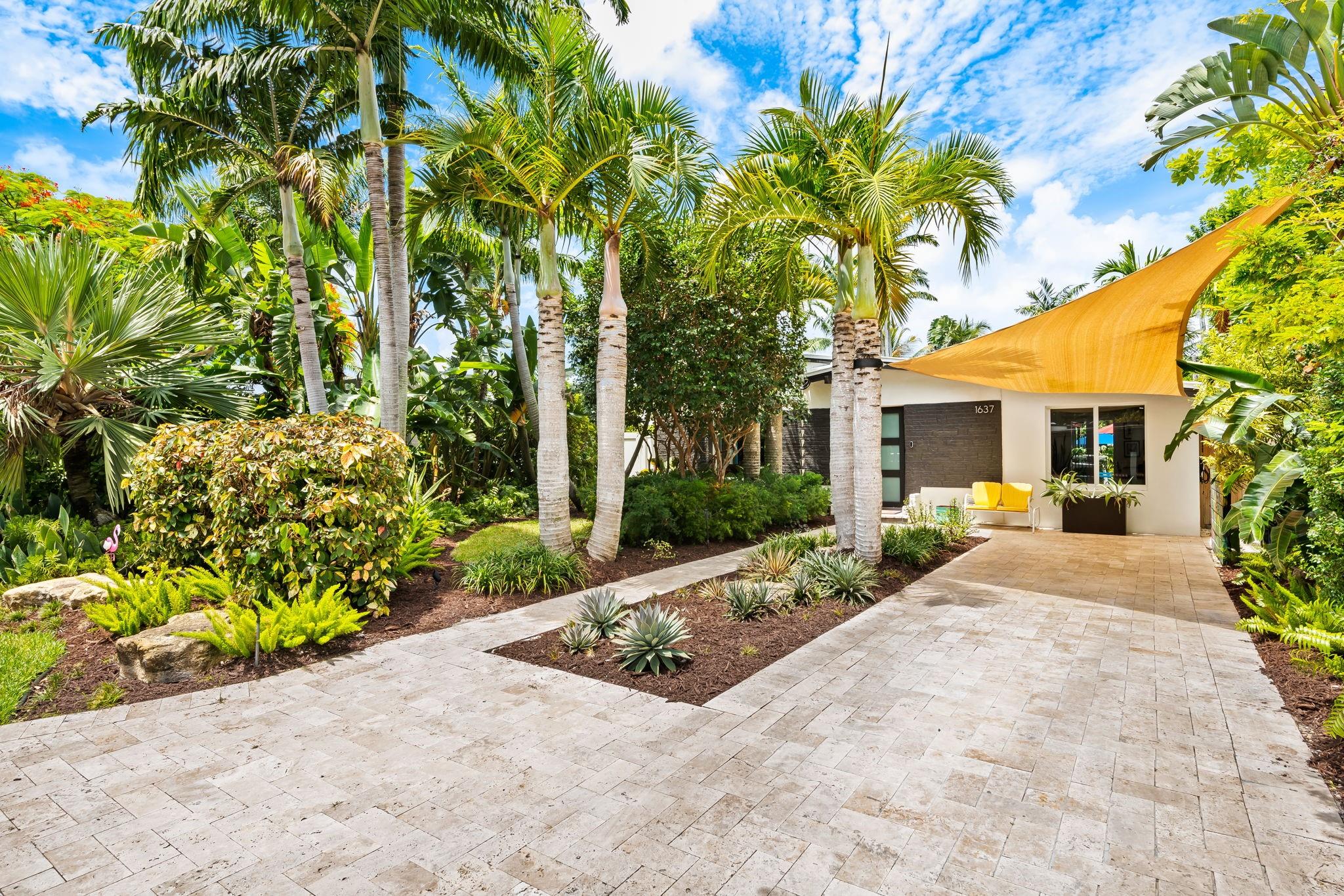 Thoughtfully curated modern retreat in the heart of Fort Lauderdale blends high design with relaxed S. Florida living. Inside, sleek wood-look tile floors, crisp white walls, and impact-rated windows flood the home with natural light. The open-concept kitchen is perfect for entertaining. The primary suite offers a walk-in closet, tranquil pool views, and direct pool access. Its spa-inspired ensuite includes a soaking tub, rain shower, and dual vanities. Outside, the backyard is a tropical paradise with a heated saltwater pool, metal-roofed pergola, and vibrant landscaping. The home is equipped with a premium metal roof, solar panels, and three A/C zones for efficient climate control. Located near Wilton Manors, downtown Fort Lauderdale, and the beach, this property blends style and comfort