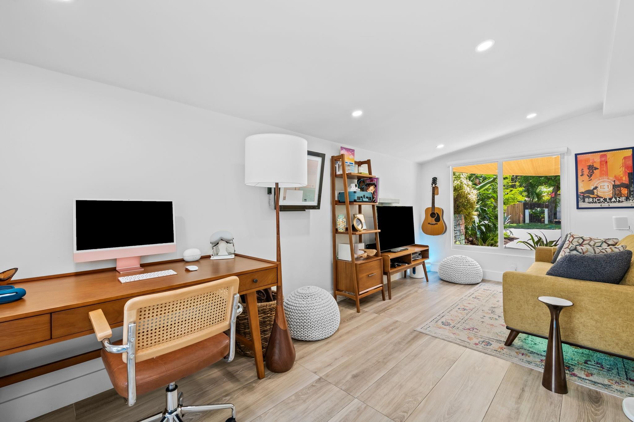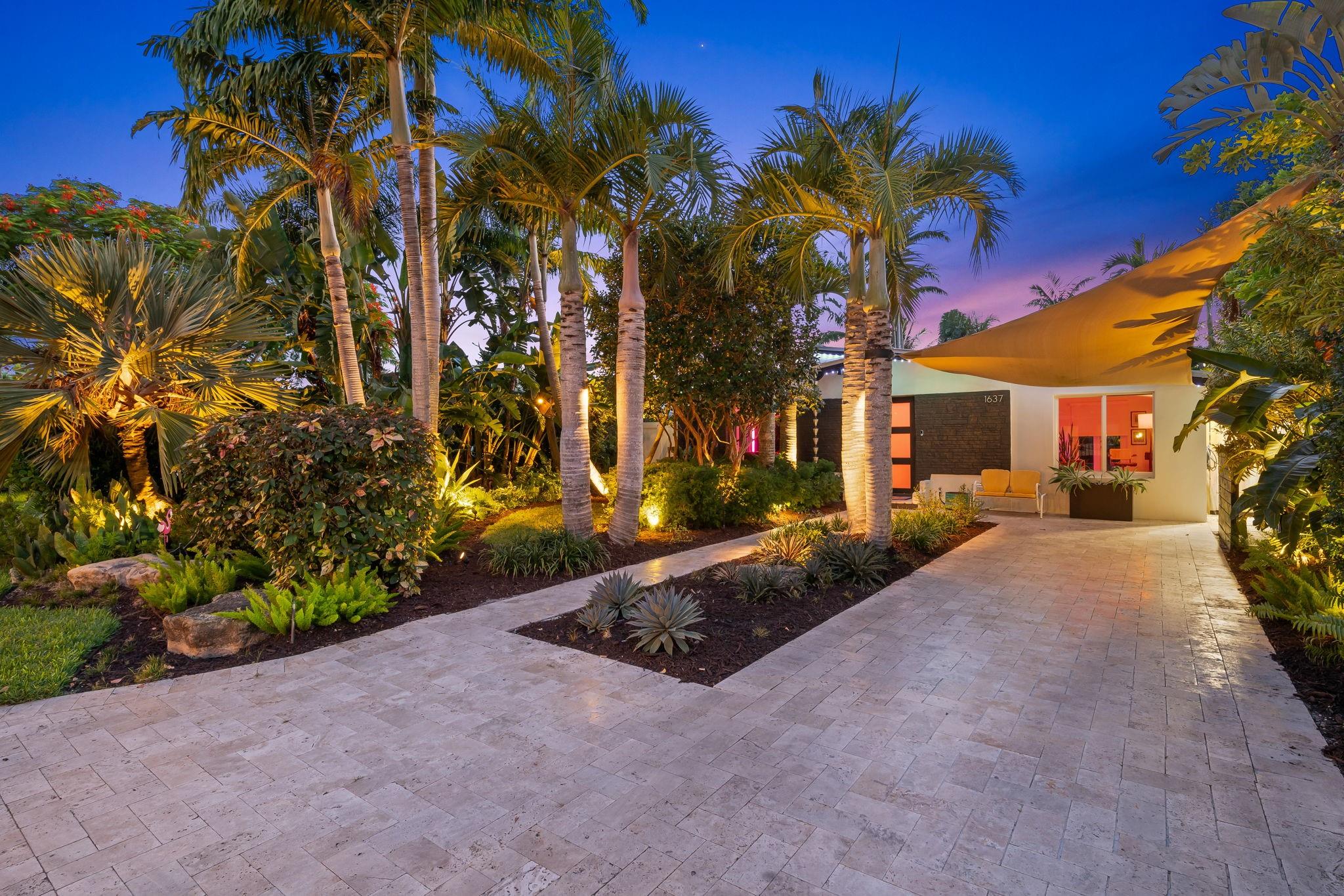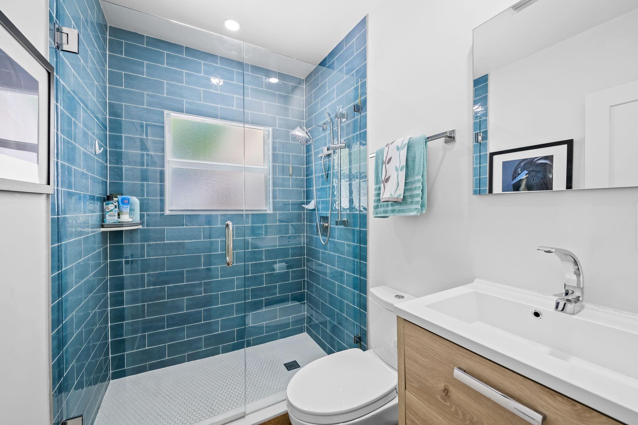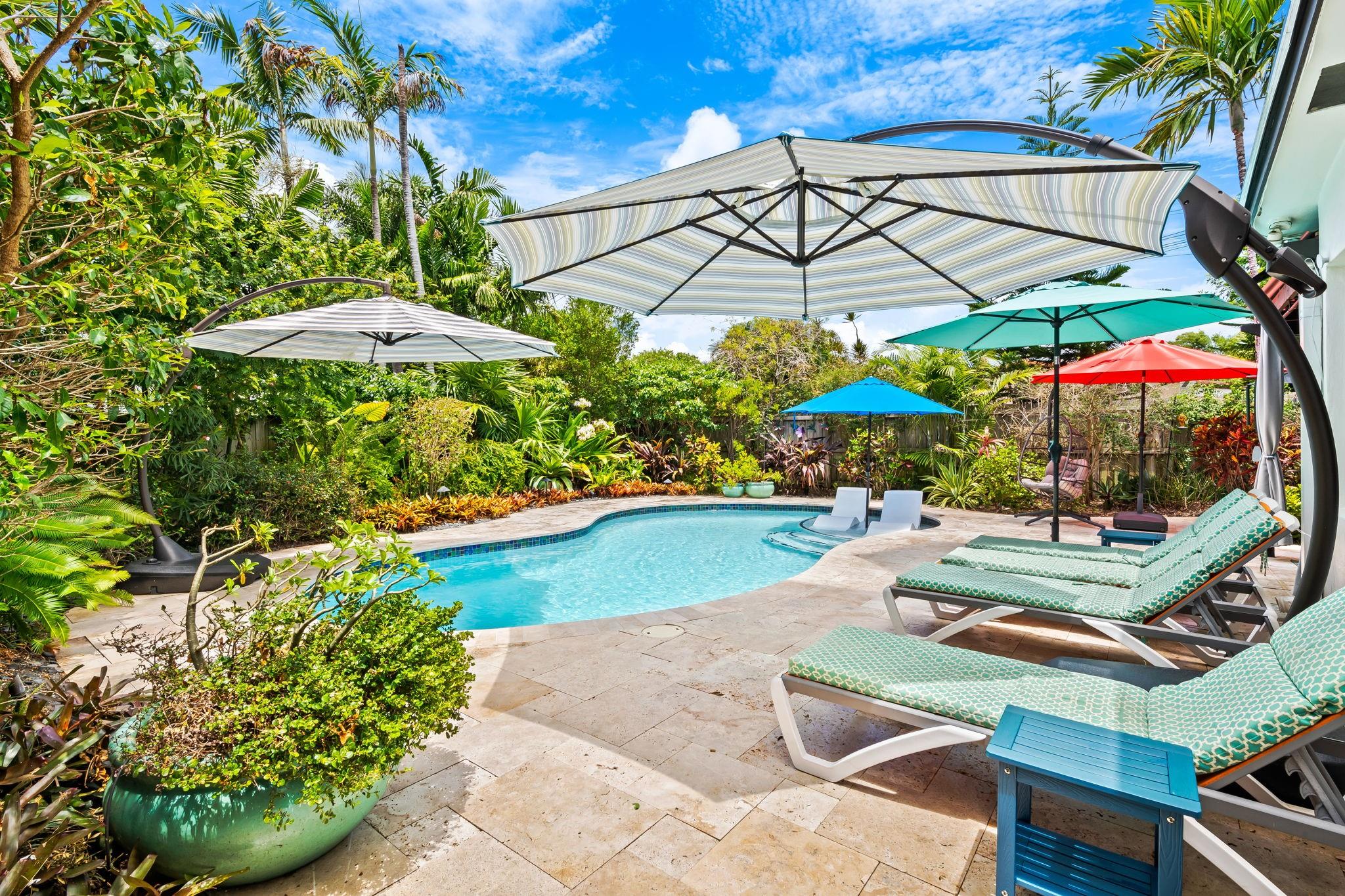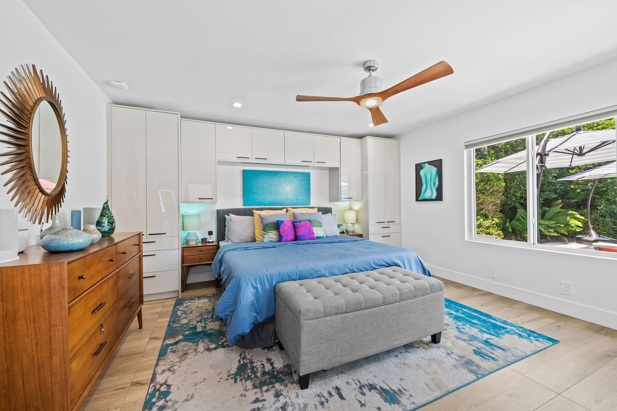 Thoughtfully curated modern retreat in the heart of Fort Lauderdale blends high design with relaxed S. Florida living. Inside, sleek wood-look tile floors, crisp white walls, and impact-rated windows flood the home with natural light. The open-concept kitchen is perfect for entertaining. The primary suite offers a walk-in closet, tranquil pool views, and direct pool access. Its spa-inspired ensuite includes a soaking tub, rain shower, and dual vanities. Outside, the backyard is a tropical paradise with a heated saltwater pool, metal-roofed pergola, and vibrant landscaping. The home is equipped with a premium metal roof, solar panels, and three A/C zones for efficient climate control. Located near Wilton Manors, downtown Fort Lauderdale, and the beach, this property blends style and comfort