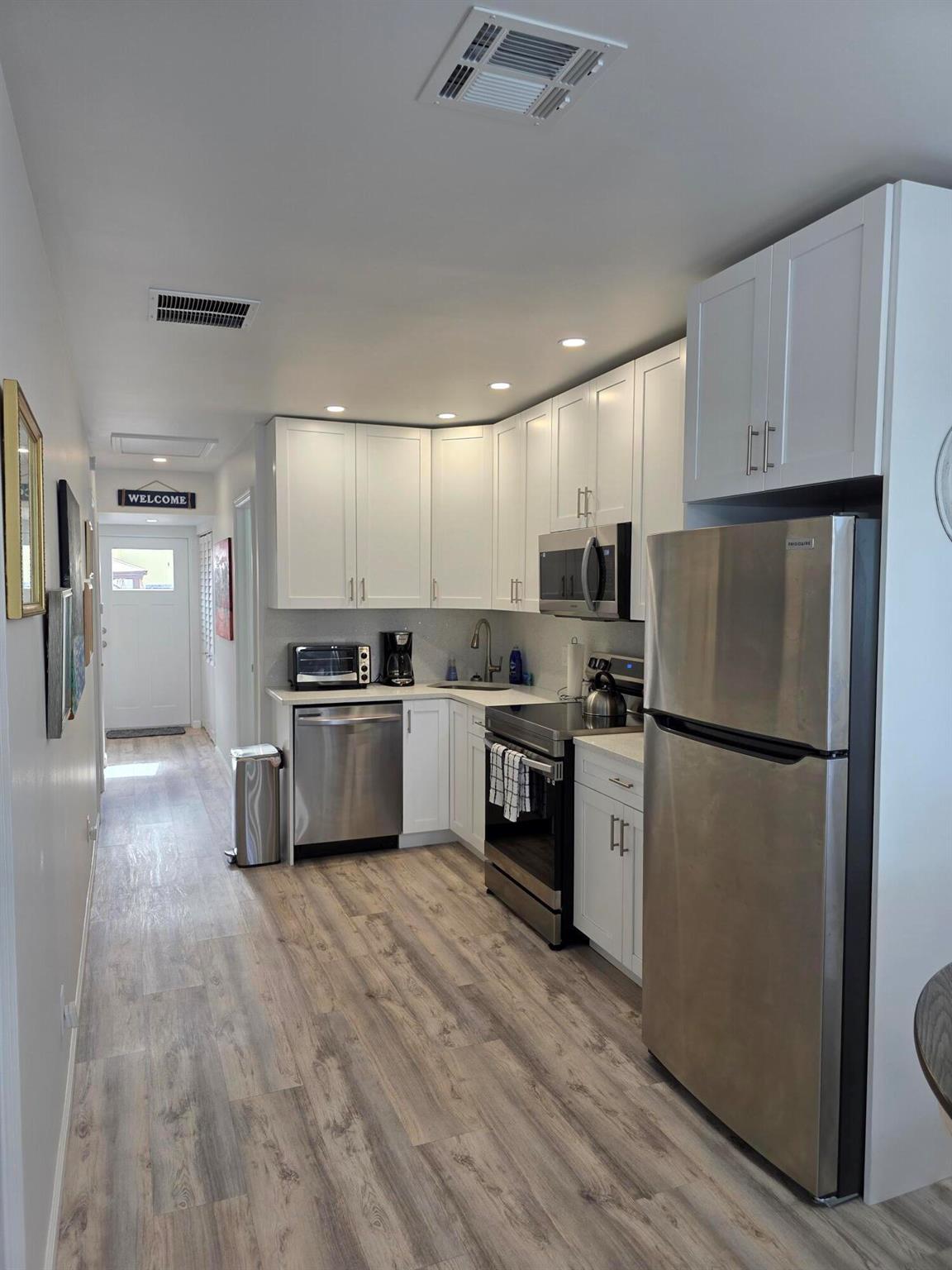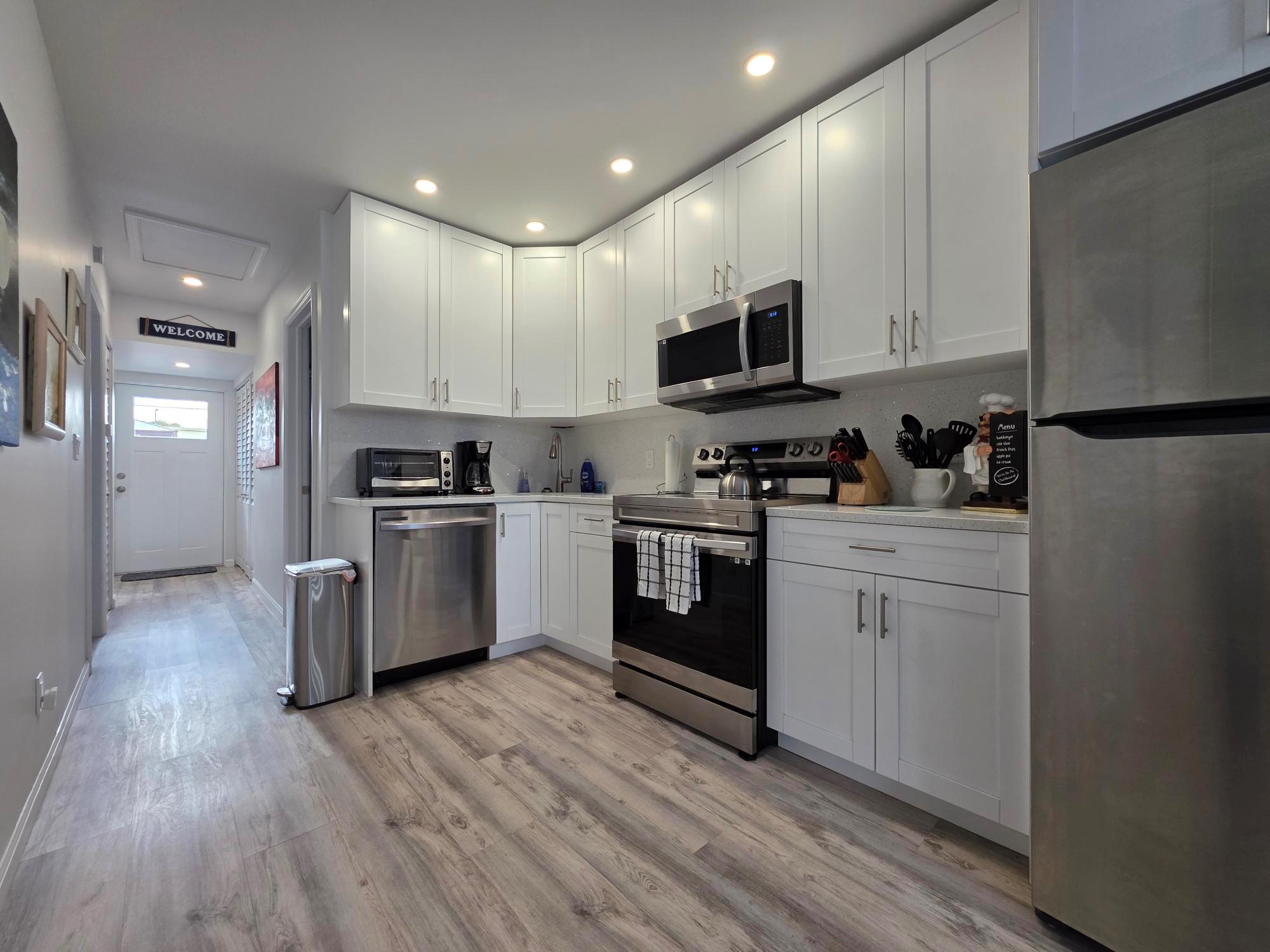 A charming 2 bedroom 1 bath Key West cottage beautifully situated, within walking distance, under 2 miles to our gorgeous sandy beaches, the iconic Bennys on the Beach, our oceafront Board Walk, the LW pier, park, amphitheater, 1/2 mile to the Municipal 18 hole championship golf course, easy access boat dock, 1926 Playhouse and very fine establishments for suds n culinary delights! From the minuite you walk into this home you feel the warmth and charm it exudes, full of light, ready for personal touches! This is truly a spot in heaven but thats not all! Outfitted with modern fixtures all newer appliances, water heater, impact windows and doors under pemits 2022, roof 2011. SOLID reno no expense spaired! Paver stone patio in the back fully fenced and ready for family barbq’s!