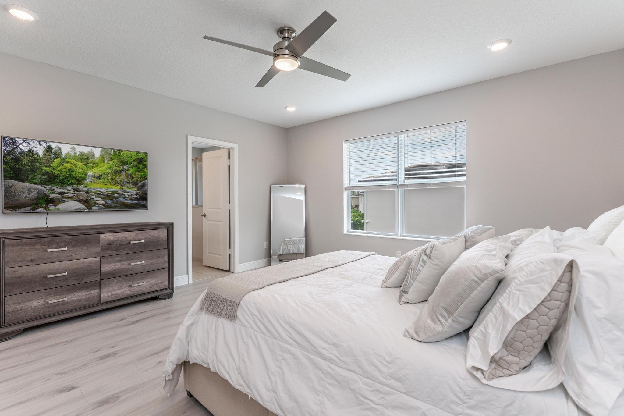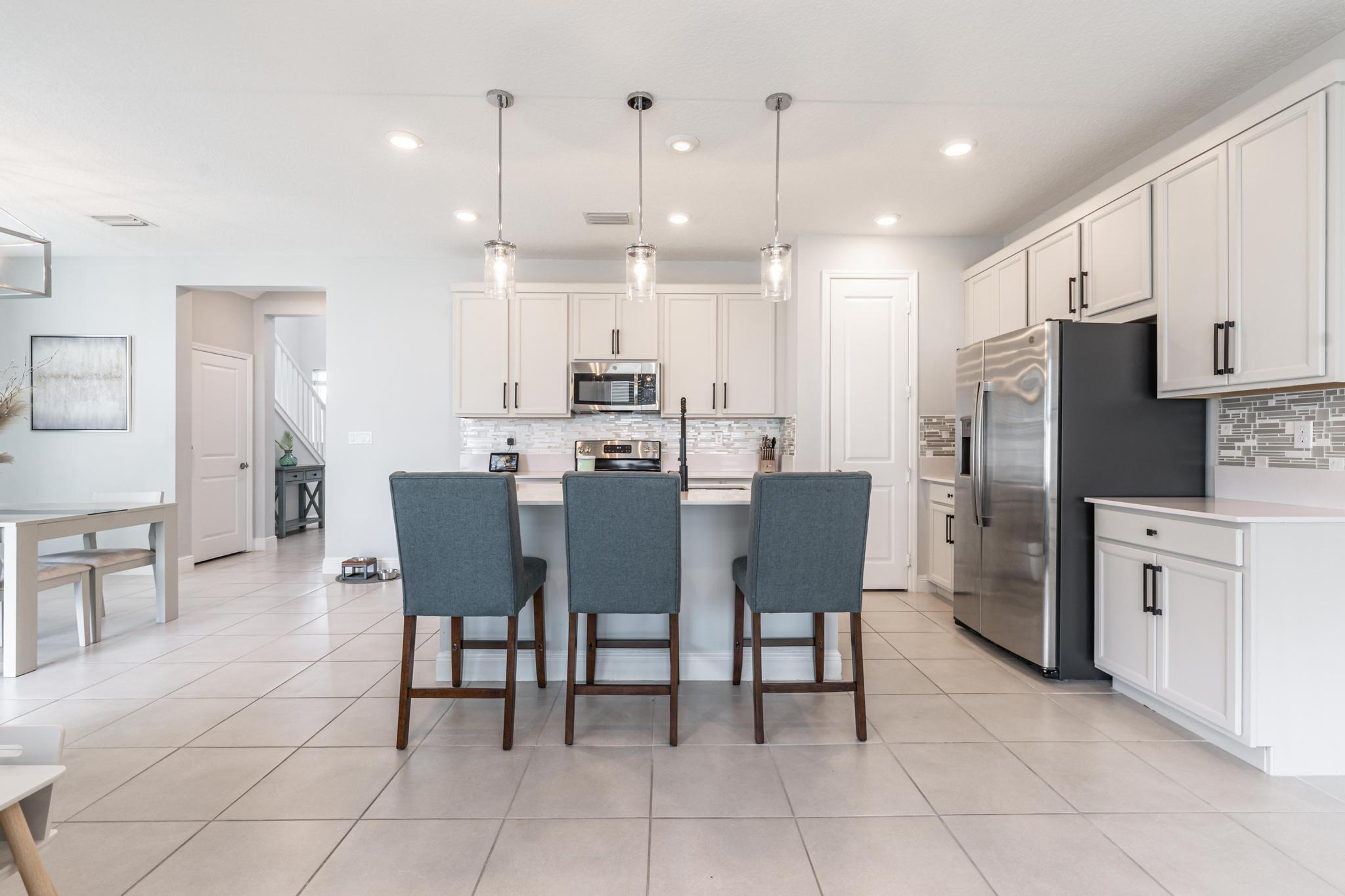 Seller Motivated – Concessions Towards Closing Costs, Prepaids & Mortgage Rate Buydown! Recent Construction in gated community: Distinctive Compasso model w/designer neutrals incl new lighting, paint, ceramic tile, LVP, quartz counters, wood cabinets, wall paneling. Lush entry opens to dramatic foyer w/19′ ceiling & showstopping staircase. 1st floor bonus rm perfect as office, den or guest rm; powder rm; expansive great rm w/open kitchen feat. GE stainless appliances, pantry. Semi-formal dining opens to covered patio & roomy fenced yard w/pavers & plenty of room for pool. Upstairs loft leads to owner suite w/oversize bath, dual sinks, w/c, glass shower & walk-in closet. 2 more bdrms w/adjoining bath & laundry rm round out upper floor. Impact Doors/Windows. Mailbox & clubhouse right across.