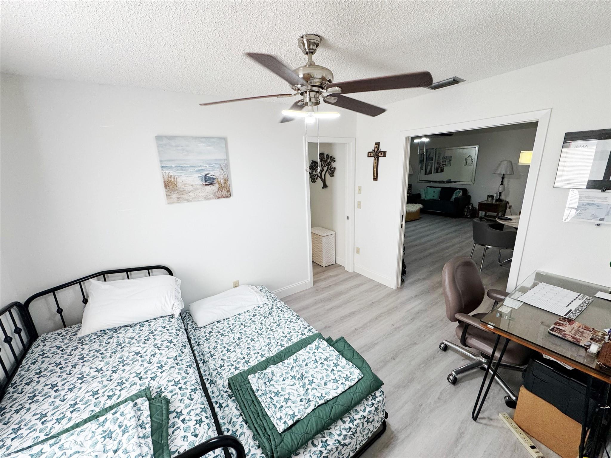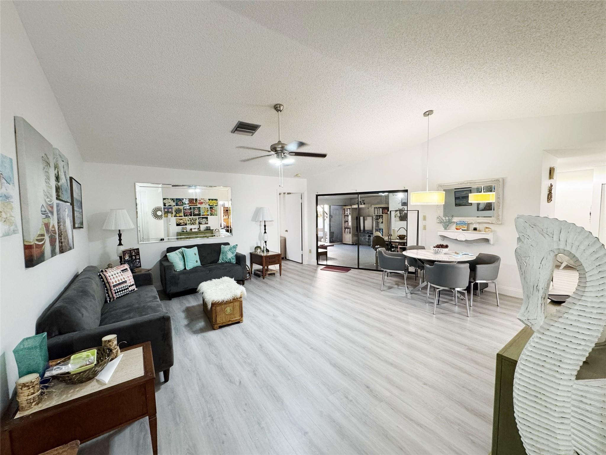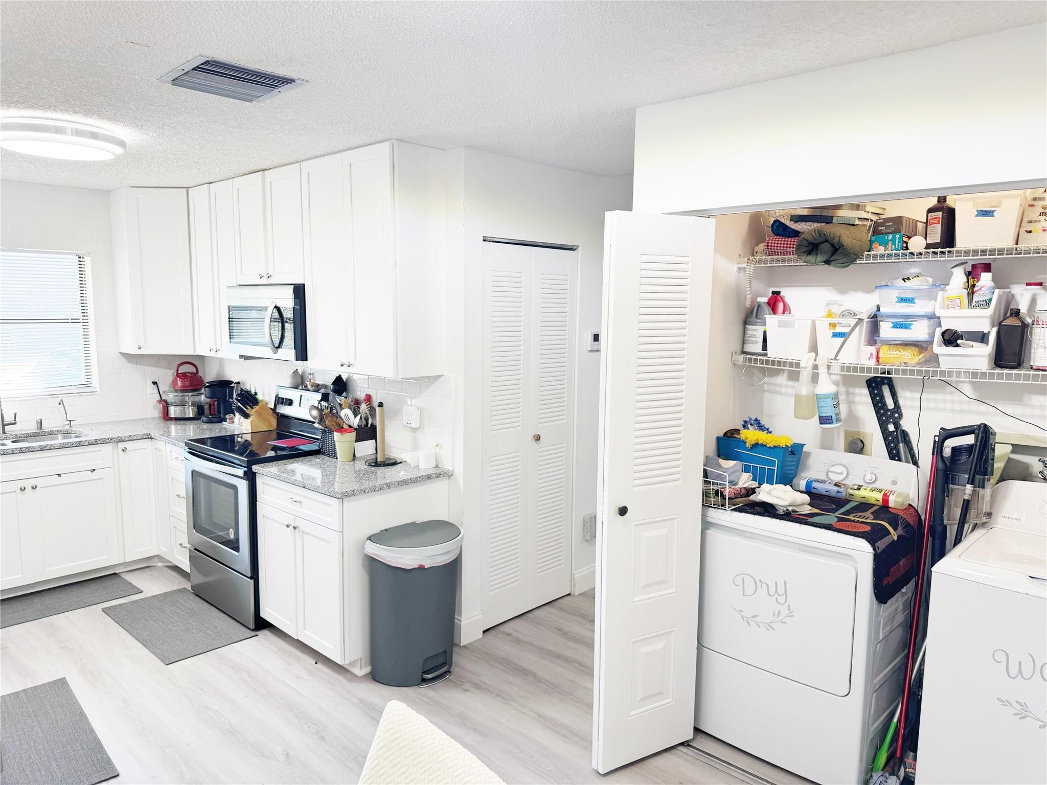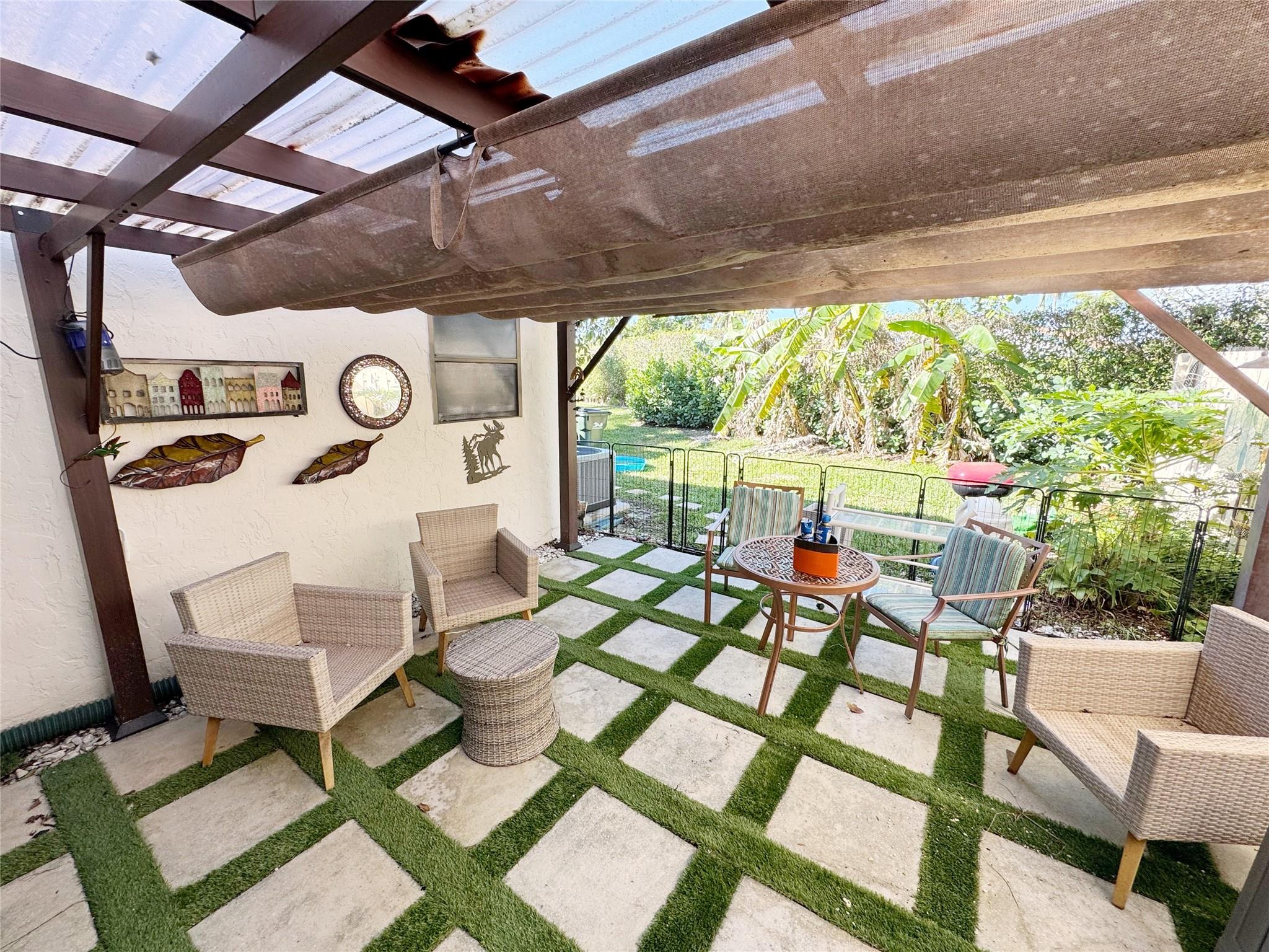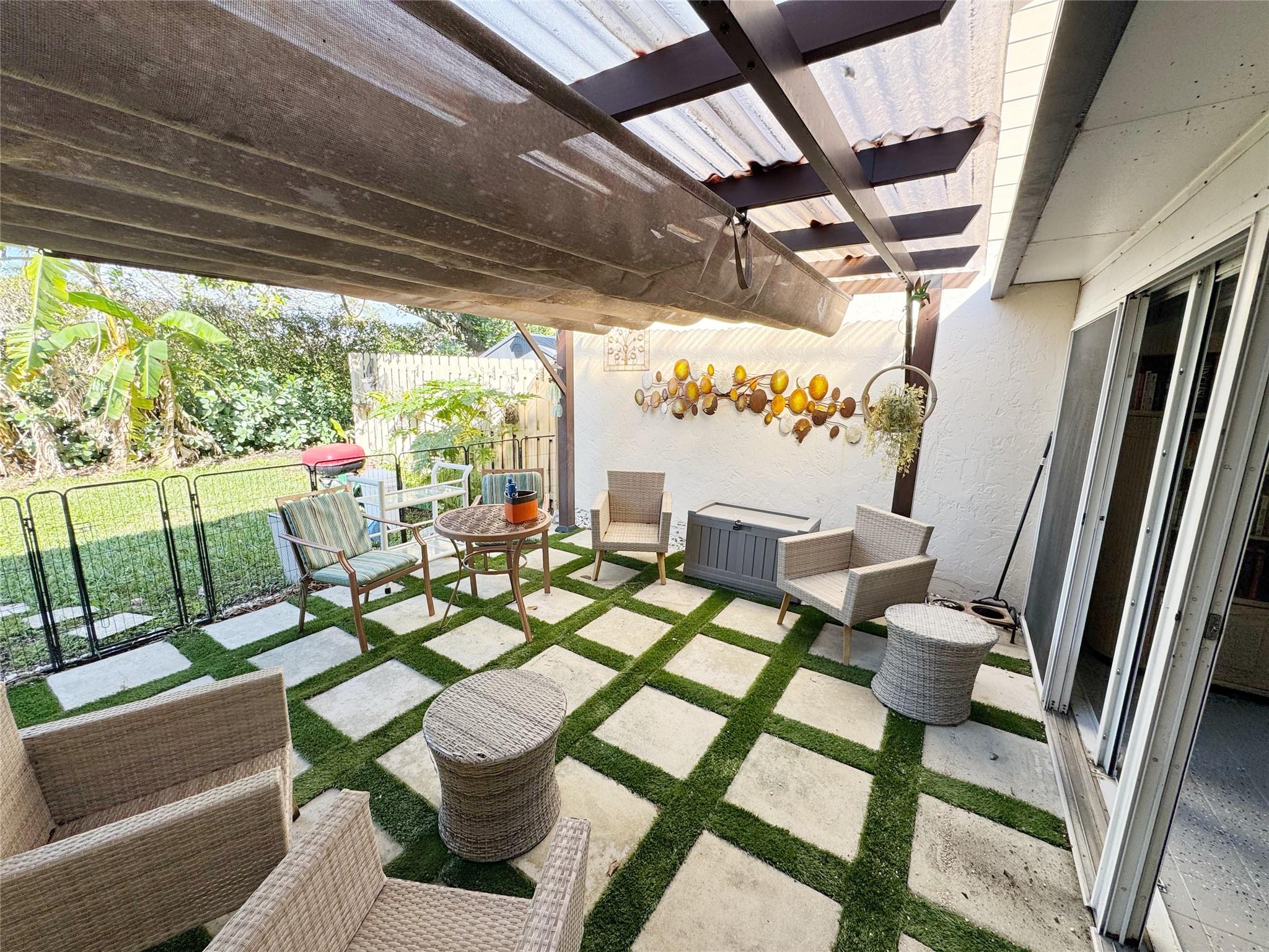 This charming villa in the active 55+ Rainberry Bay community offers a secure, gated environment with a variety of amenities, including tennis, pickleball, pools, bocce, a clubhouse, theater, and fitness center. The HOA covers cable, lawn care, and gate access. Inside, enjoy spacious rooms, a renovated kitchen with stainless steel appliances, granite counters, new laminate floors, and a large family room. Updates include a 2021 AC, new toilets, vanities, ceiling fans, washer/dryer, and exterior pavers & fence. The home also features a private garden, two assigned parking spots, and ample storage. Pet-friendly (2 dogs, max 30 lbs). Don’t miss the 3D tour!