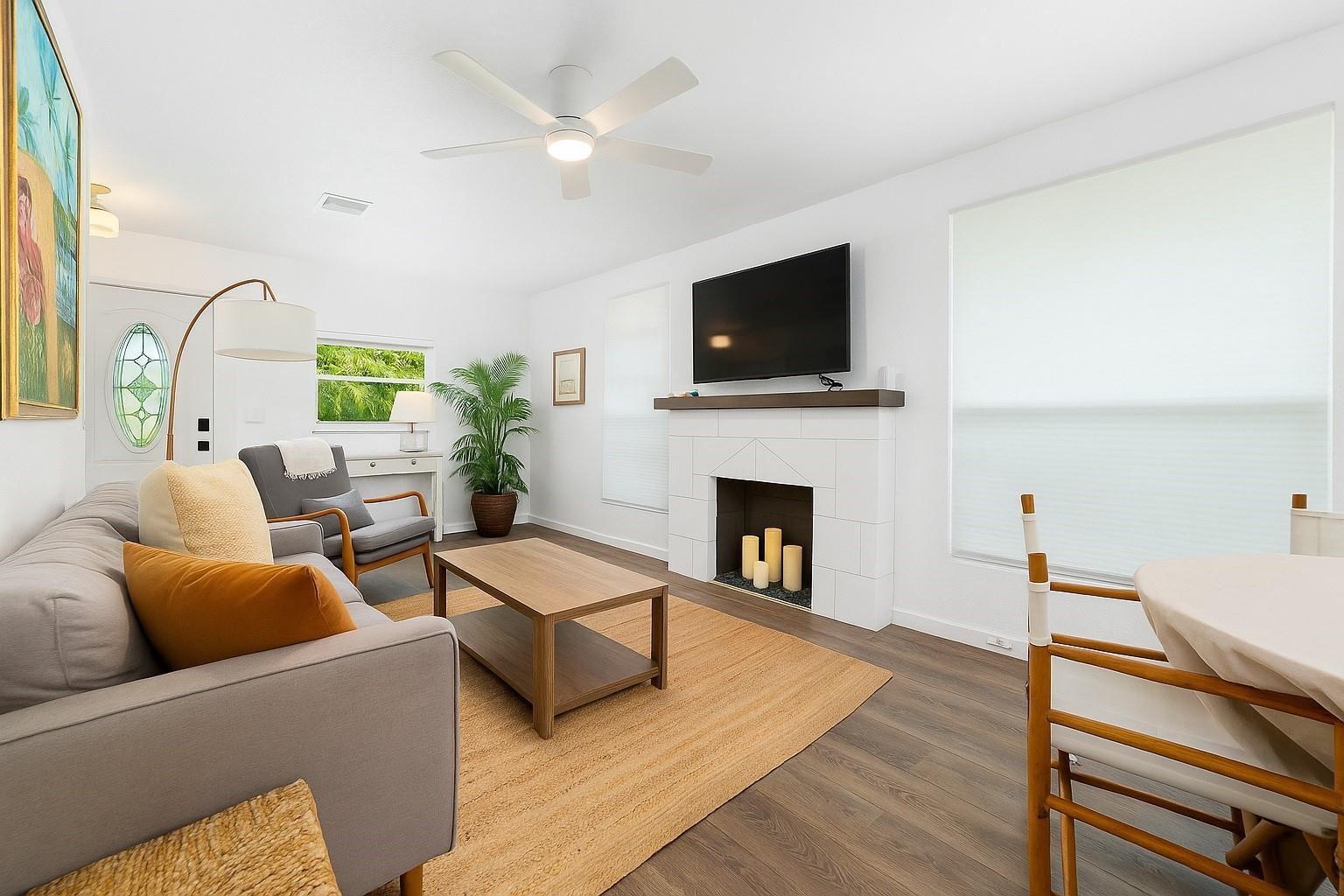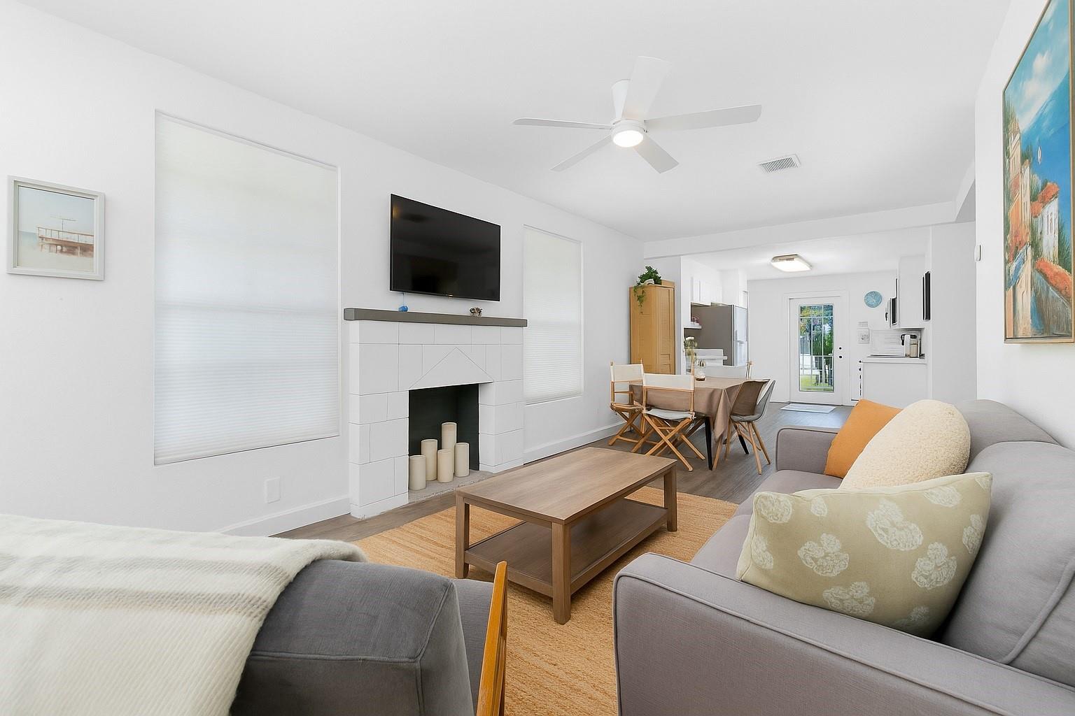 ****HUGE PRICE REDUCTION****This charming Lake Worth Beach home blends comfort and style with updated wood-look vinyl flooring, an open floor plan, and abundant natural light. The spacious kitchen offers stainless steel appliances and in-unit laundry. A split-bedroom layout provides privacy with 2 bedrooms and 1 fully updated bath; fireplace is closed off. Enjoy a large fenced backyard with patio and room for a future pool. Parking for 2 vehicles. No HOA. Upgrades include new roof (March 2024) and replaced cast iron pipes. Minutes to shopping, dining, parks, the Intracoastal, and the vibrant coastal charm, history, and cultural attractions of Lake Worth Beach.