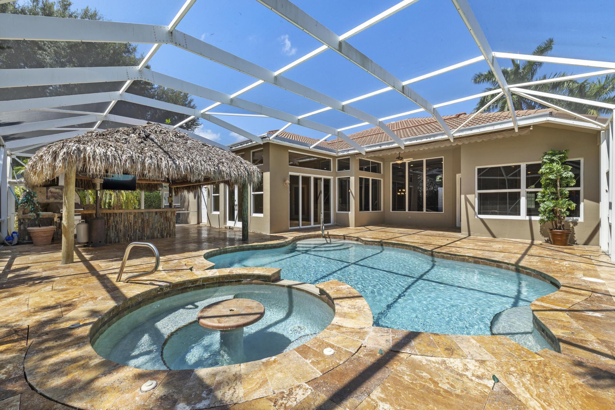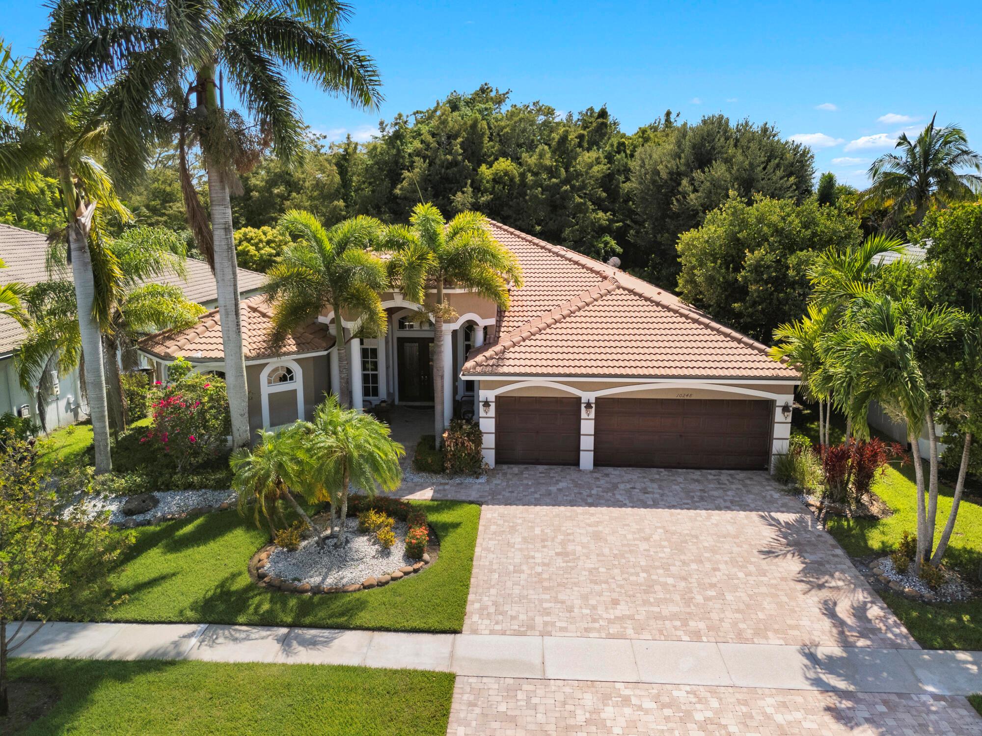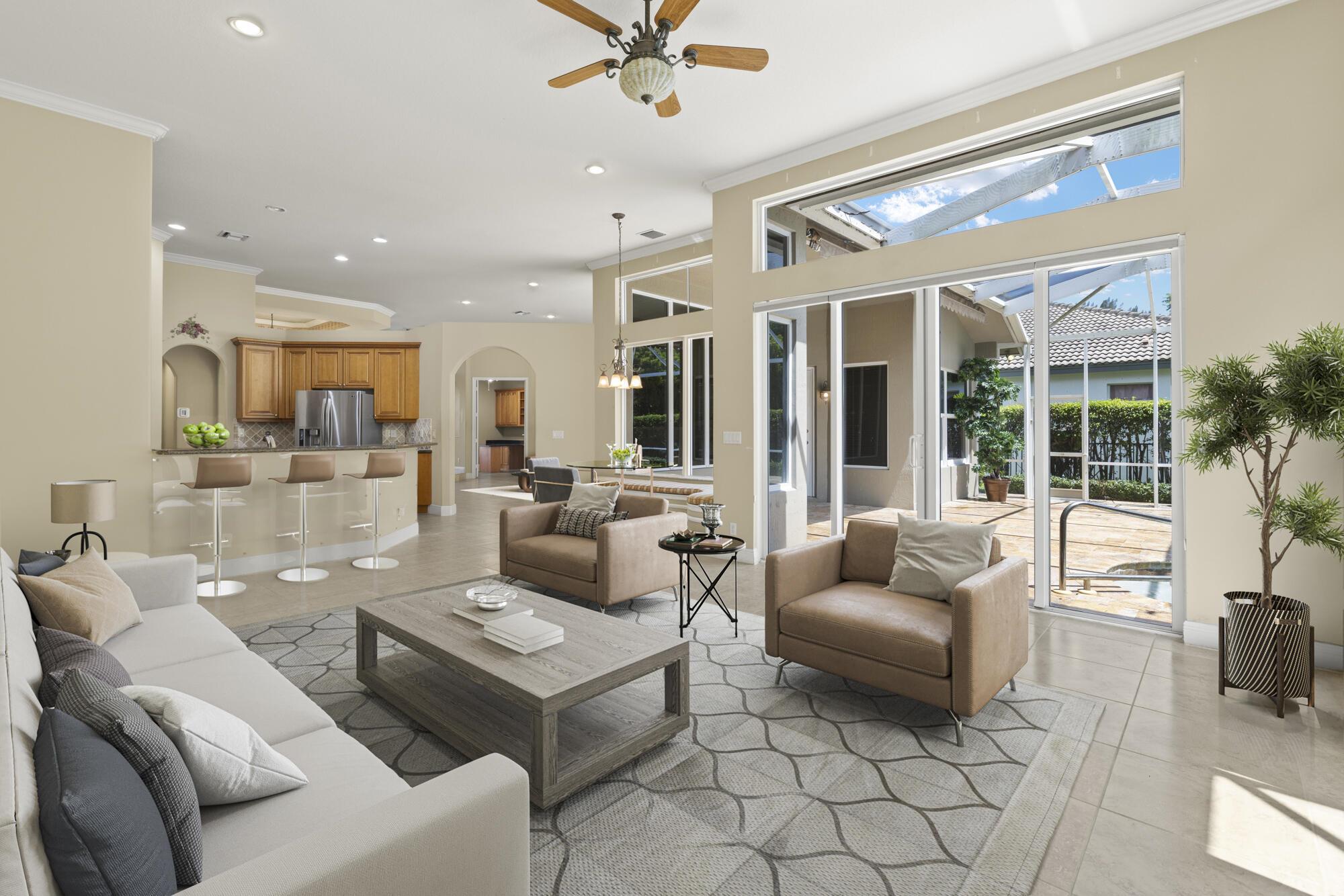 Located in the exclusive gated community of Countryside Estate. This spacious single-story residence offers over 3,000 sq ft of elegant living space, with soaring ceilings, crown molding, and a desirable split-bedroom layout.Step outside to a resort-style backyard with a heated pool and spa, screened-in patio, Tiki bar, built-in grill, and lush tropical landscaping–designed for relaxation and entertainment.Ideally situated just minutes from the Wellington International Horse Showgrounds, and with easy access to the Turnpike and major highways, this location makes commuting to Palm Beach, Fort Lauderdale, or Miami seamless–perfect for equestrian enthusiasts and professionals on the go.