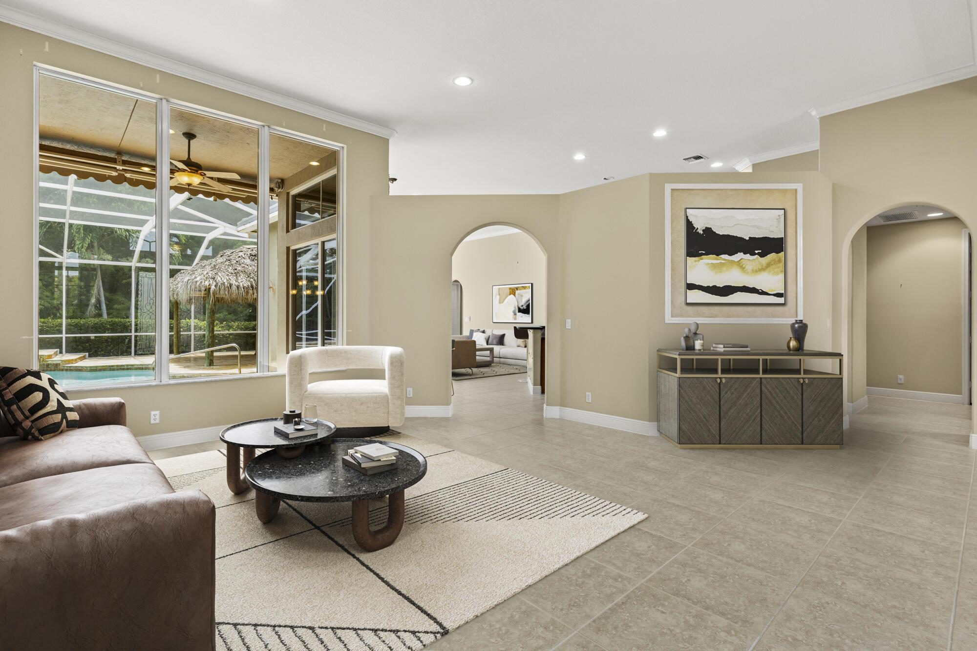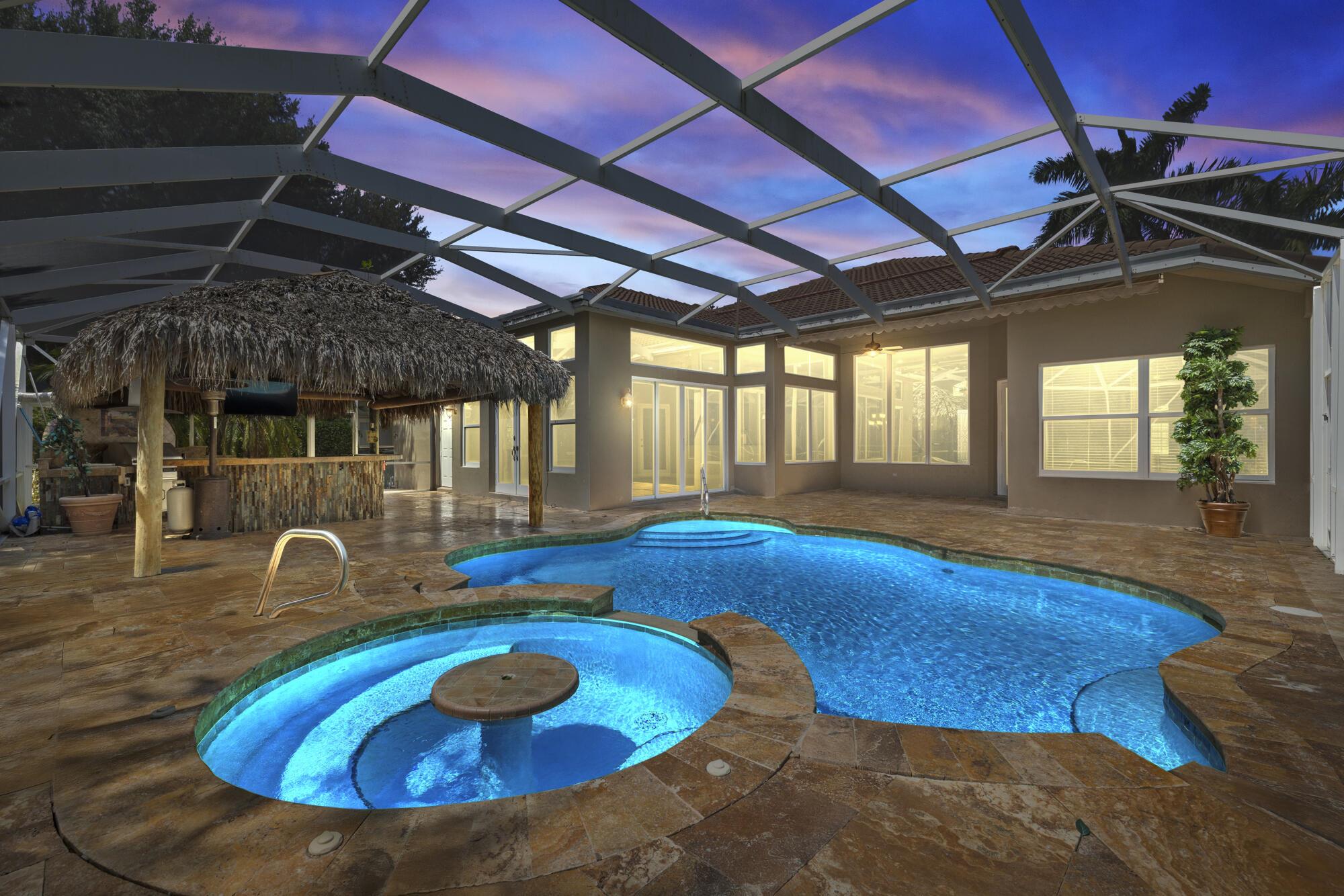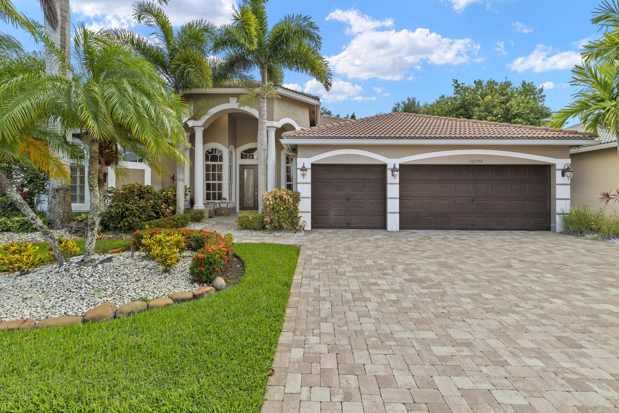 Located in the exclusive gated community of Countryside Estate. This spacious single-story residence offers over 3,000 sq ft of elegant living space, with soaring ceilings, crown molding, and a desirable split-bedroom layout.Step outside to a resort-style backyard with a heated pool and spa, screened-in patio, Tiki bar, built-in grill, and lush tropical landscaping–designed for relaxation and entertainment.Ideally situated just minutes from the Wellington International Horse Showgrounds, and with easy access to the Turnpike and major highways, this location makes commuting to Palm Beach, Fort Lauderdale, or Miami seamless–perfect for equestrian enthusiasts and professionals on the go.