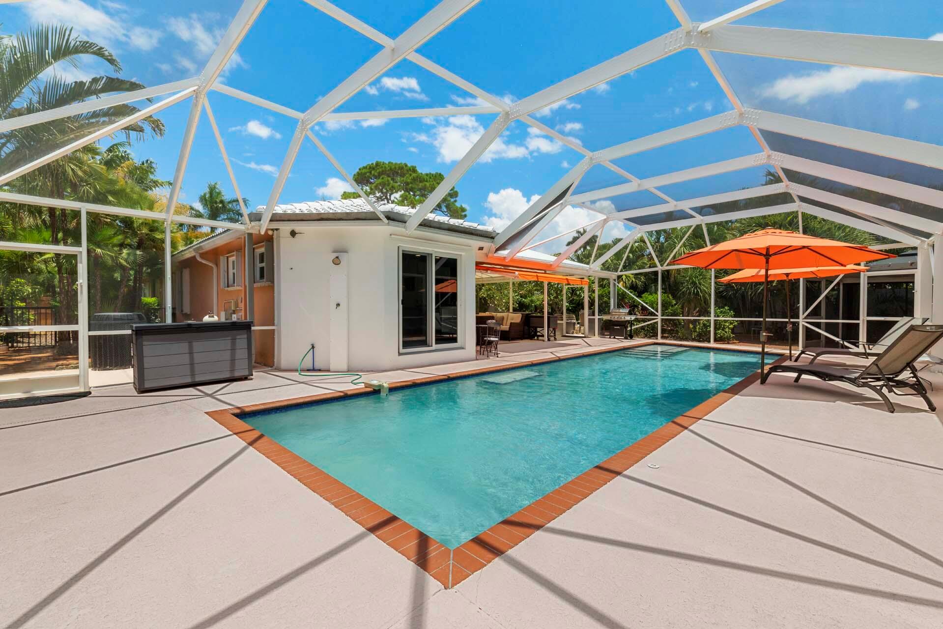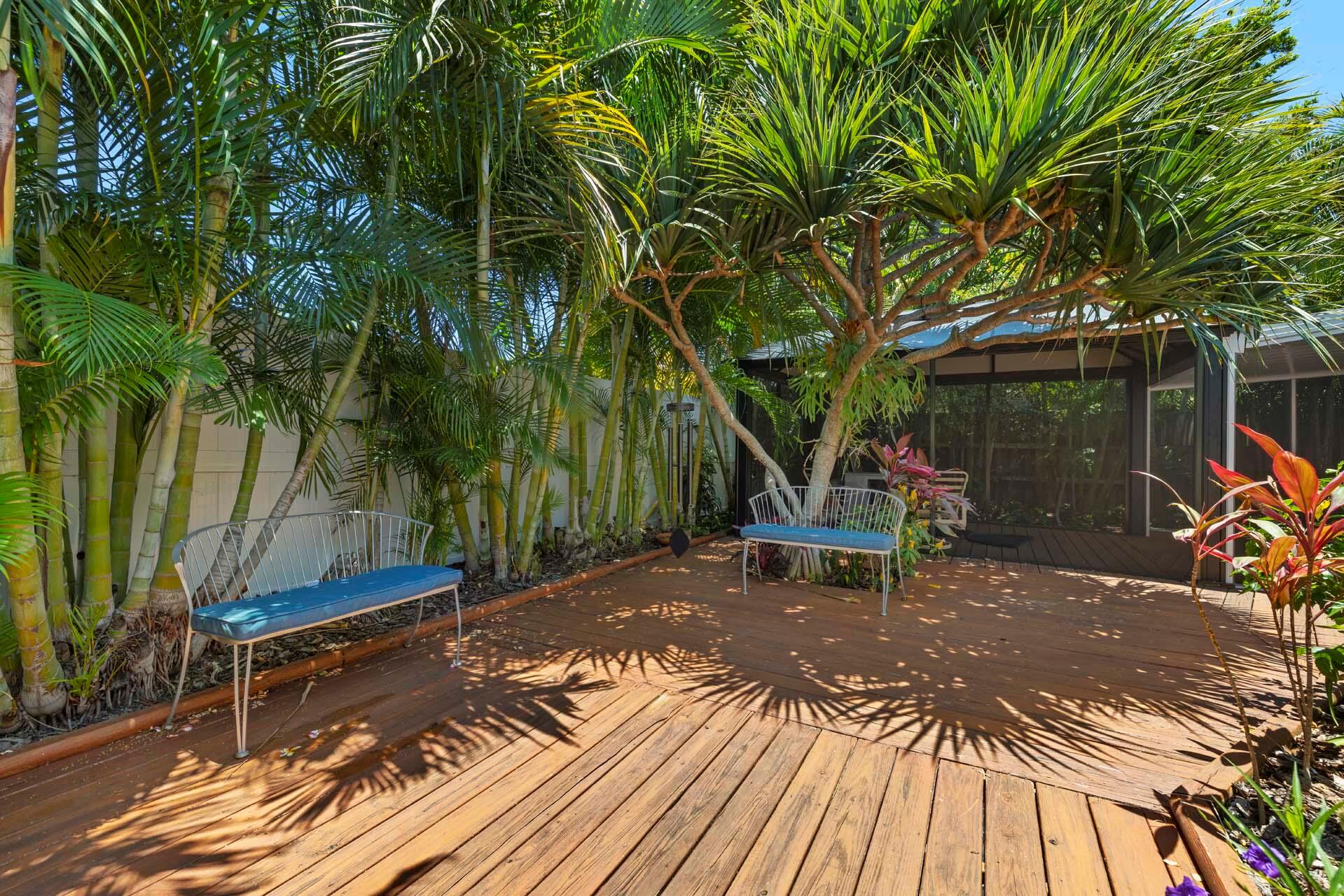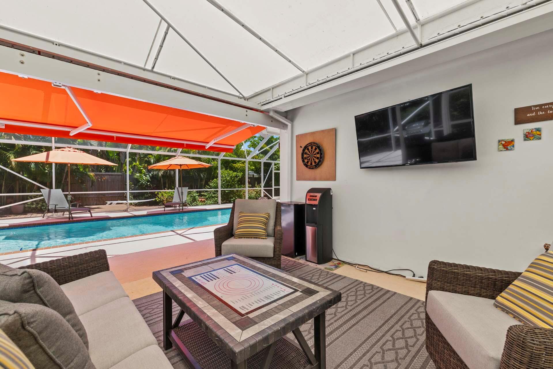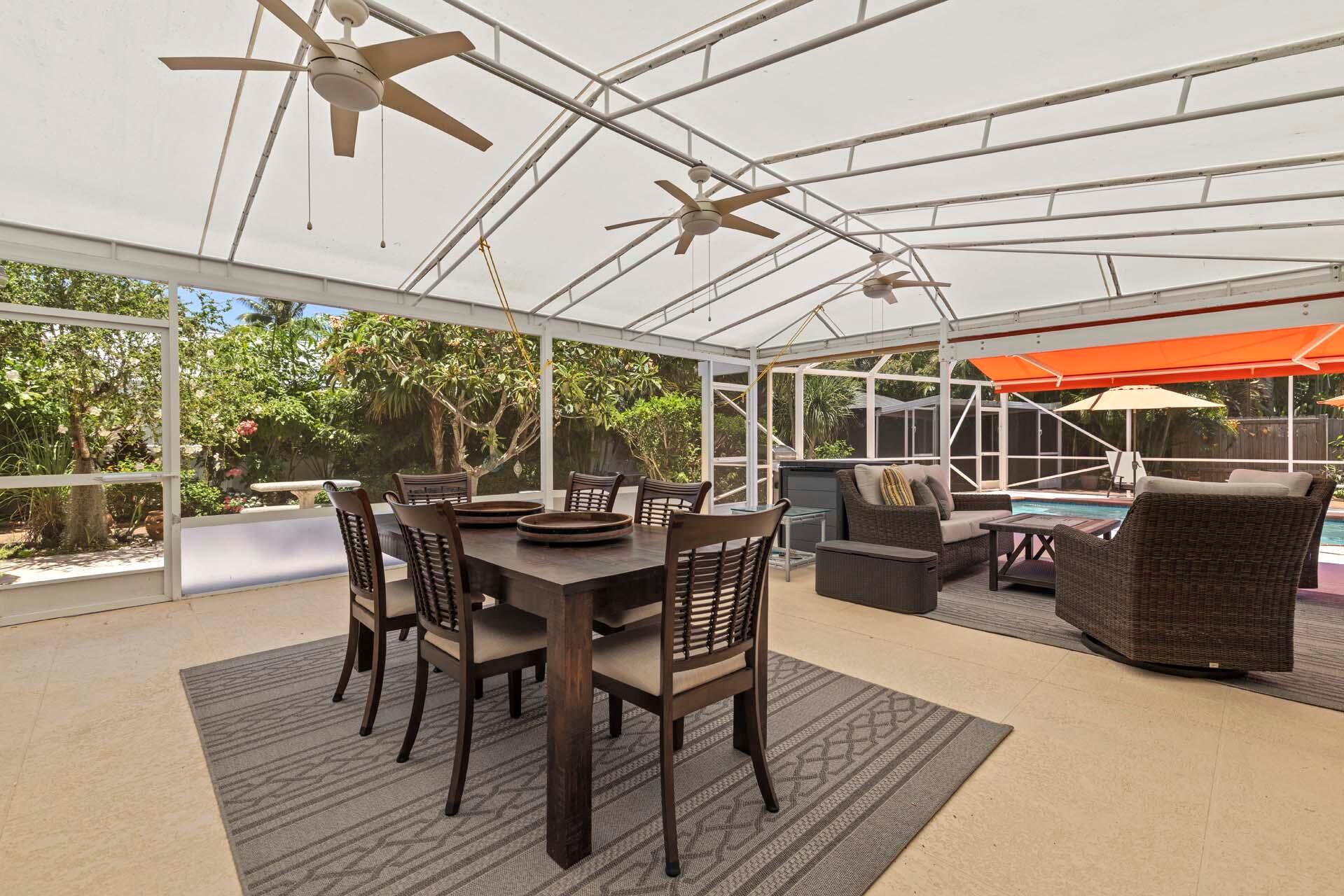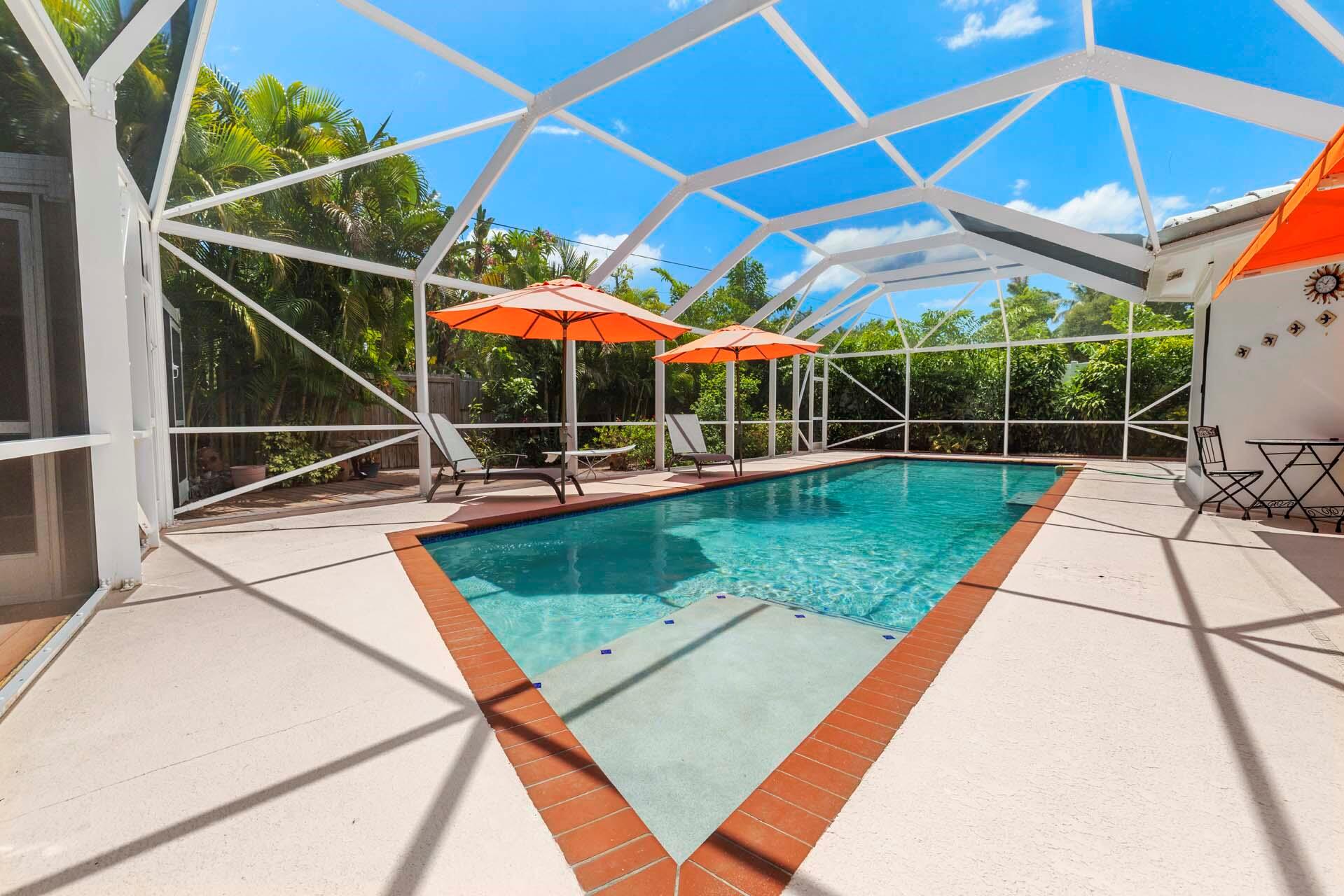 Nestled in the flourishing Kenmont neighborhood of Delray Beach, this rare gem offers a perfect blend of tropical serenity and lucrative investment opportunities. Set on a lush quarter-acre lot, this botanical retreat is surrounded by an enchanting garden showcasing nine palm tree species and a curated selection of tropical plants, creating an idyllic outdoor sanctuary.Enjoy approximately 650 square feet of fully screened and covered patio space, perfect for year-round relaxation or entertainment, with picturesque views of a 16′ x 40′ heated saltwater pool. The recently installed screened outdoor space enhances the experience and is ideal for poolside games, lounging, or a breezy outdoor office.