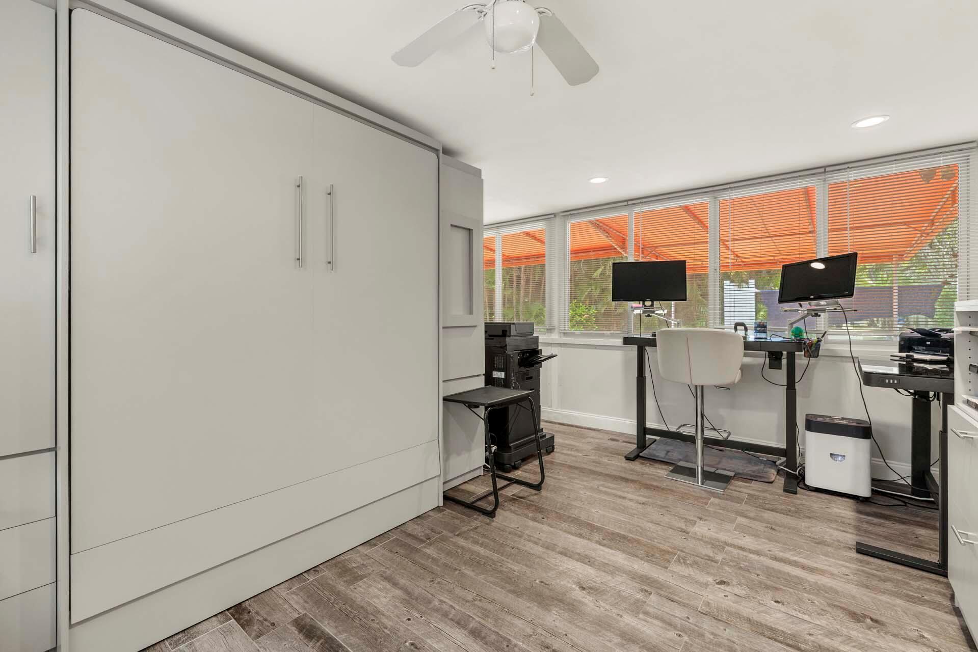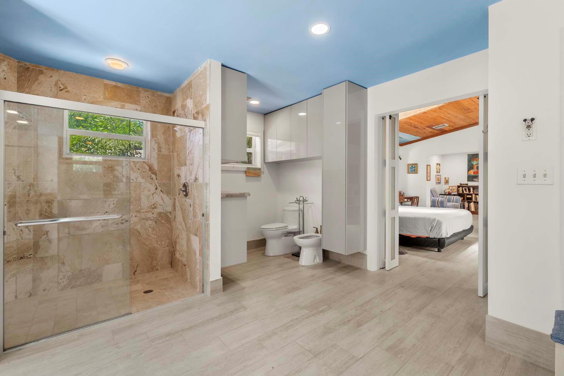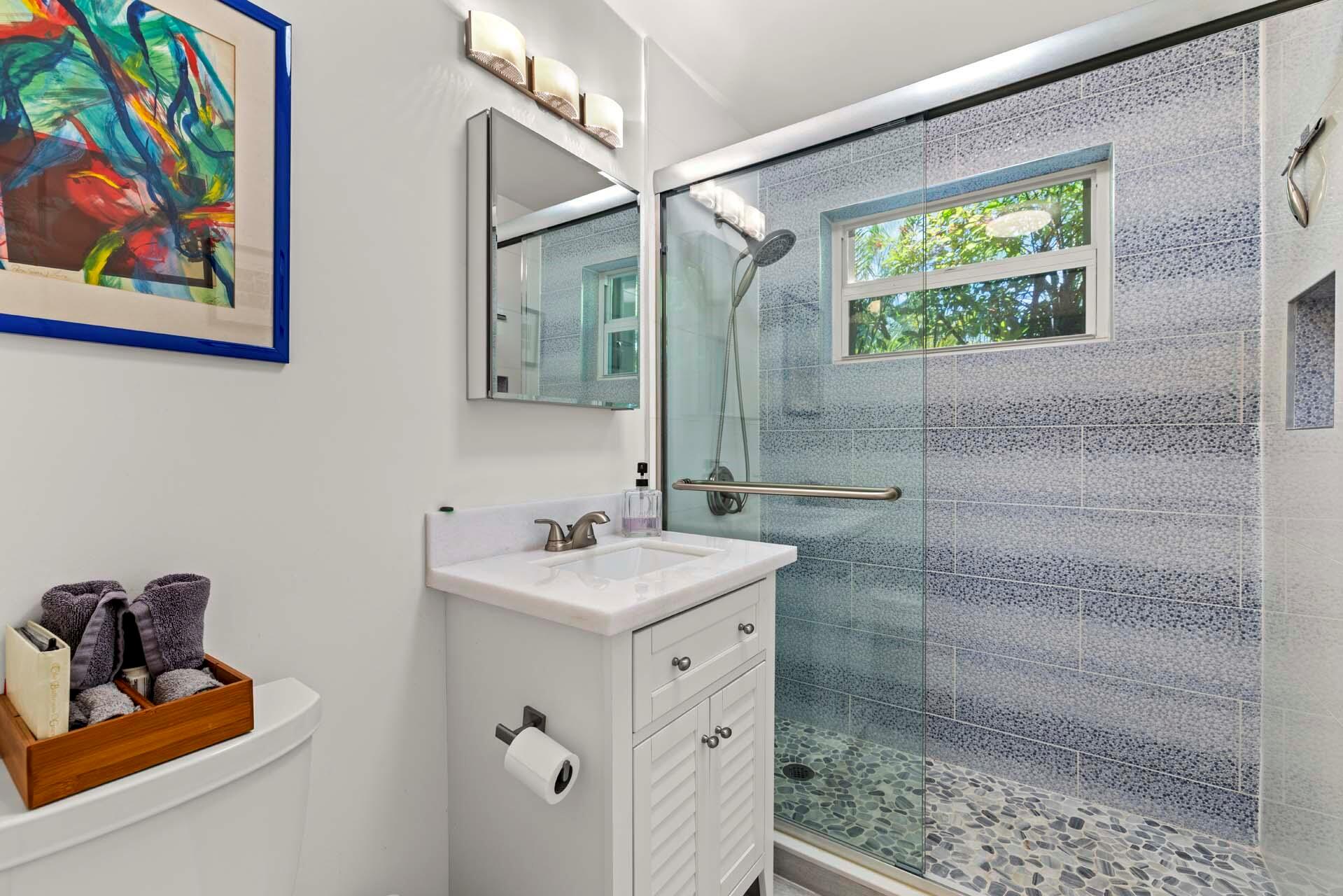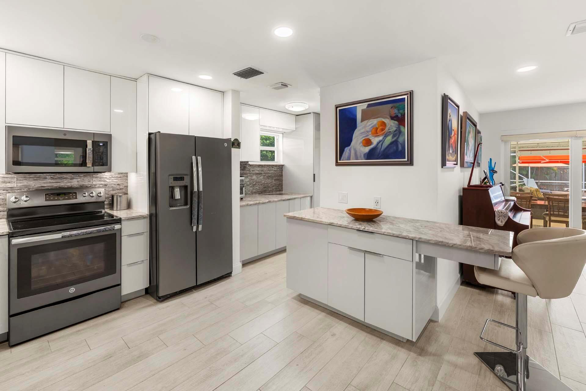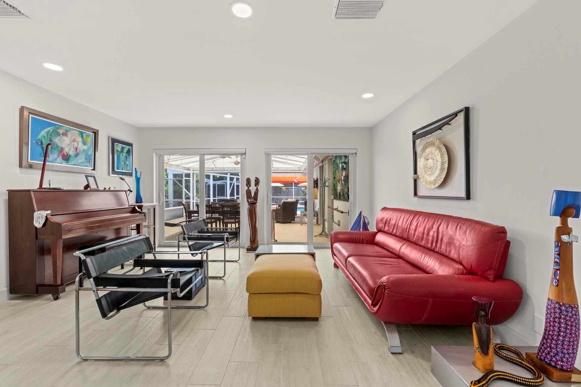 Nestled in the flourishing Kenmont neighborhood of Delray Beach, this rare gem offers a perfect blend of tropical serenity and lucrative investment opportunities. Set on a lush quarter-acre lot, this botanical retreat is surrounded by an enchanting garden showcasing nine palm tree species and a curated selection of tropical plants, creating an idyllic outdoor sanctuary.Enjoy approximately 650 square feet of fully screened and covered patio space, perfect for year-round relaxation or entertainment, with picturesque views of a 16′ x 40′ heated saltwater pool. The recently installed screened outdoor space enhances the experience and is ideal for poolside games, lounging, or a breezy outdoor office.
