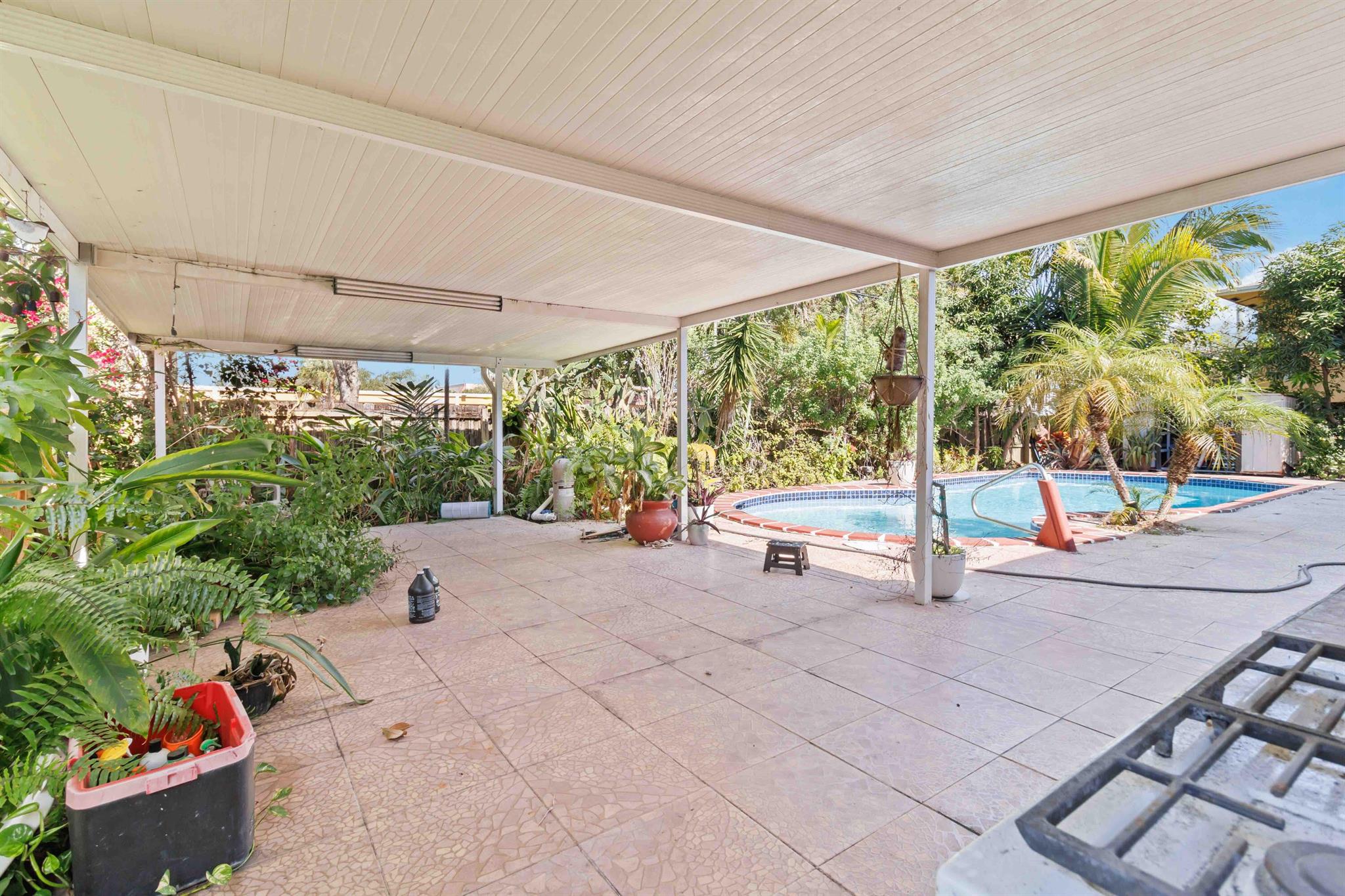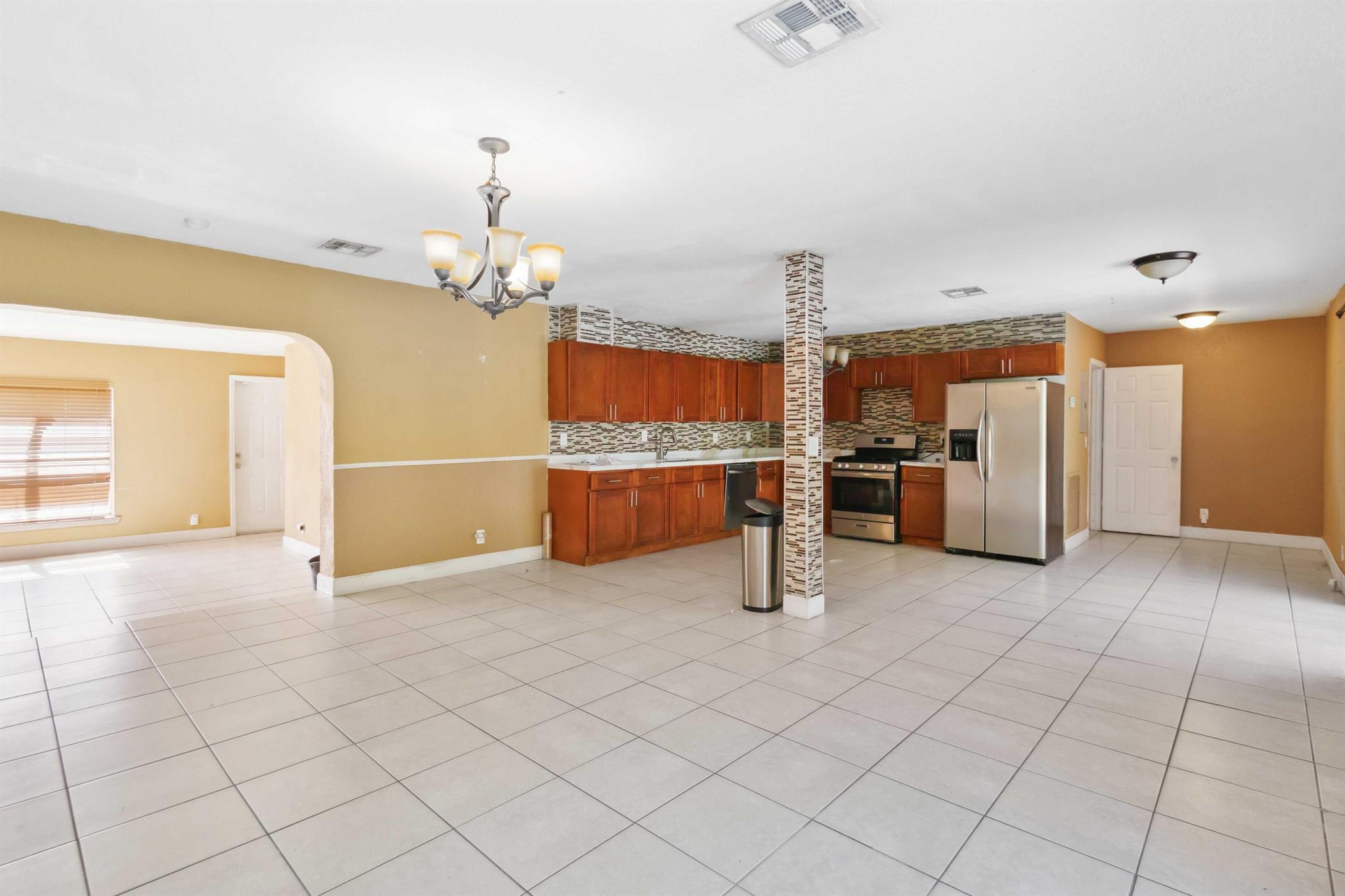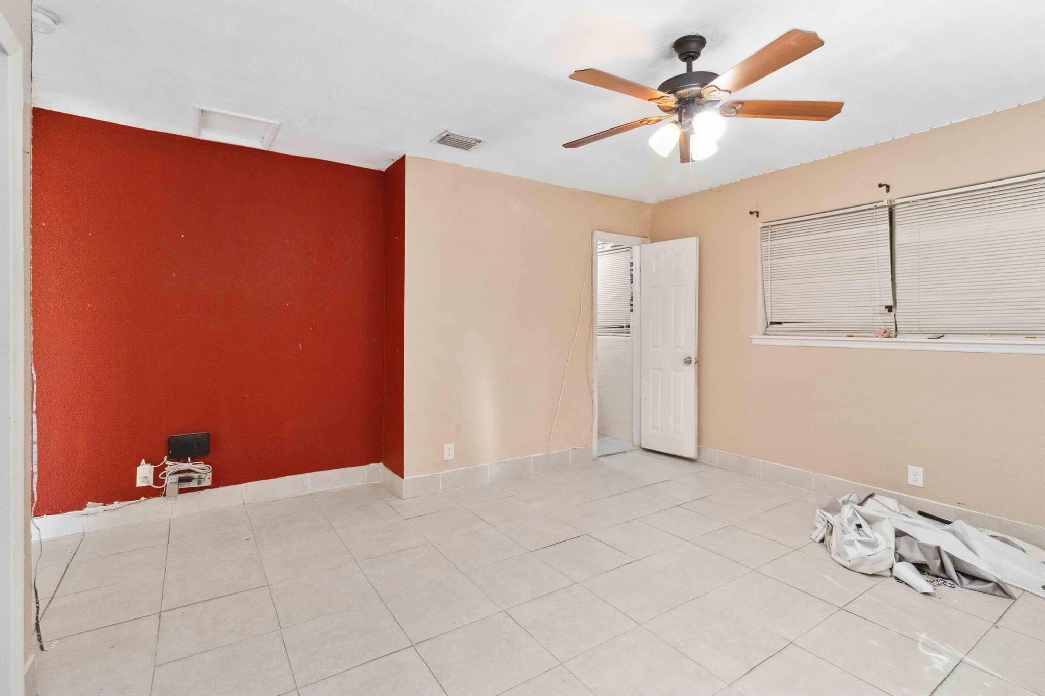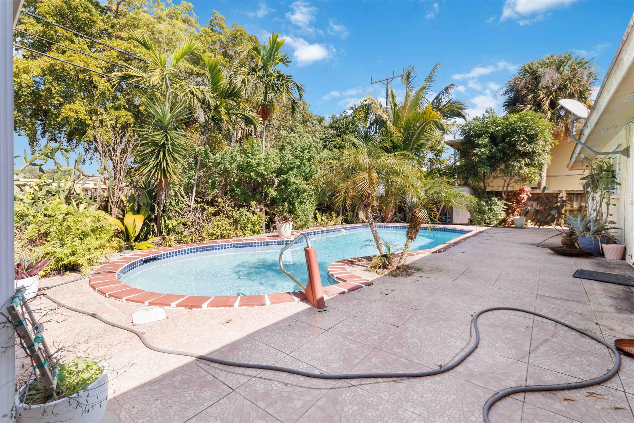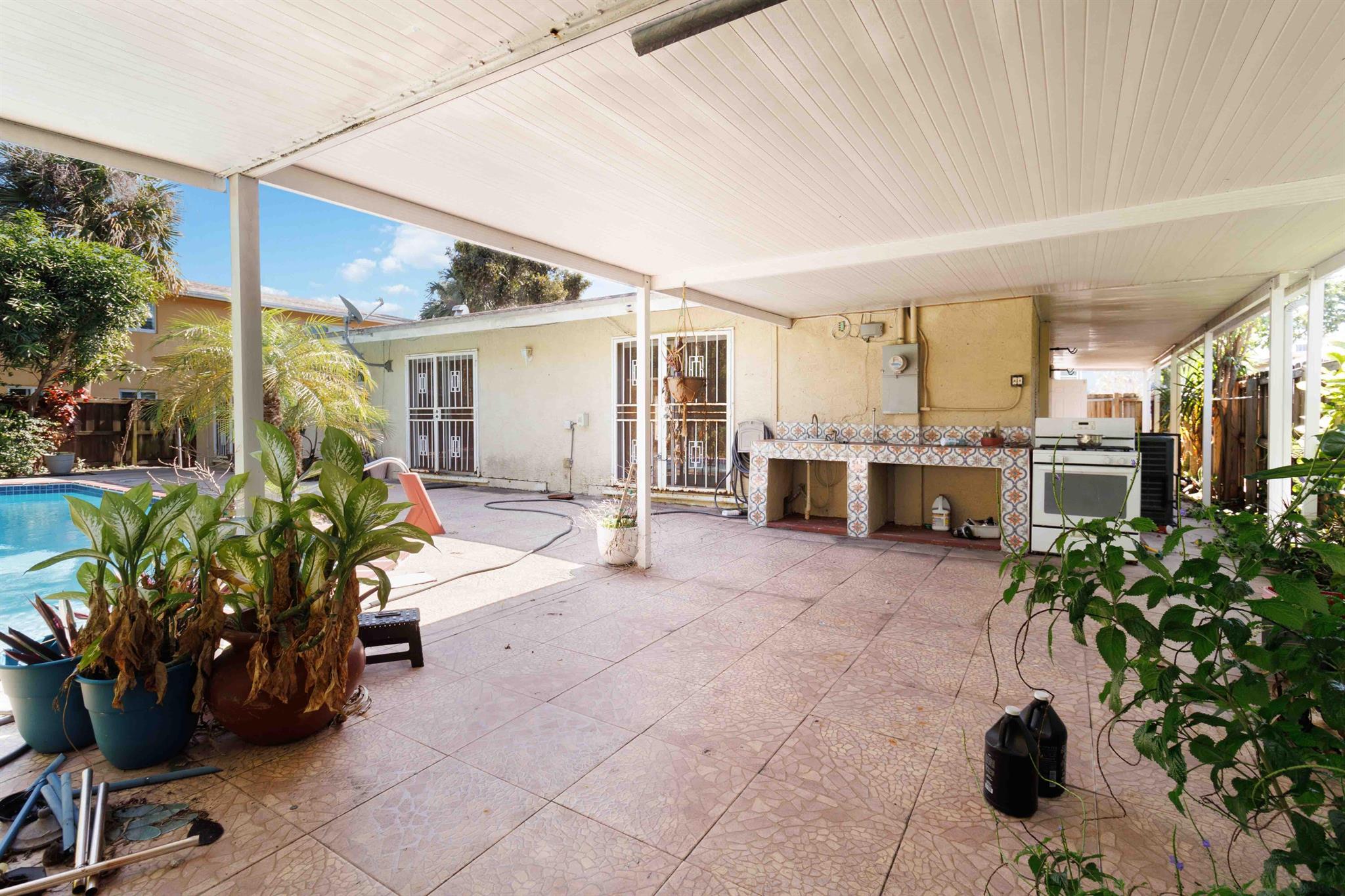 Discover the potential of this 4-bedroom, 2-bathroom, 2,165 sq. ft. pool home in the desirable Melrose Park neighborhood. Step inside to find ceramic tile flooring throughout–no carpet! The second guest bathroom is awaiting its finishing touches on the shower, allowing you to customize it to your style. Outside, the fully fenced backyard is a tropical oasis featuring an in-ground pool, a covered patio, and an outdoor kitchen. Roof and AC are 2014. Water heater was replaced in 2022.