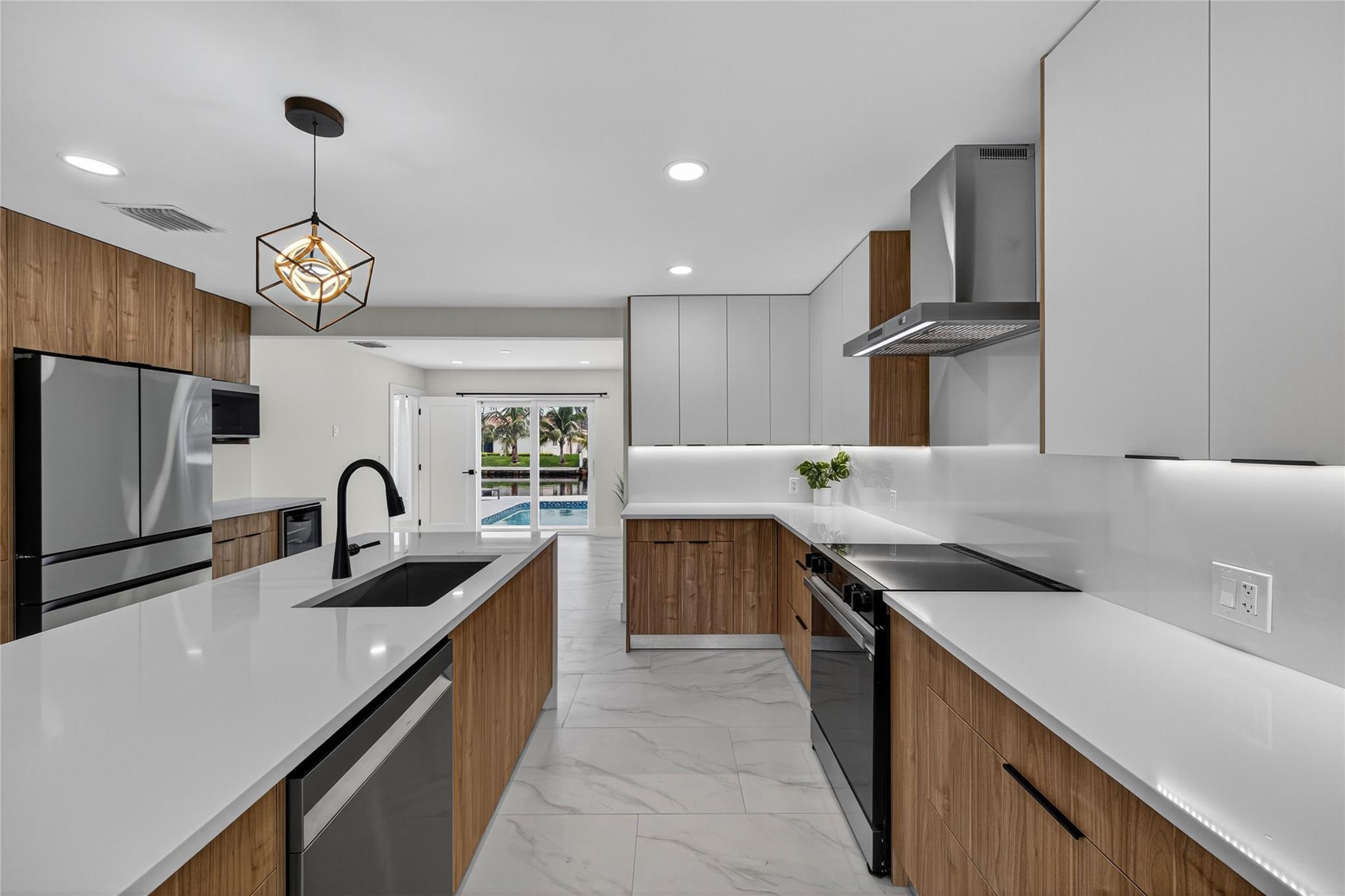 Welcome home to your fully renovated waterfront paradise in Garden Isles! This modern home boasts stunning canal views, new concrete tile roof, refinished pool with Carrera travertine patio, a private dock & boat lift. The interior has been beautifully updated with high-end modern finishes: Thasos quartzite countertops, custom cabinets, large-profile porcelain tile floors, new Samsung appliances, and all new impact windows and doors. The spa-inspired primary en-suite with double head shower, double sink vanity, walk in closet and private patio is what dreams are made of! This is the epitome of Florida living in the heart of Pompano Beach! Schedule your showing today!