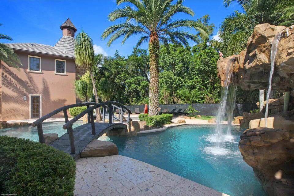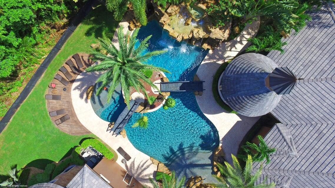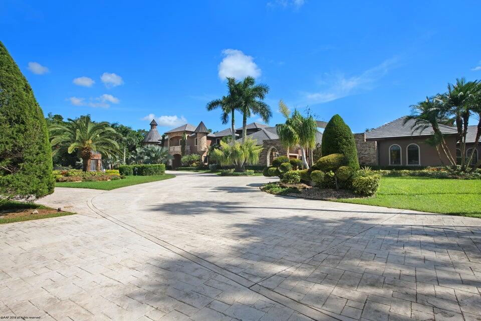 Distinguished by spectacular exterior and interior architectural elements this prestigious compound is situated on a fully fenced and gated 7+ acres with 22,000 sq. ft. of total living space. Luxury and sophistication define this strikingly elegant residence with 12,000 sq. ft. in the main house and 1,200 sq. ft. in the guest house with full kitchen. A separate 2-story exercise room with separate sauna and steam bath can also be used as guest quarters. The estate also features a 9-car, climate-controlled garage, a 10-person movie theater, an English Pub room with billiards, 3 fireplaces and a floor to ceiling fully built-in office with wainscoting, all impact windows and doors and a full house generator, three laundry rooms and Crestron lighting and home automation system.