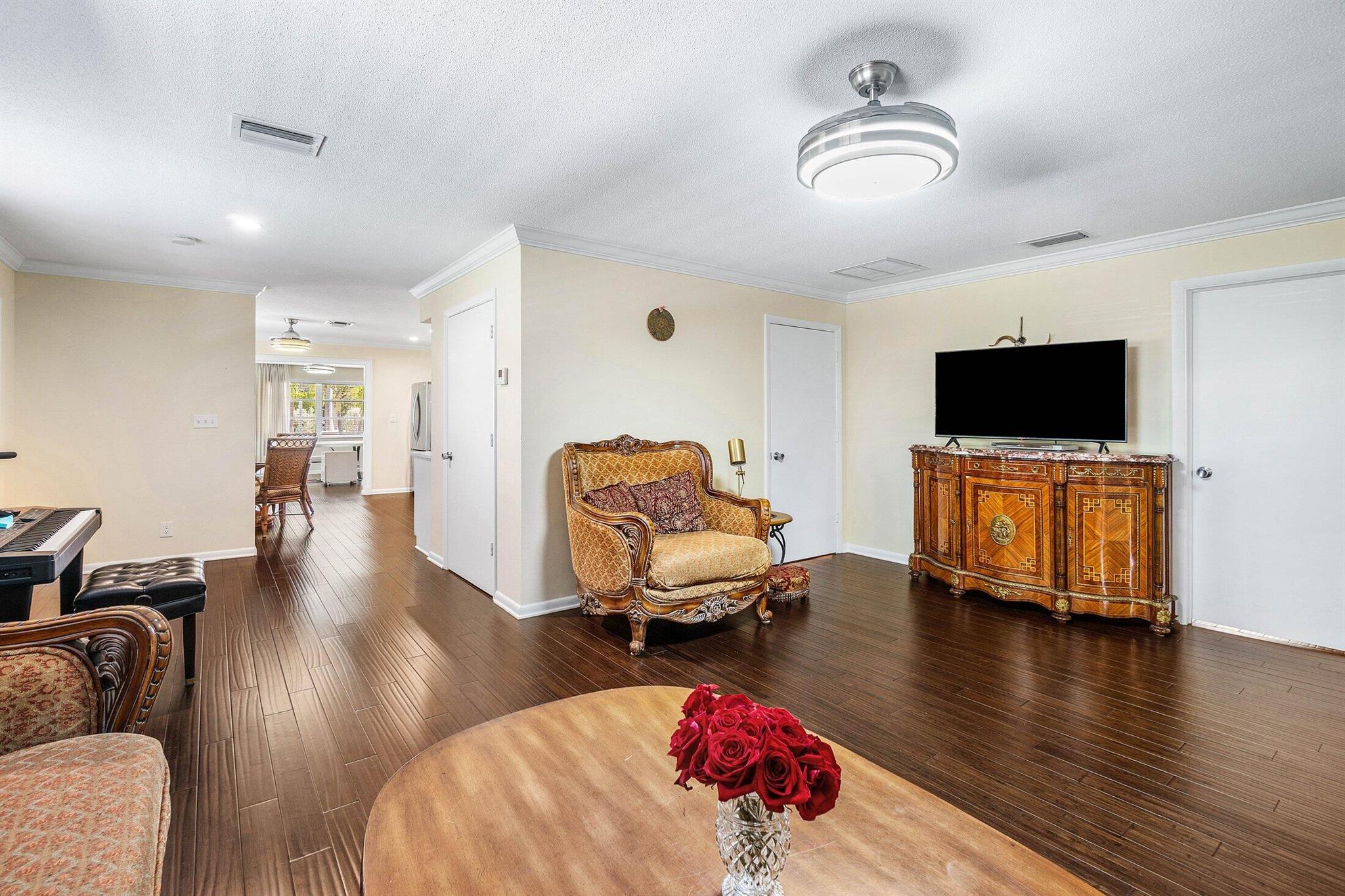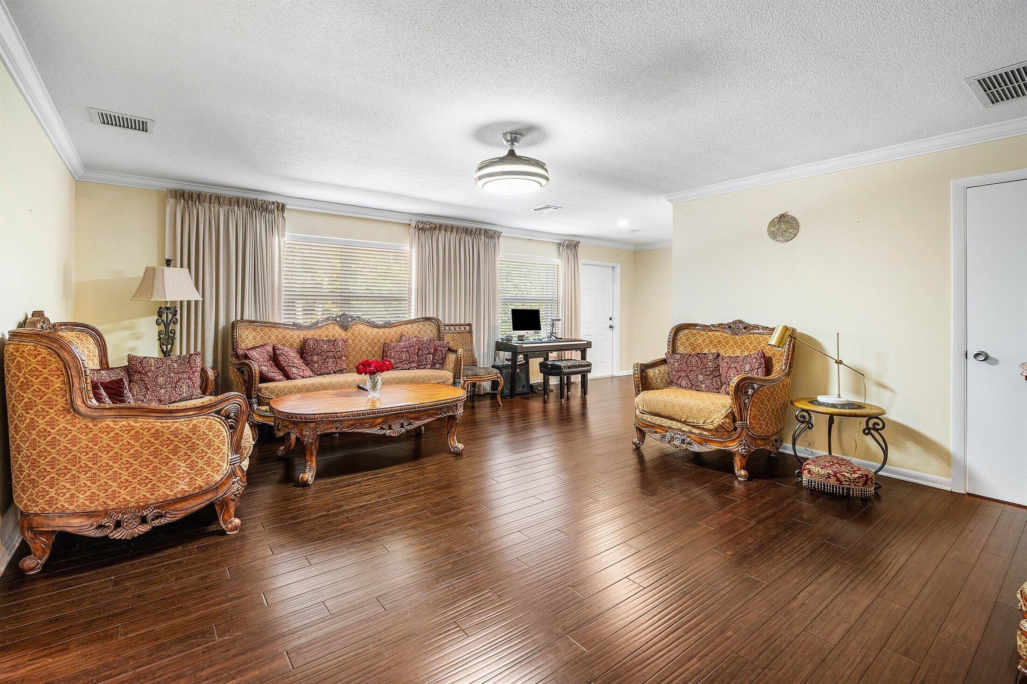 SoSo 4-bed, 4.5-bath CBS home steps from the Intracoastal. Flexible layout suits guest suite, home office, or fitness studio. 2,000+ sq ft with bamboo floors, quartz counters, crown molding, indoor laundry, and dual-zone A/C (2017 & 2024). Dual driveways + fenced backyard with space for pool or cottage. Walk or bike to parks, water, art, and dining.