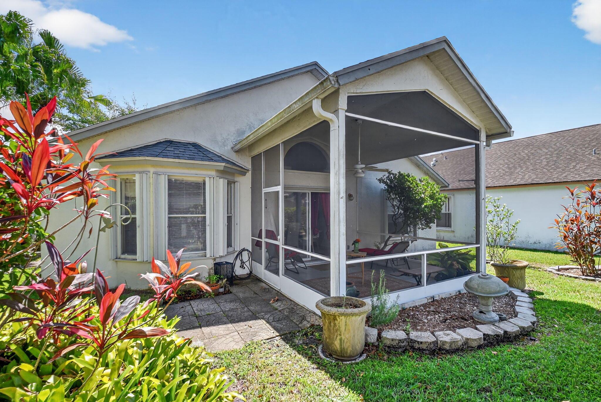 Discover this beautifully maintained single-family home, featuring a thoughtfully designed split floor plan. Enjoy the comfort of a brand-new 2024 AC unit & updated kitchen adorned with Corian countertops & newer appliances. Guest bath is tastefully refreshed with a newer toilet, sink & updated plumbing. Step out onto the enclosed patio & take in the tranquil garden views, perfect for relaxation. 2020 Washer/Dryer & 2018 Water Heater, ensuring modern convenience throughout. Nestled within the scenic River Bridge community, which boasts 24 acres of serene waterways & walking paths, 6 pickleball courts, 4 tennis courts, heated pools & more. Under 10 mi to PBI Airport & beach & 1 mi to Publix.