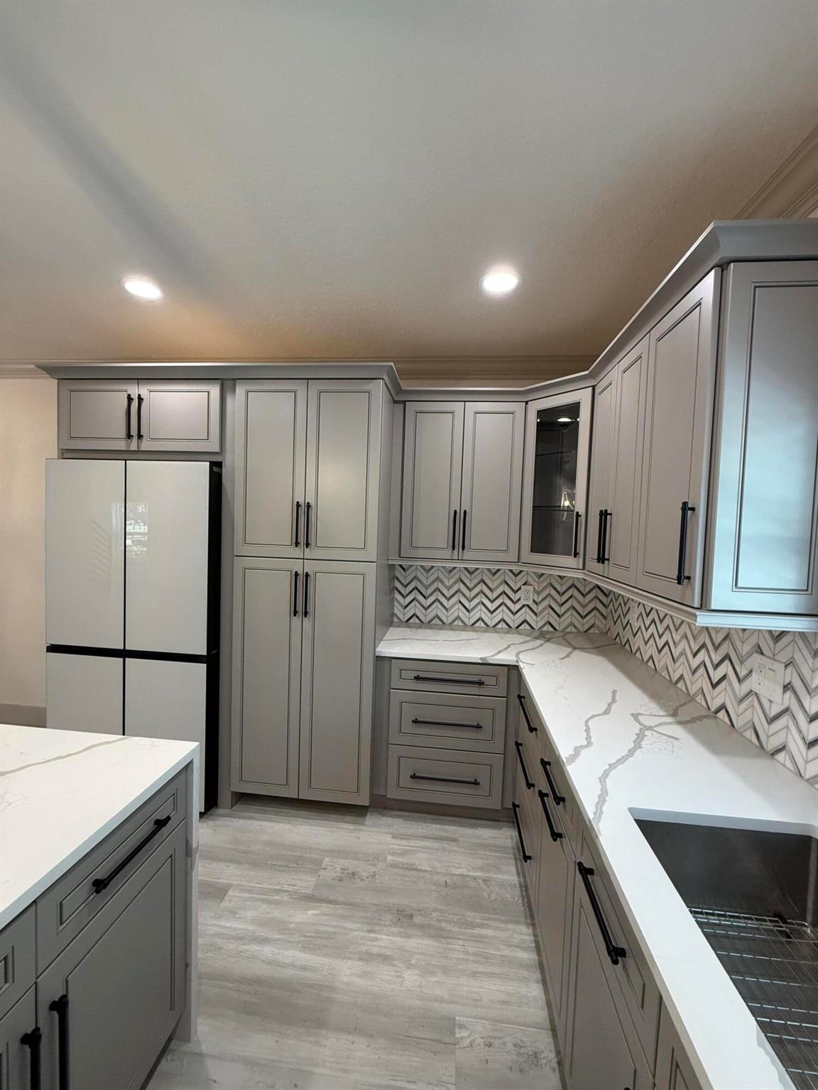 Don’t let the insurance chaos keep you from buying! This SUPERIOR BUILT ALL CONCRETE BLOCK annual insurance is only about $2,600/yr w/ a 2% deductible!! Feel safe & secure knowing it’s built to withstand 170 MPH winds & at 20′ above sea level it’s NOT in a flood zone! Total renovation & the brand new pool are now complete. BRAND NEW LVP & porcelain flooring, LED recessed lighting, wide staircase custom kitchen w/ quartz waterfall island & premium Bespoke series appliances, bathrooms w/ porcelain tile & designer details, Kohler toilets & Moen fixtures, ledger stone details, premium quartz & quartzite countertops, custom 3 panel impact glass front door, custom aluminum stair railing, interior & exterior paint, W&D, W/H, fence, concrete pavers, aluminum gutters, ceiling fans, window blinds