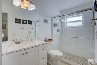 Located steps from the water, this fully appointed cottage is tucked away in a quaint non-HOA neighborhood described by residents as having a laid back ”Key West vibe.” This small enclave of approximately 150 homes is nestled between the intracoastal waterway and bordered by New Port Cove Marina, home to the world-class Rybovich Yachts. You will appreciate that this 3-bed 2-bath home is elevated keeping flood insurance low, and offers peace of mind with complete hurricane impact windows and doors. The roof, A/C condenser & compressor ages are all 2018. You can breathe easy w/ 2023 newly installed anti-microbial flex ductwork, worth $13,500, and over $5k in updated electrical, including a Main Grounding System offering a new 30 year lifespan! The home was built in 1998 w/ an effective