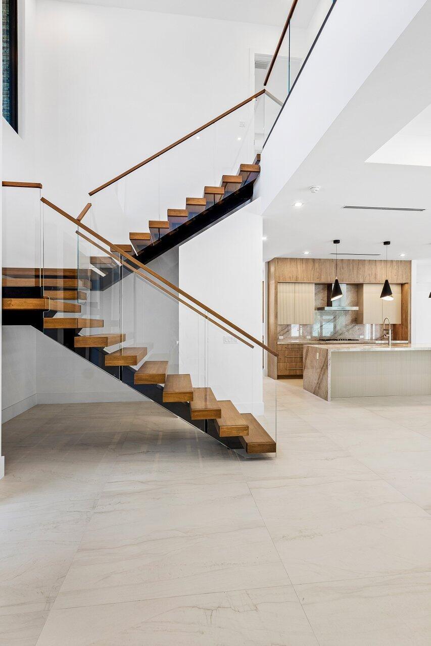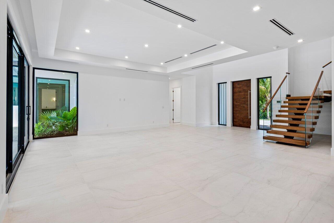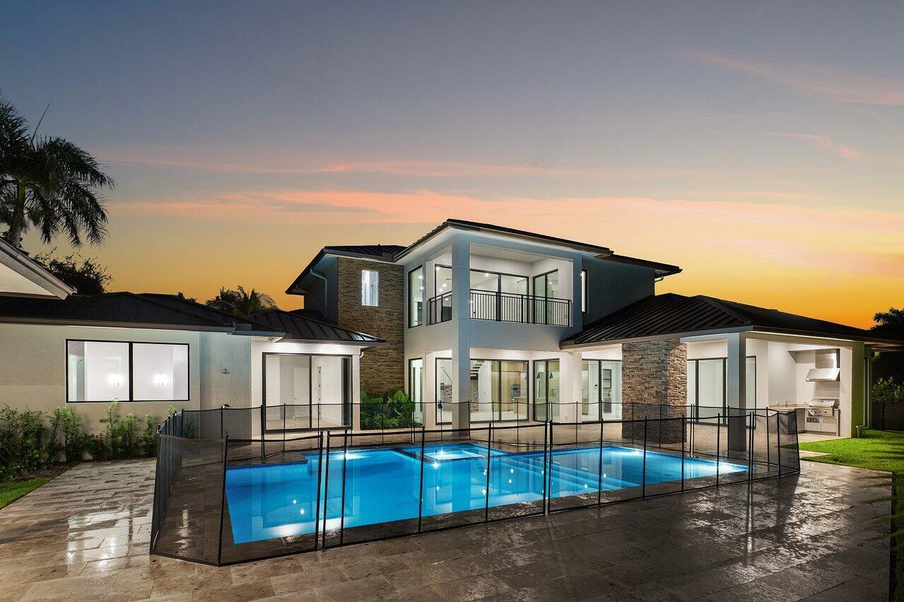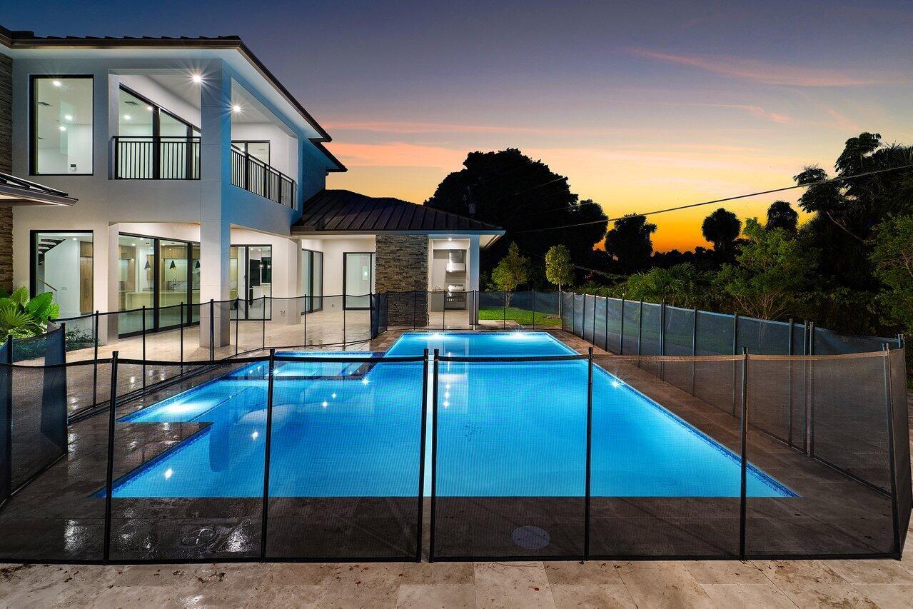 Welcome to 3100 Palm Drive–an exceptional new construction estate designed by renowned architect Randall Stofft, offering modern sophistication, rare flexibility, and resort-style living in the heart of Delray Beach.Set on an expansive .36-acre lot backing to a lush 75-foot-wide nature preserve, this custom-built home features 6 bedrooms, 6 full and 2 half baths, a 3-car garage, and a fully detached guest house–a rare offering in the sought-after waterfront enclave of Trade Winds Estates.Inside, the home is defined by its clean architectural lines, thoughtful craftsmanship, and timeless finishes. Soaring ceilings, large-format 48×48 porcelain tile, floating wood staircase with glass panels, and custom trim create a harmonious balance of form a