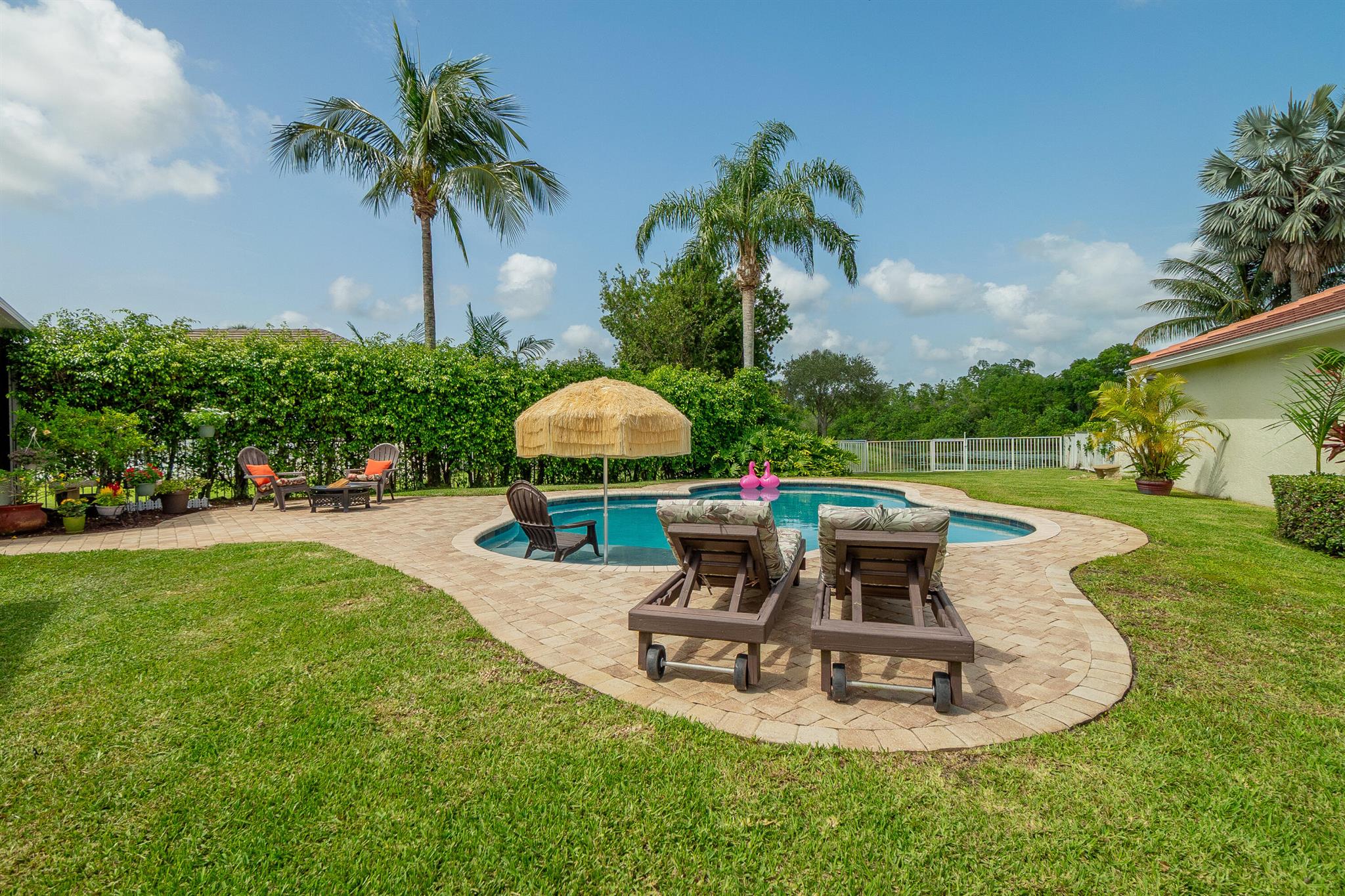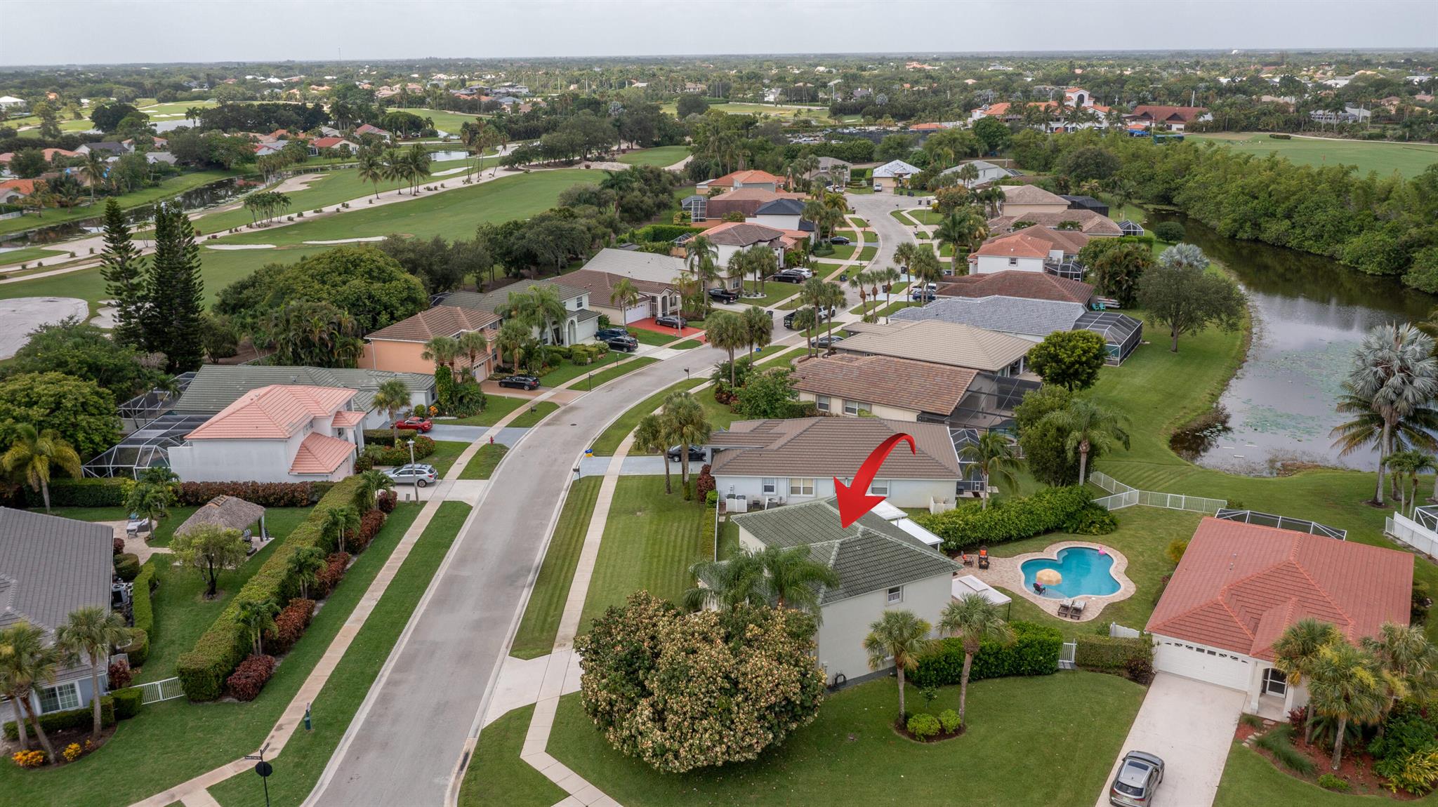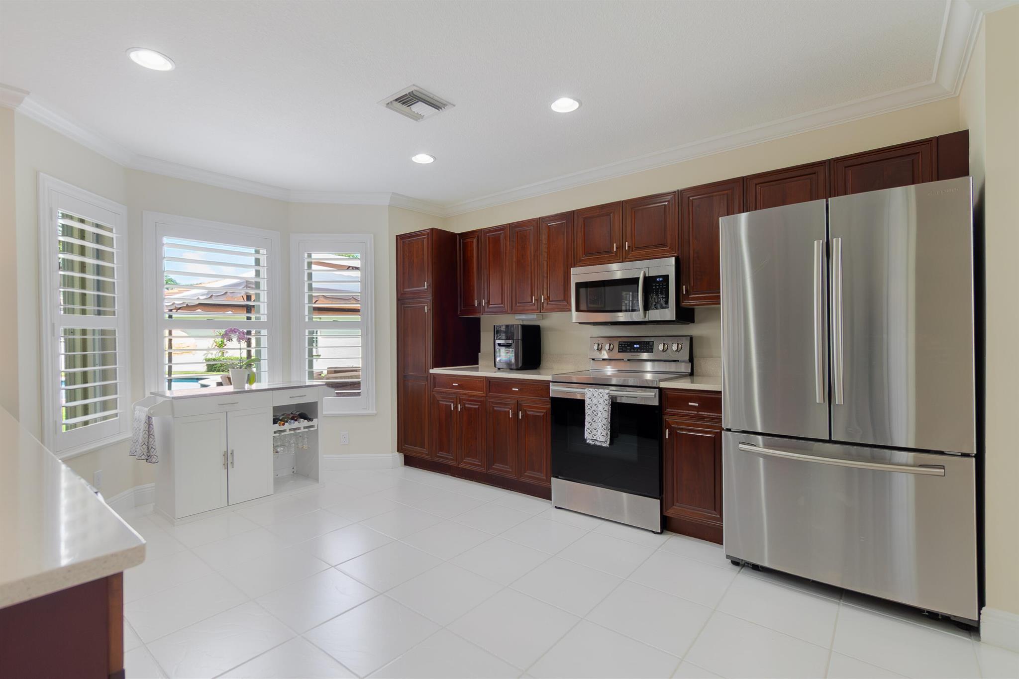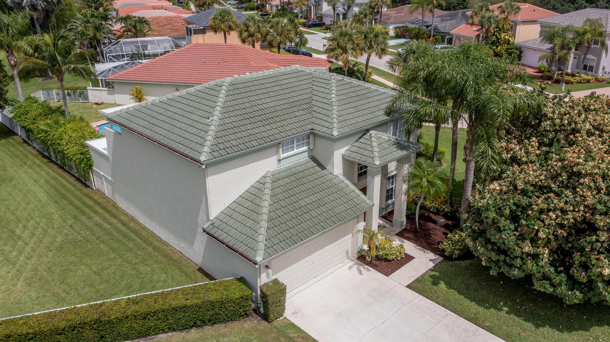 Welcome to this fantastic 4 bedroom 2.5 bathroom pool home situated on a premium corner lot with fantastic lake views! Well maintained large yard with beautiful pool, oversized pool deck, covered screened patio, lush landscaping and fenced for privacy. Property has newer roof (2022), accordion hurricane shutters for quick and easy storm protection, newer kitchen appliances and quartz countertop, newer paint inside and out, window and sliding door plantation shutters, tile and luxury vinyl flooring throughout, no carpet! Master bedroom has a covered balcony for extra outdoor space and beautiful view of the lake. Lakefield North is a well maintained gated community zoned for good schools and just a golf cart ride away to equestrian activities, polo and several private golf courses.
