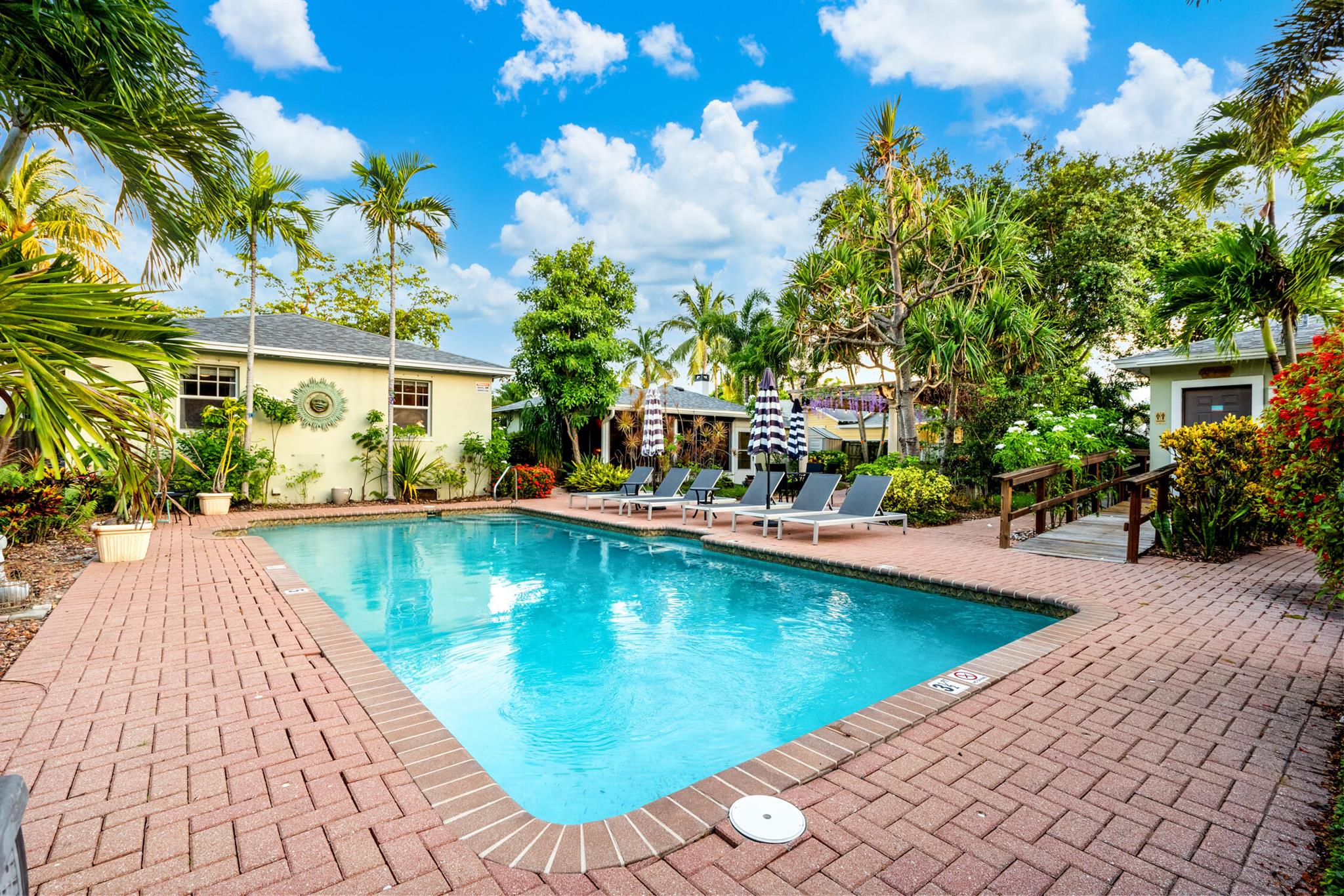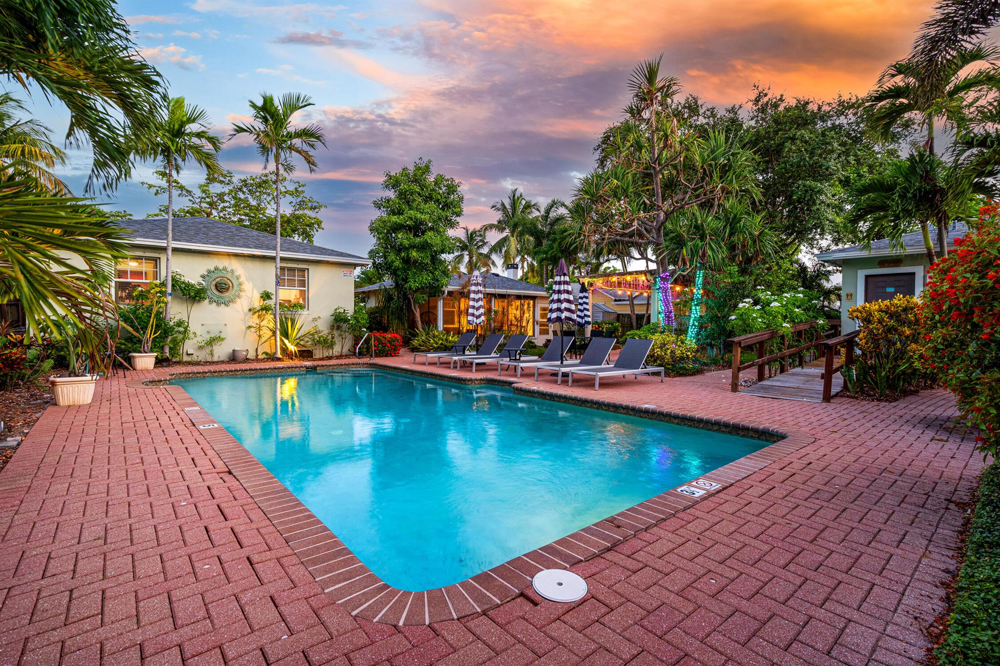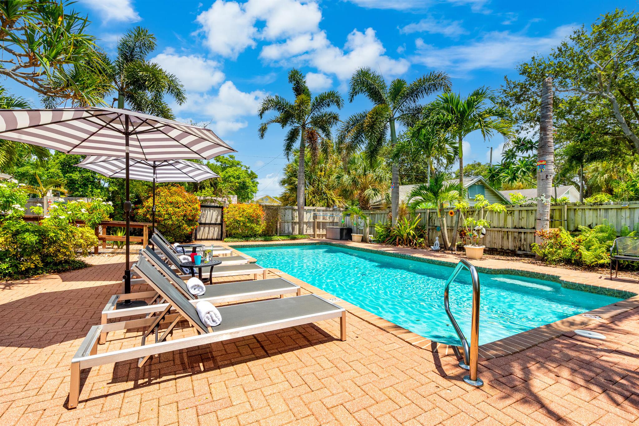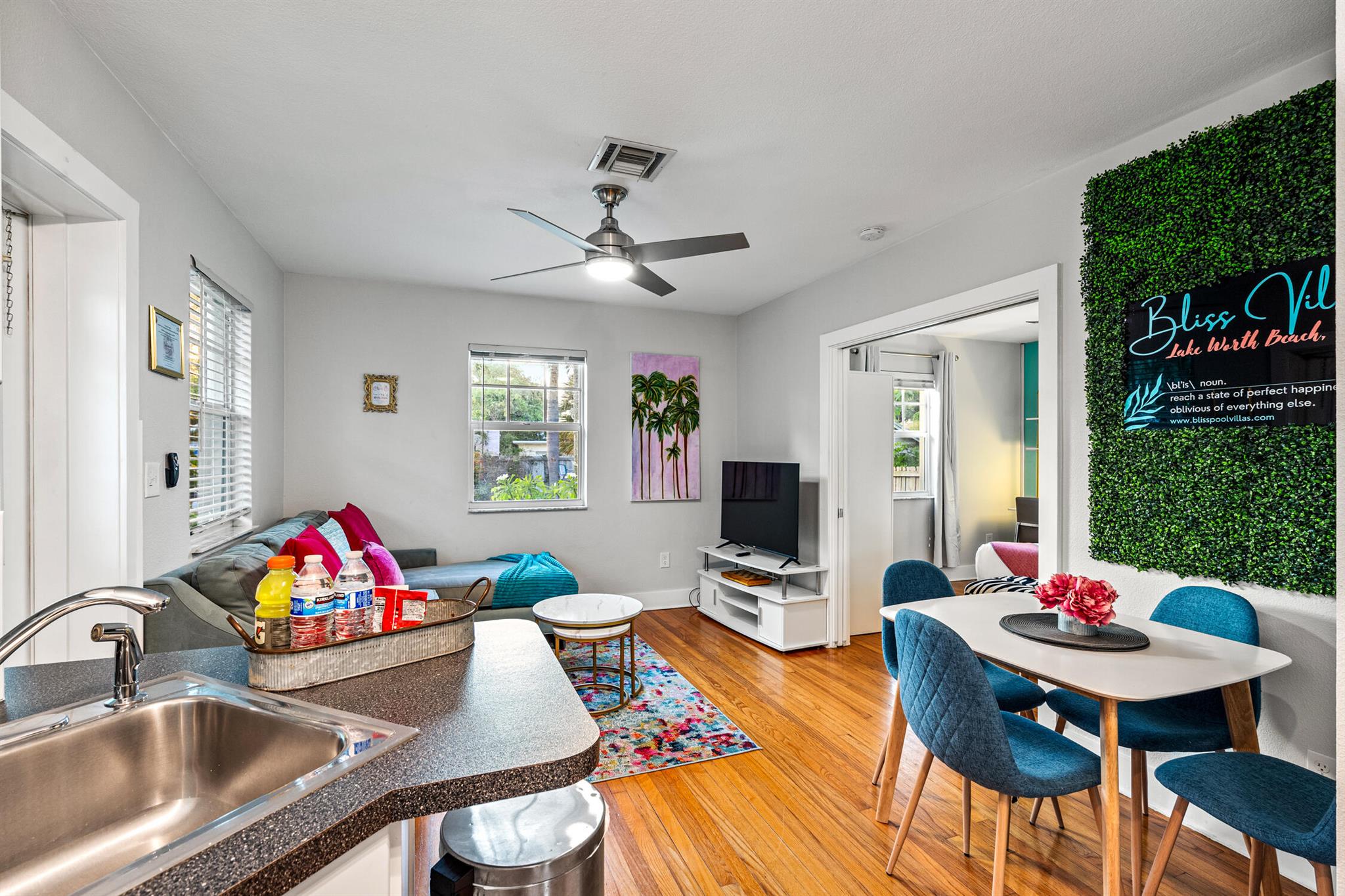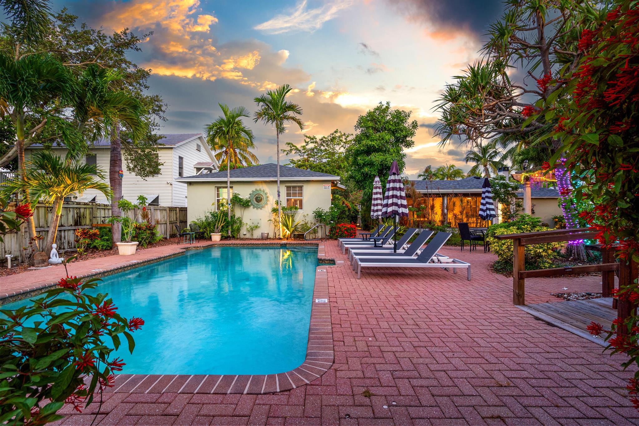 Bliss Villas is 3 building, 4-unit complex in the downtown Lake Worth Beach Entertainment District – steps from the shops and restaurants on Lucerne Ave. There is one 2 BD/1 BA and three 1 BD/1 BA, and units are centered around a large heated pool in a beautifully landscaped, completely private and nearly 12,000 sq ft fenced lot. The property is a turnkey asset – fully equipped and furnished – and is zoned Commercial allowing for multiple business and personal uses. All 3 buildings are concrete block with 2023 roofs, new central A/Cs, tankless water heaters, and washers/dryers! Features 8 off-street private spaces. There is a pool bath and air conditioned garage for storage. Superior location and infrastructure make this investment property exceptional.