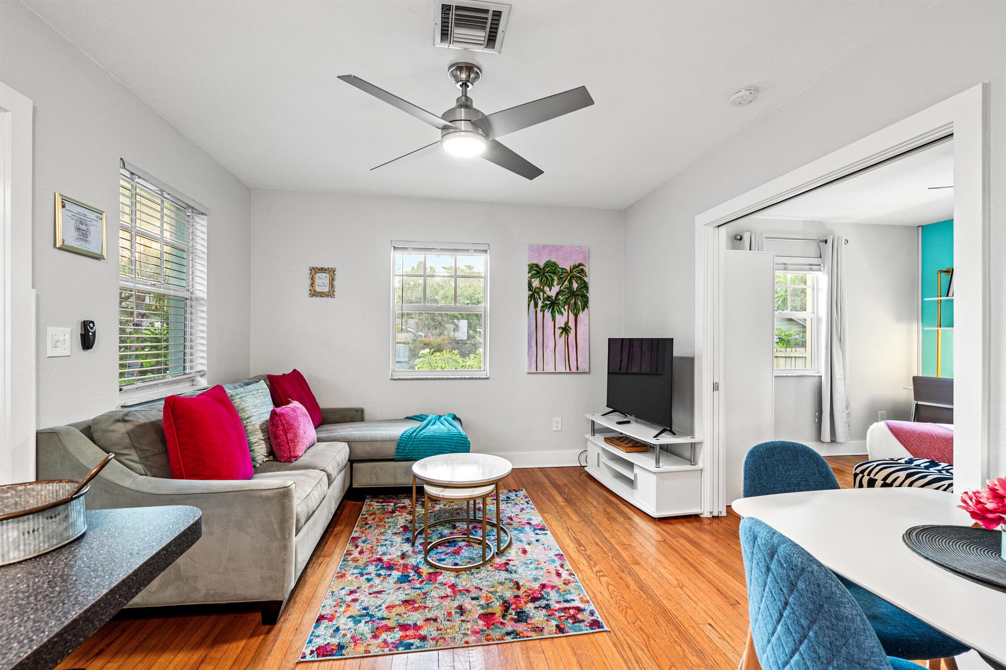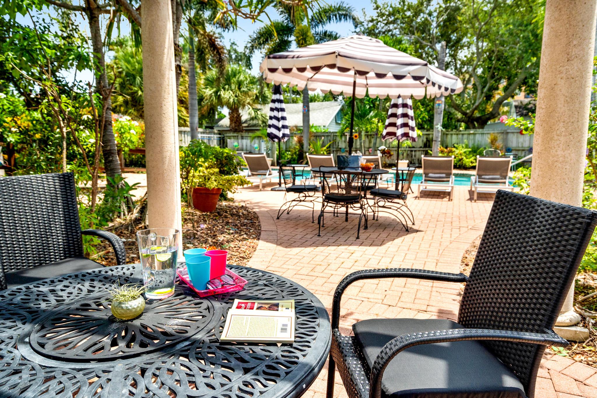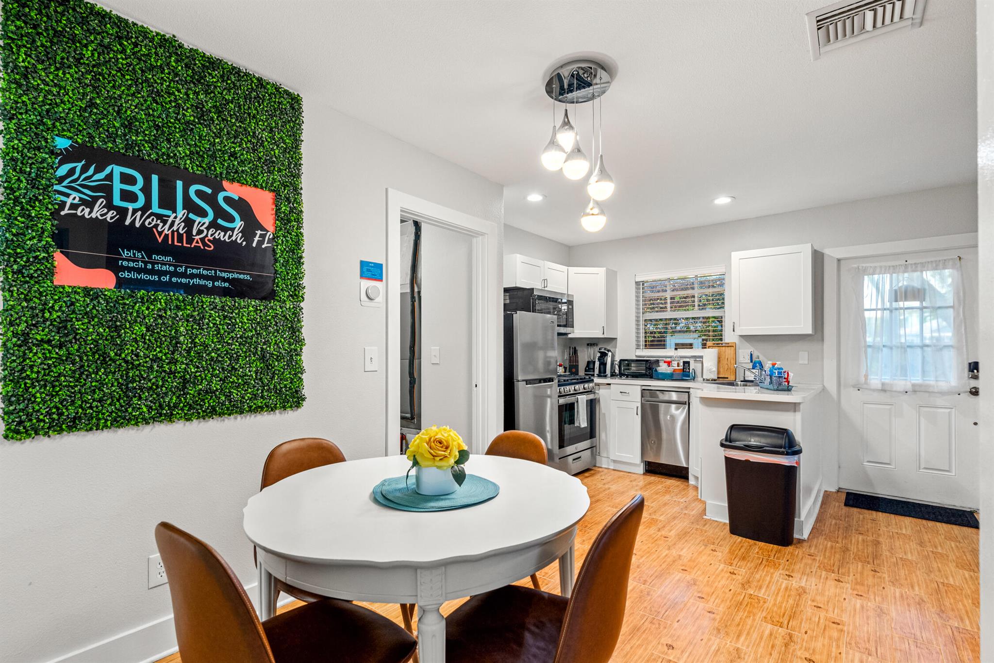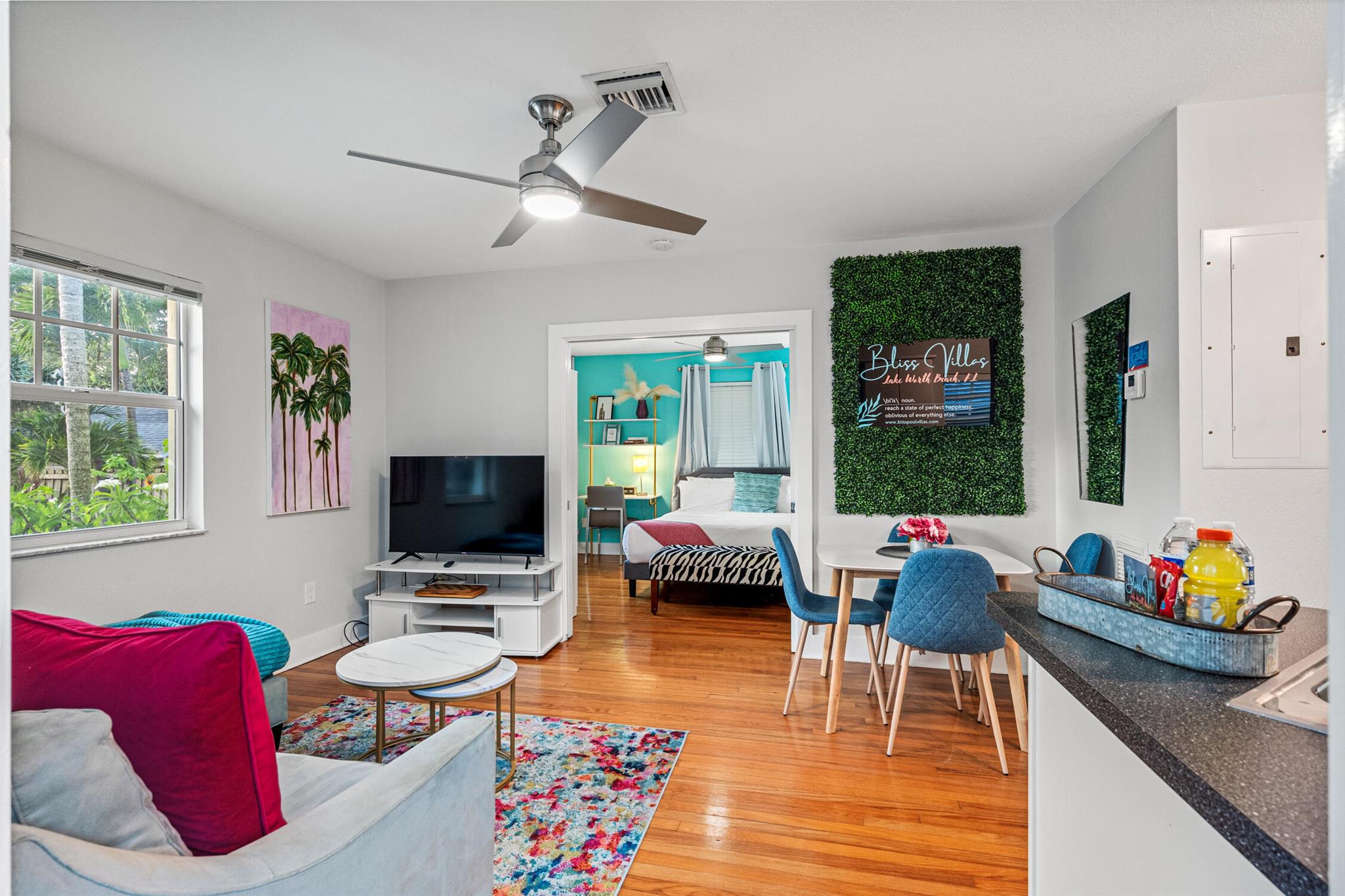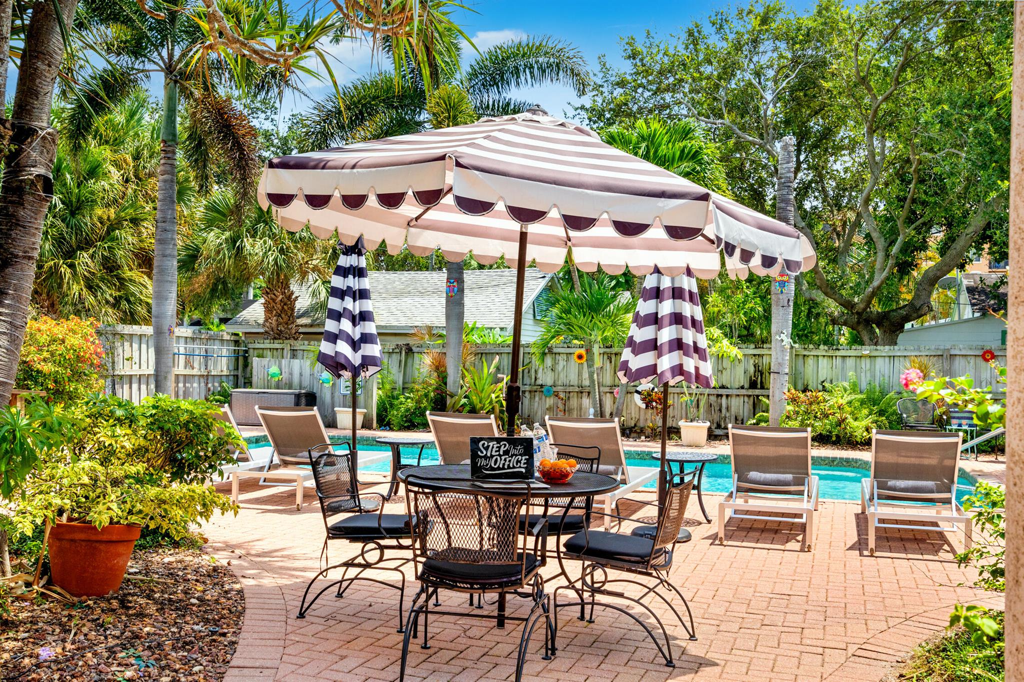 Bliss Villas is 3 building, 4-unit complex in the downtown Lake Worth Beach Entertainment District – steps from the shops and restaurants on Lucerne Ave. There is one 2 BD/1 BA and three 1 BD/1 BA, and units are centered around a large heated pool in a beautifully landscaped, completely private and nearly 12,000 sq ft fenced lot. The property is a turnkey asset – fully equipped and furnished – and is zoned Commercial allowing for multiple business and personal uses. All 3 buildings are concrete block with 2023 roofs, new central A/Cs, tankless water heaters, and washers/dryers! Features 8 off-street private spaces. There is a pool bath and air conditioned garage for storage. Superior location and infrastructure make this investment property exceptional.
