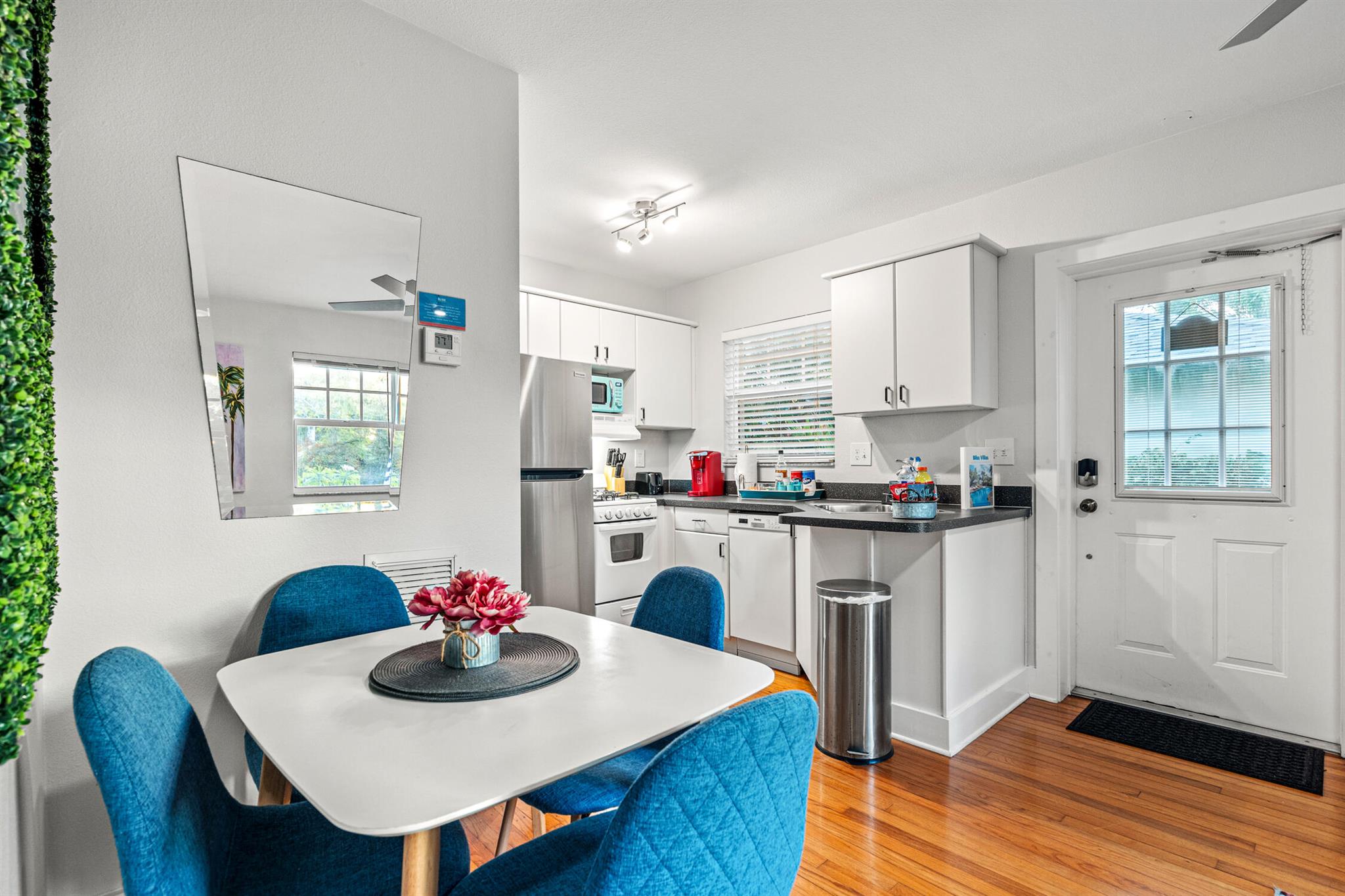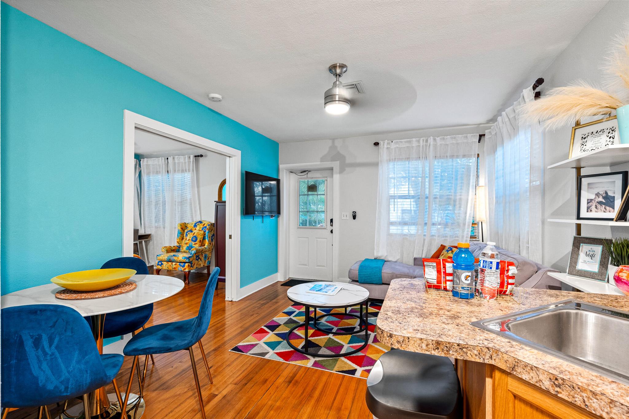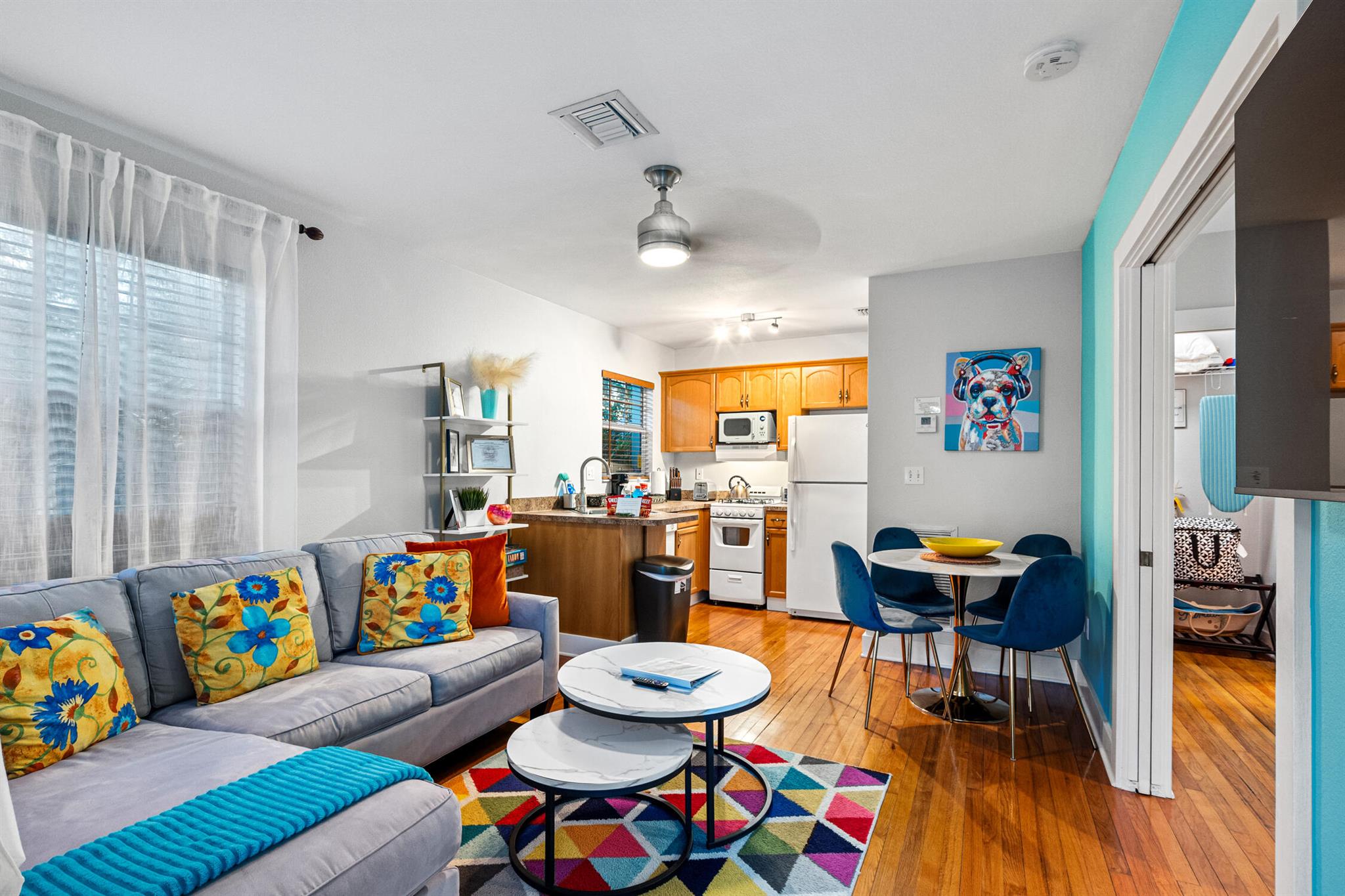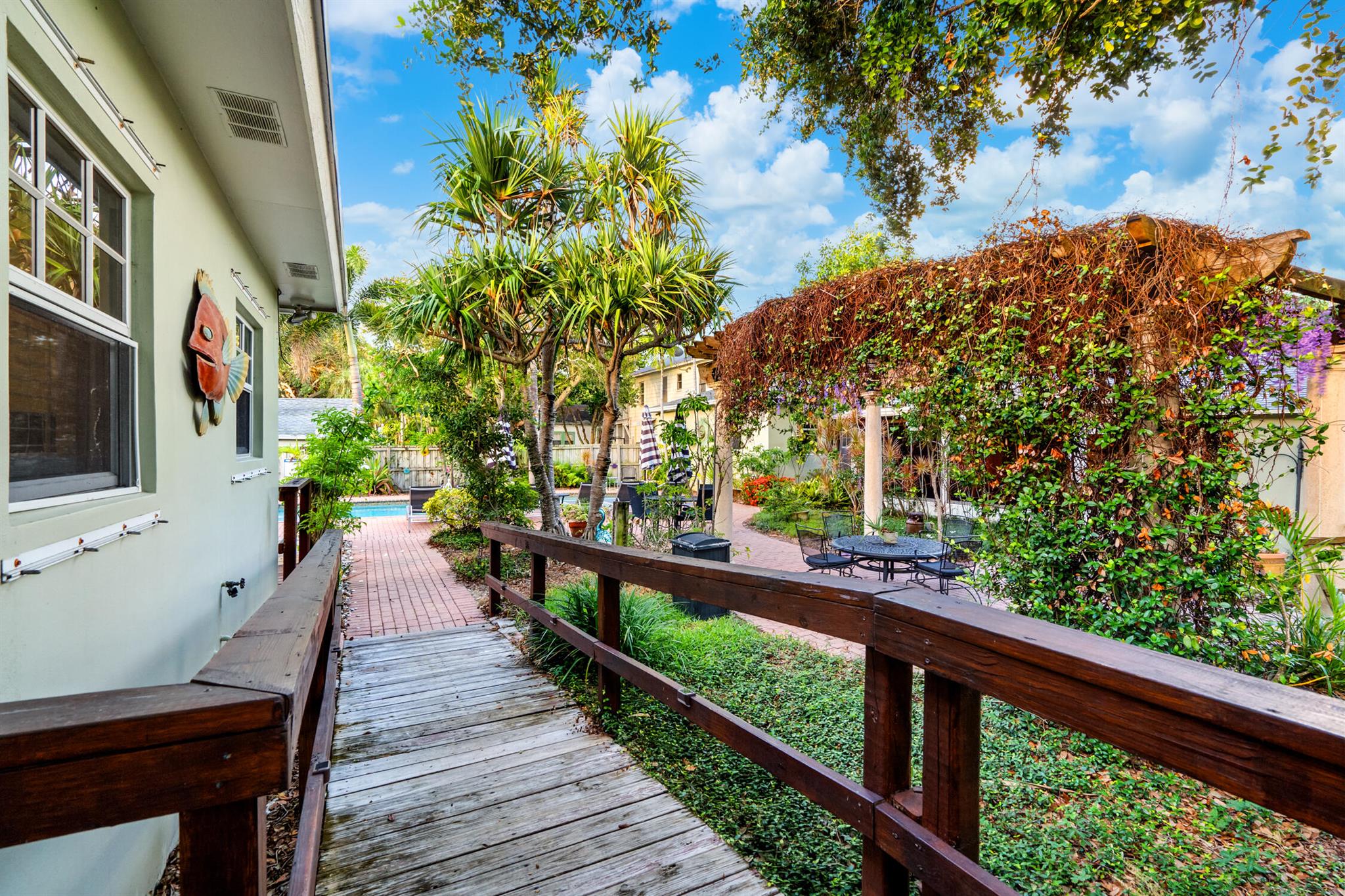 Bliss Villas is 3 building, 4-unit complex in the downtown Lake Worth Beach Entertainment District – steps from the shops and restaurants on Lucerne Ave. There is one 2 BD/1 BA and three 1 BD/1 BA, and units are centered around a large heated pool in a beautifully landscaped, completely private and nearly 12,000 sq ft fenced lot. The property is a turnkey asset – fully equipped and furnished – and is zoned Commercial allowing for multiple business and personal uses. All 3 buildings are concrete block with 2023 roofs, new central A/Cs, tankless water heaters, and washers/dryers! Features 8 off-street private spaces. There is a pool bath and air conditioned garage for storage. Superior location and infrastructure make this investment property exceptional.